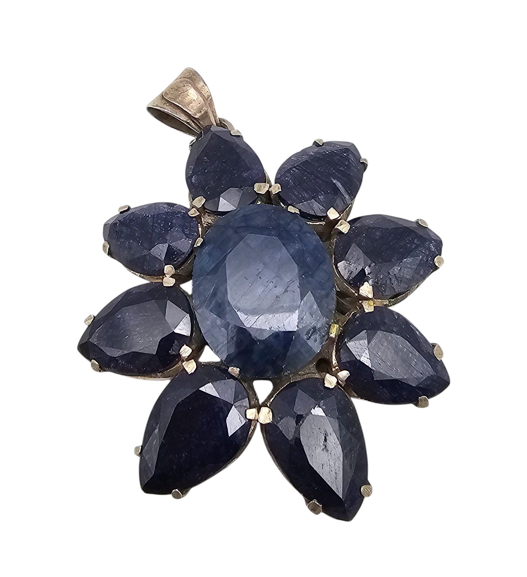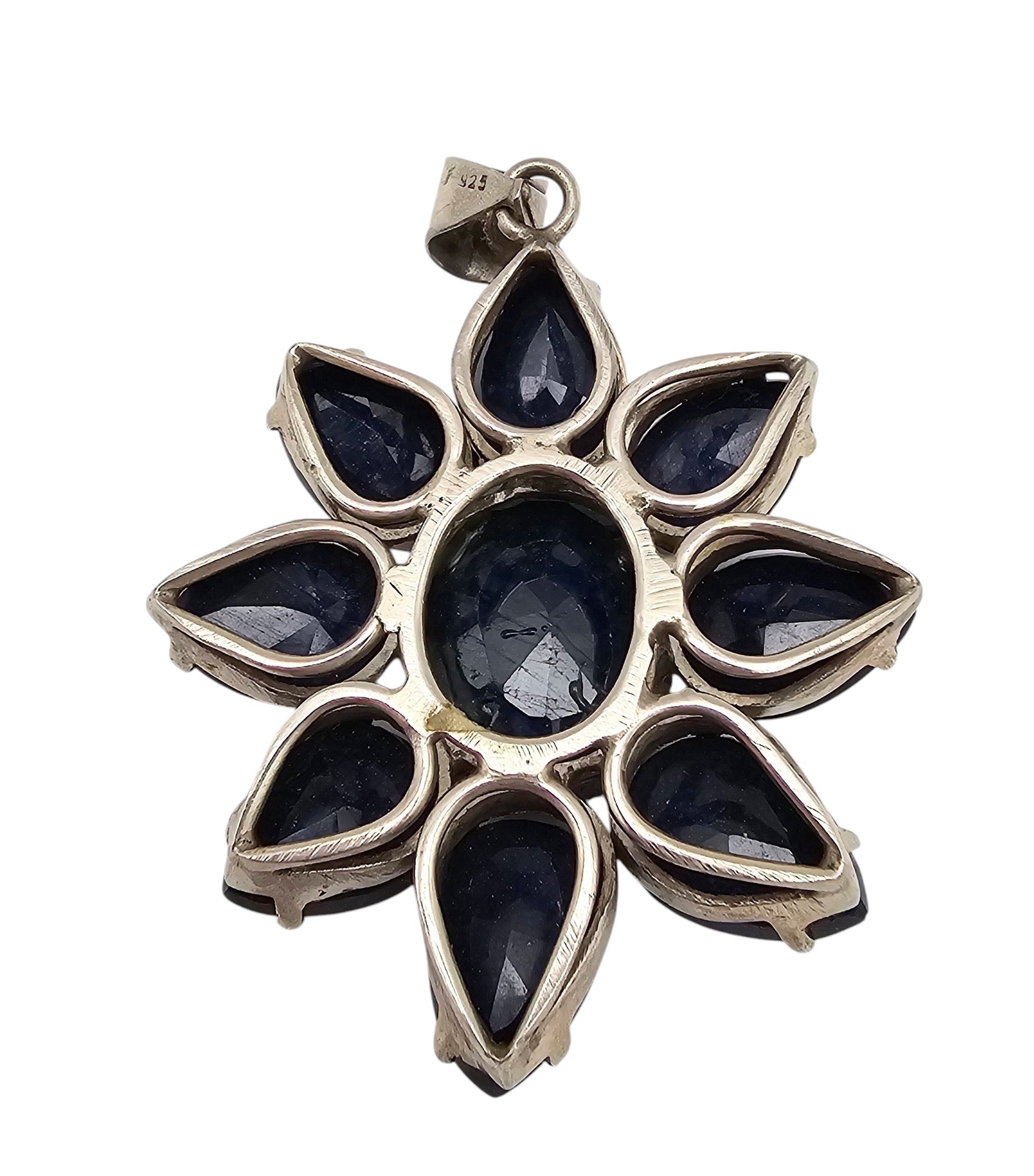 Gemstone Sterling Silver Floral Pendant 44.6 G