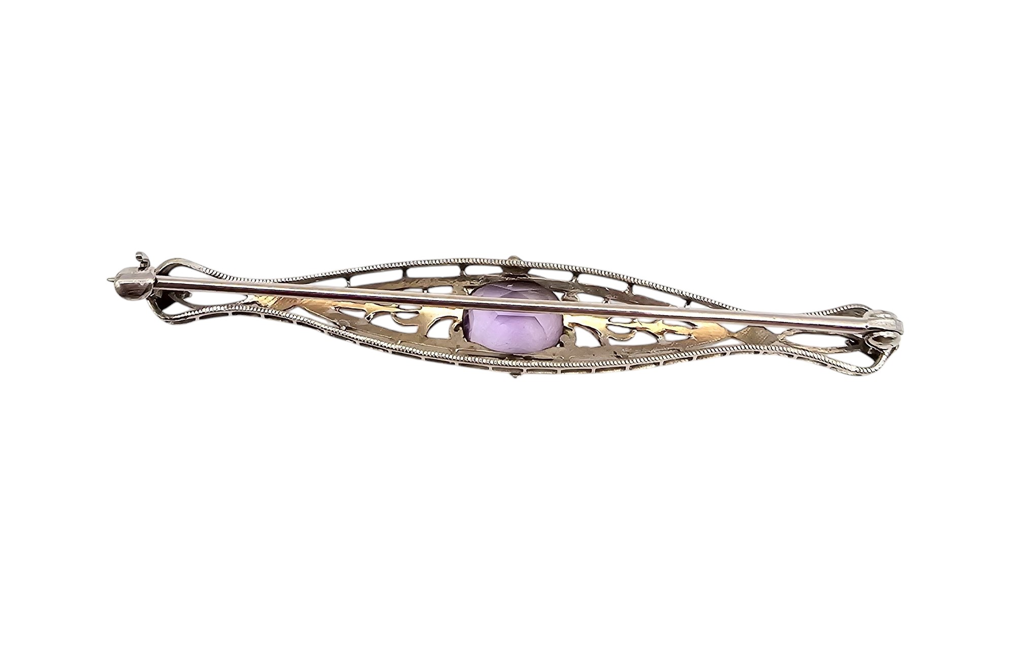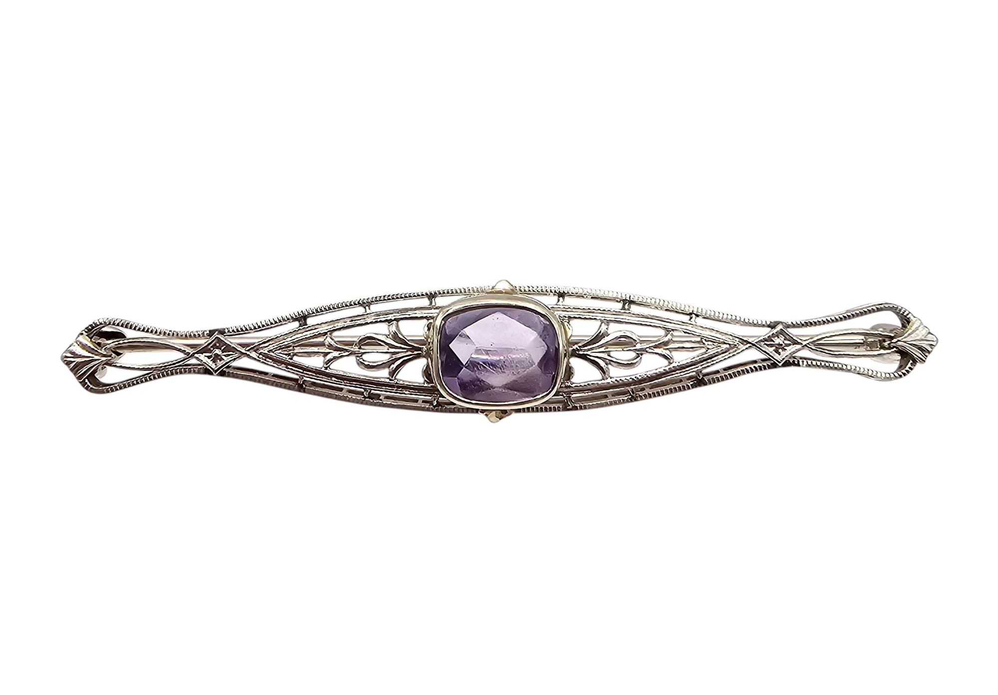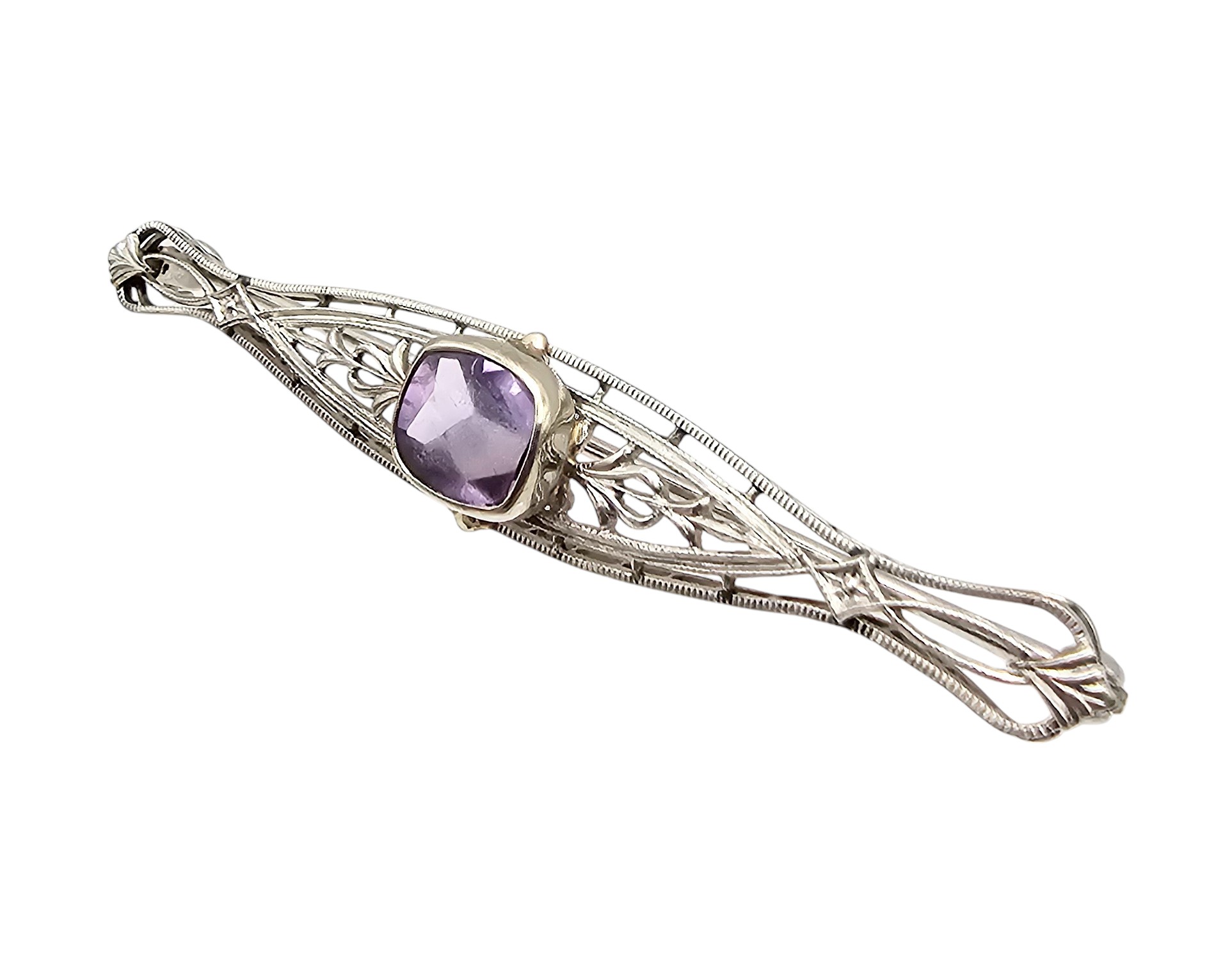 Amethyst 14K White Gold Bar Pin 3.3 G