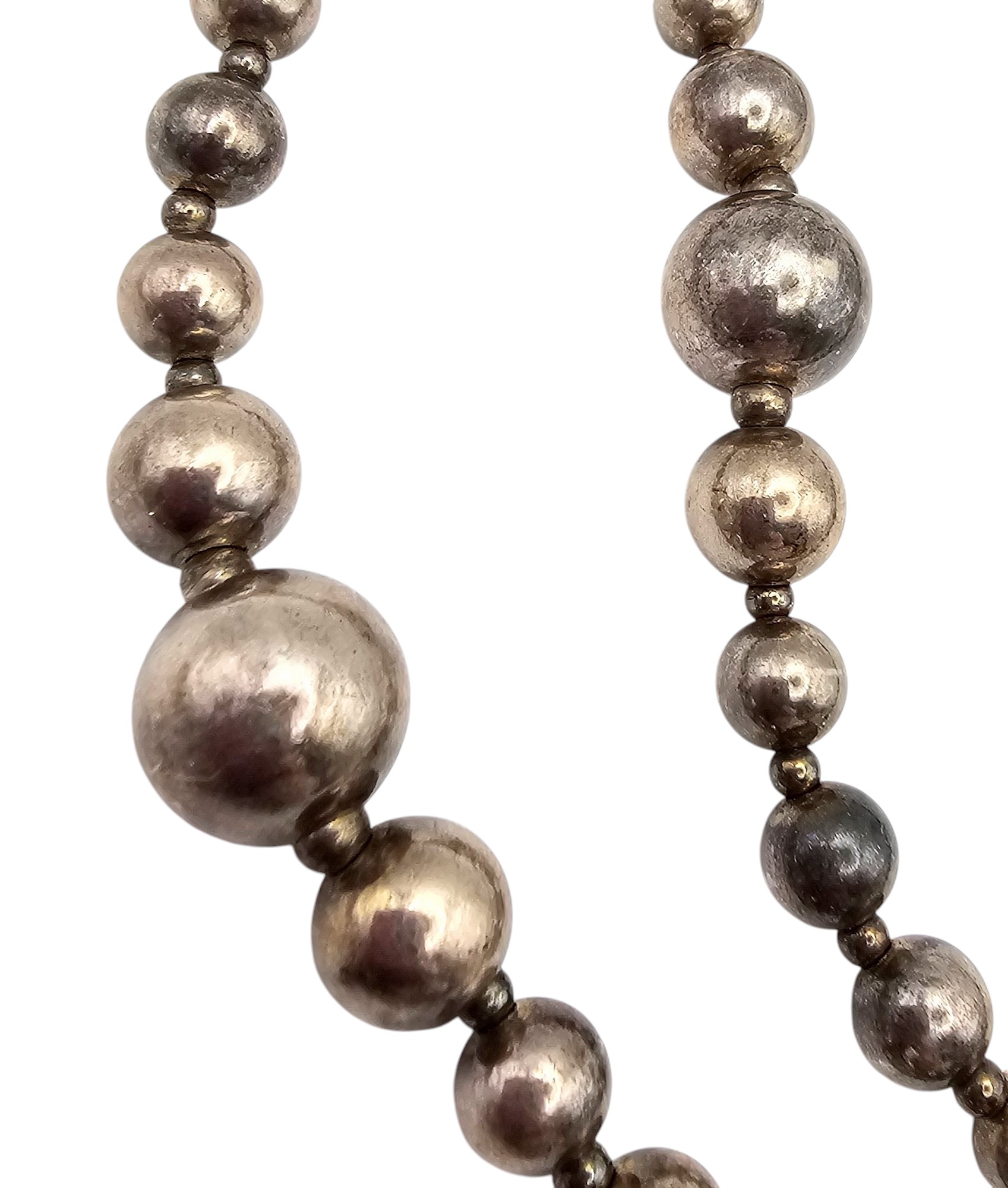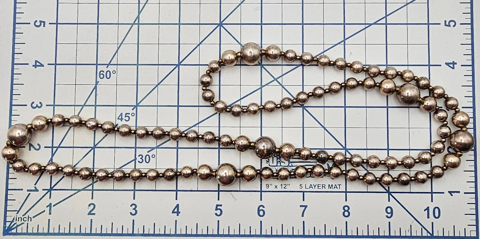 Sterling Silver Graduated Bead Necklace 68.6 G