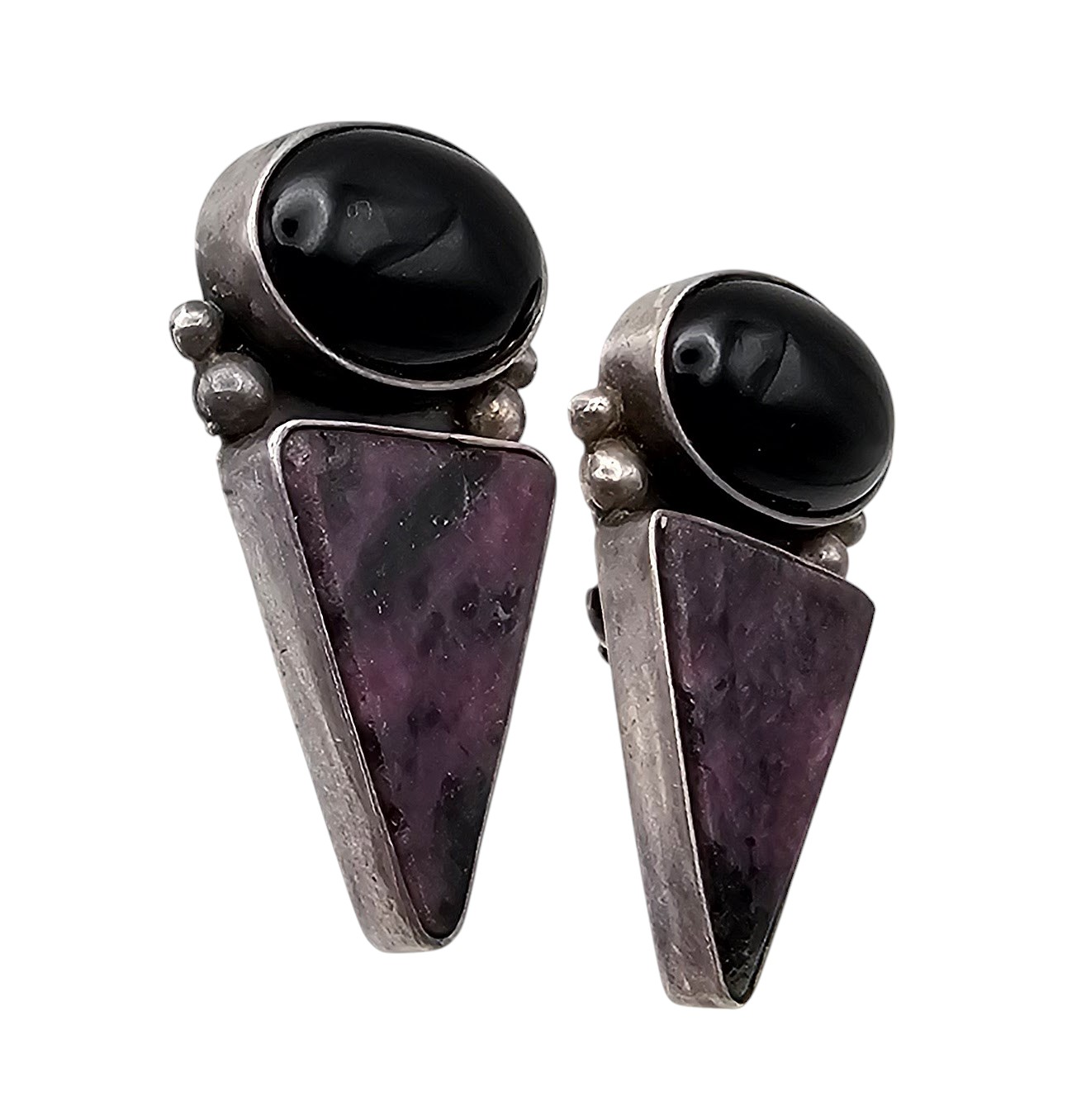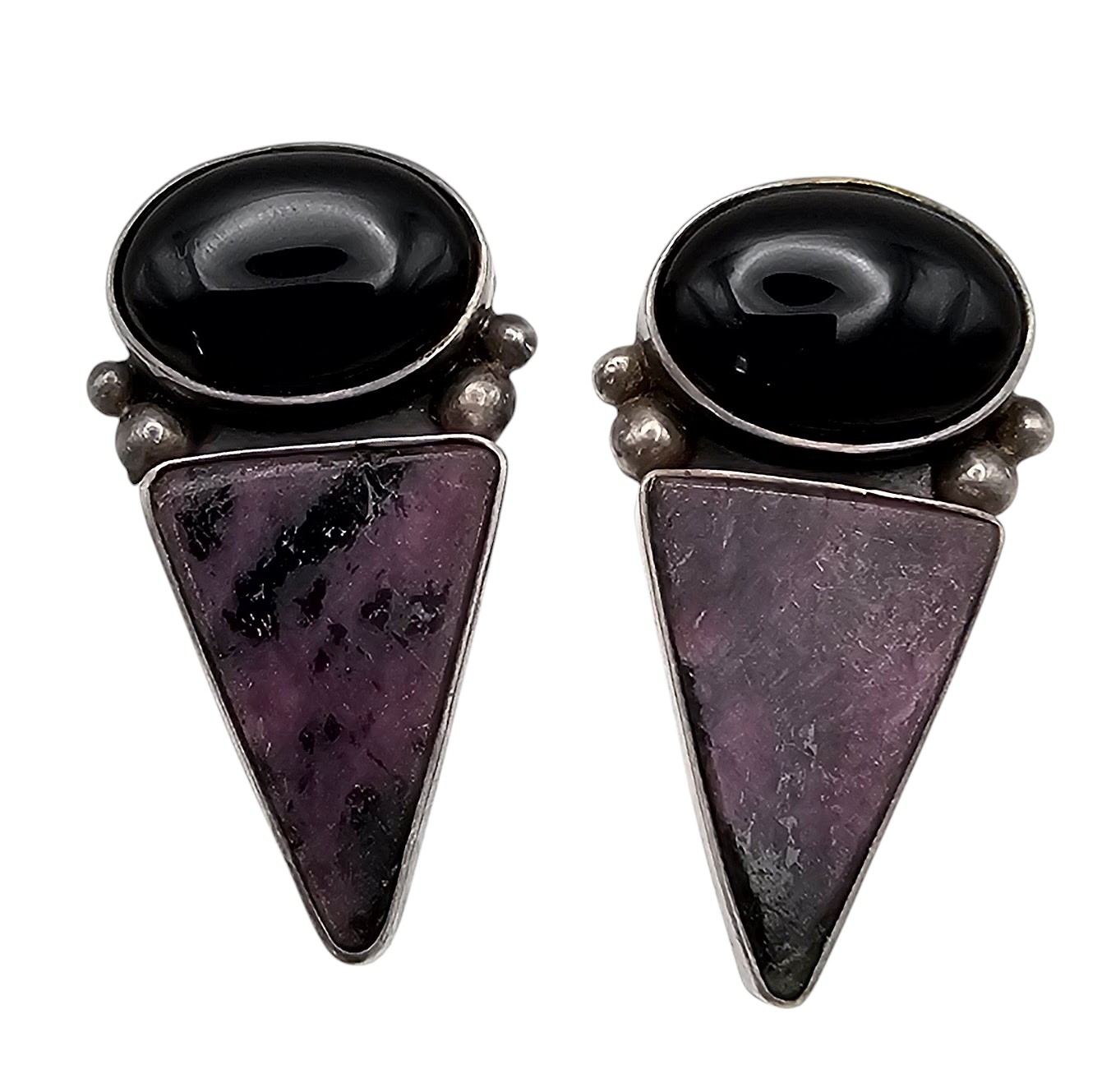 Stone and Glass Sterling Silver Triangle Earrings 20 G
