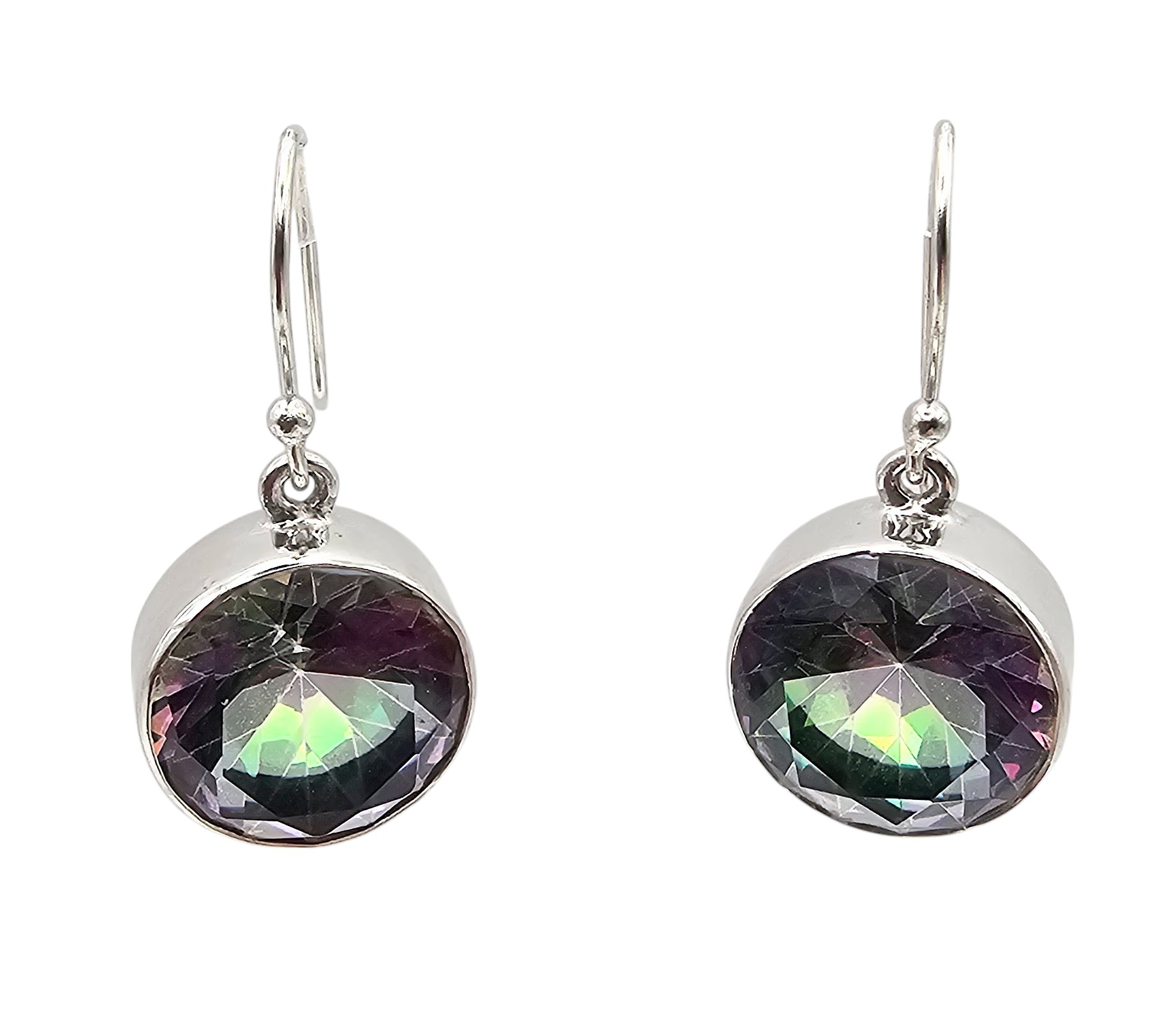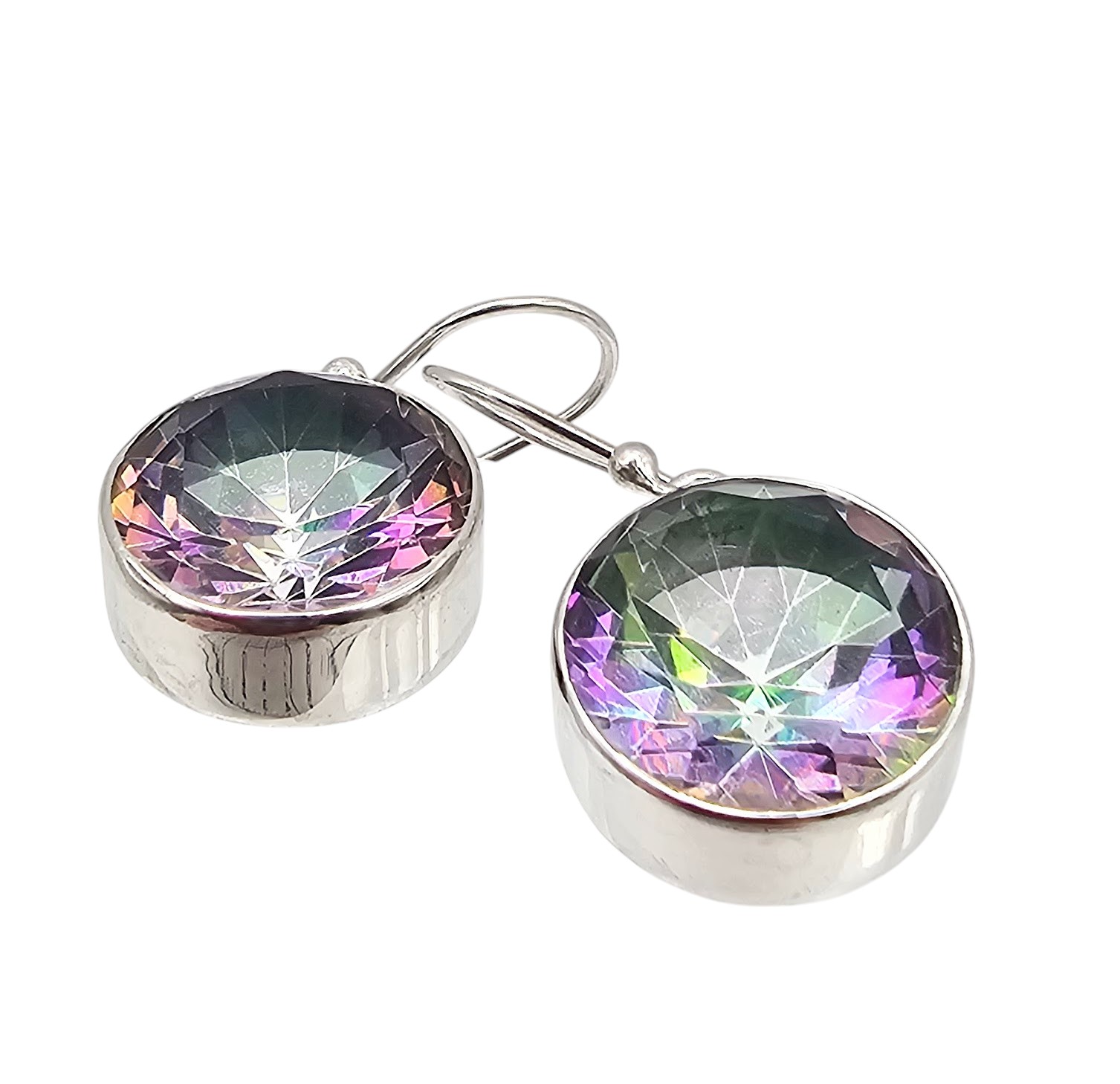 Sanchi & Filia P Designs New Genuine Mystic Quartz Sterling Silver Round Drop Dangle Earrings 8.4 G