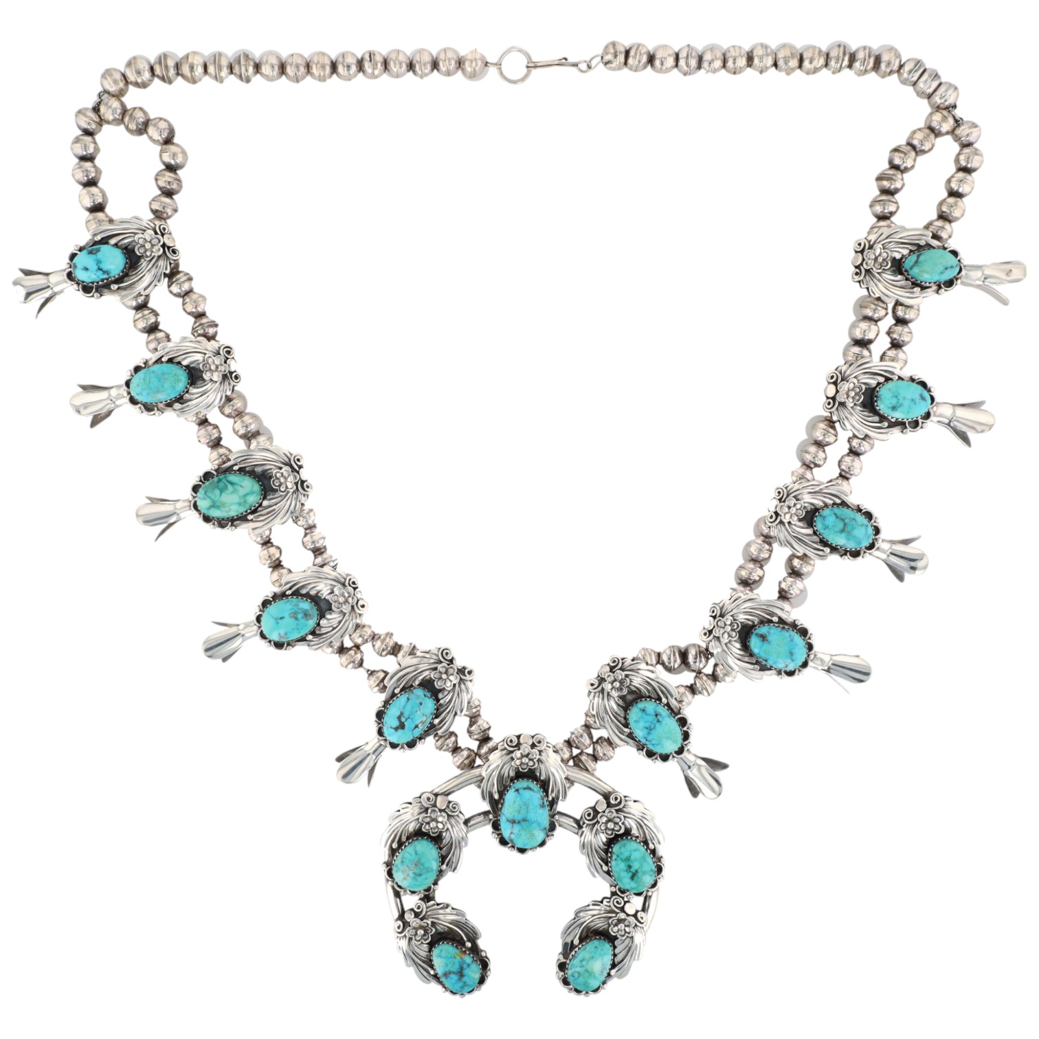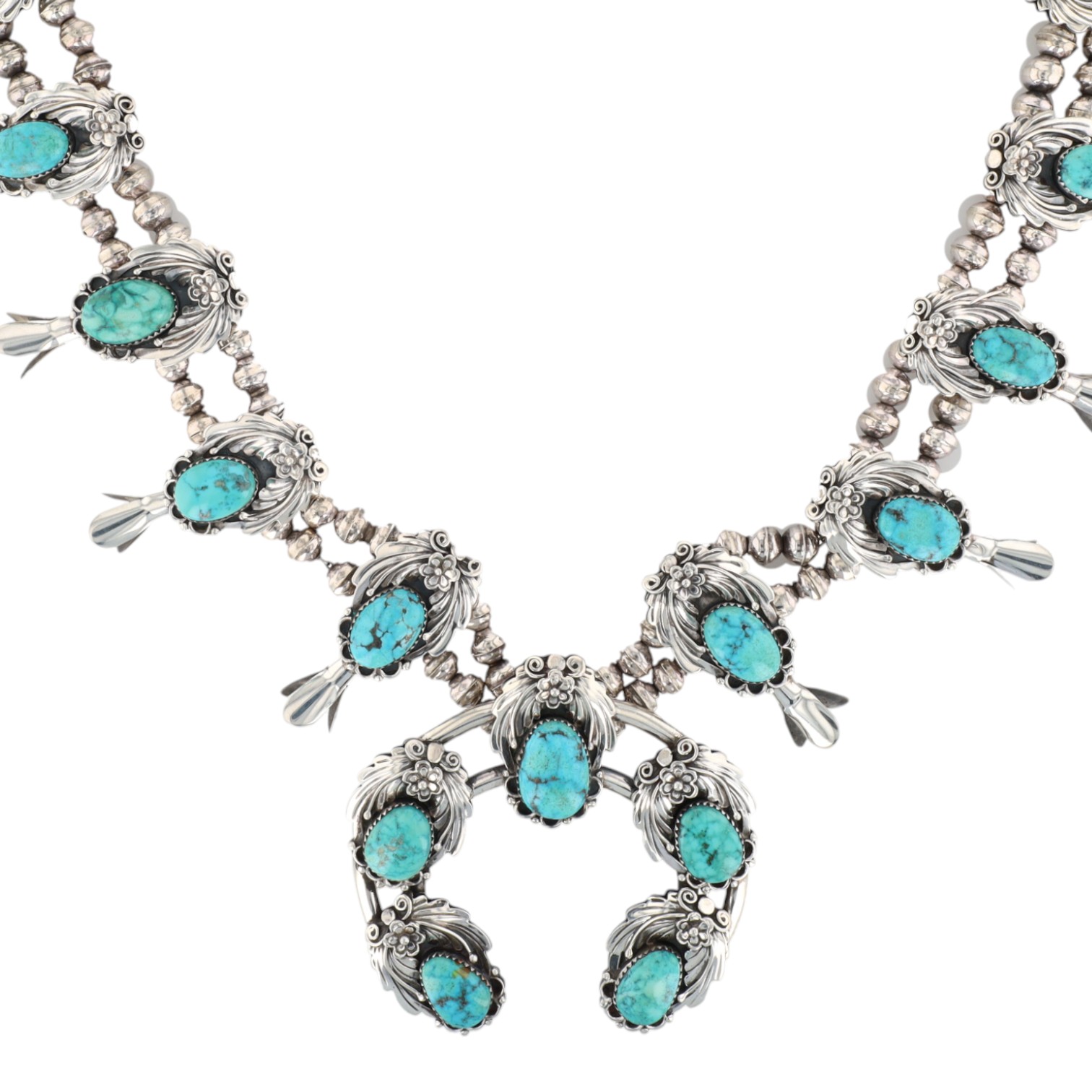 Henrietta Yesele Navajo Sterling Turquoise Squash Blossom Necklace