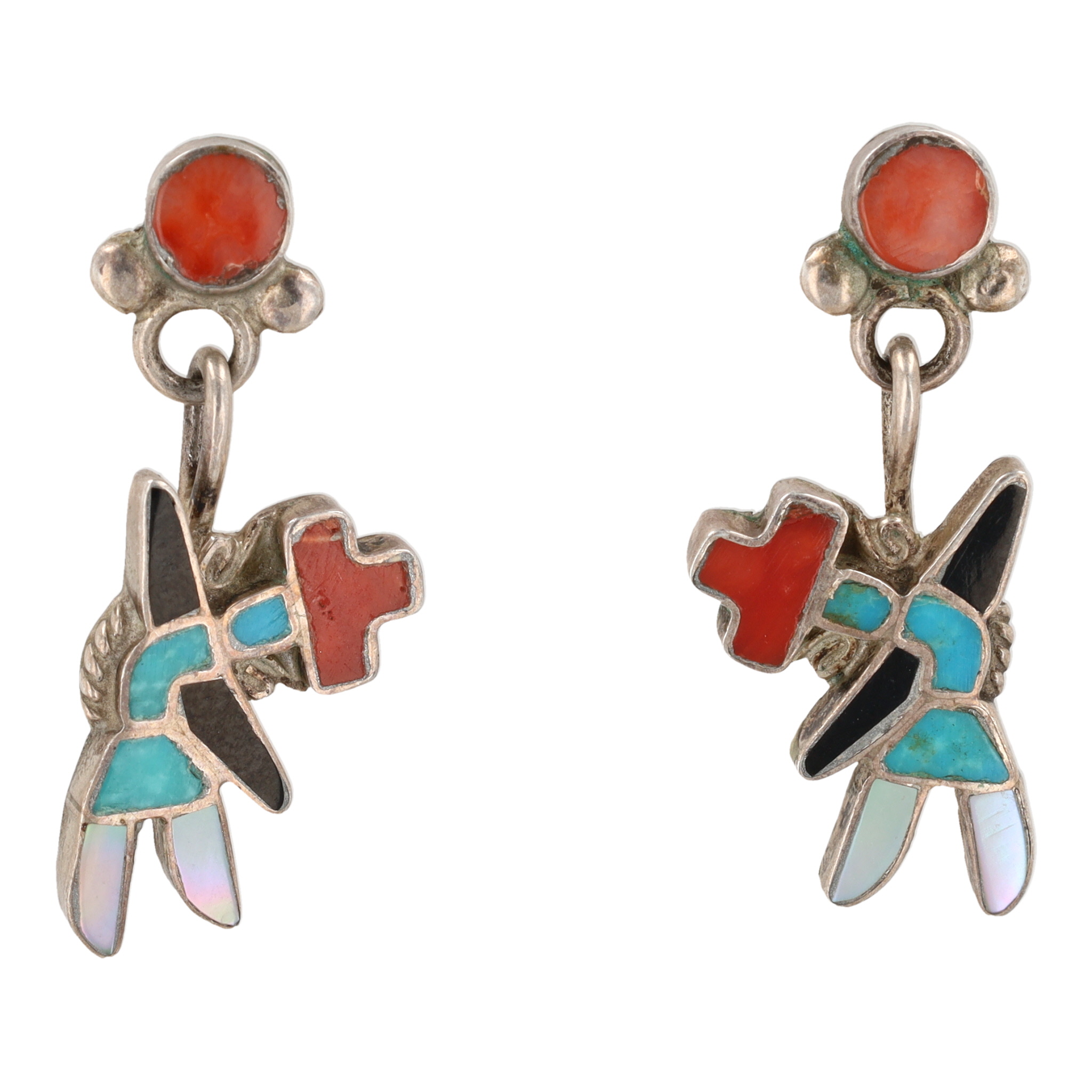 Emma Romancito Zuni Sterling Inlay Knifewing Dangle Earrings