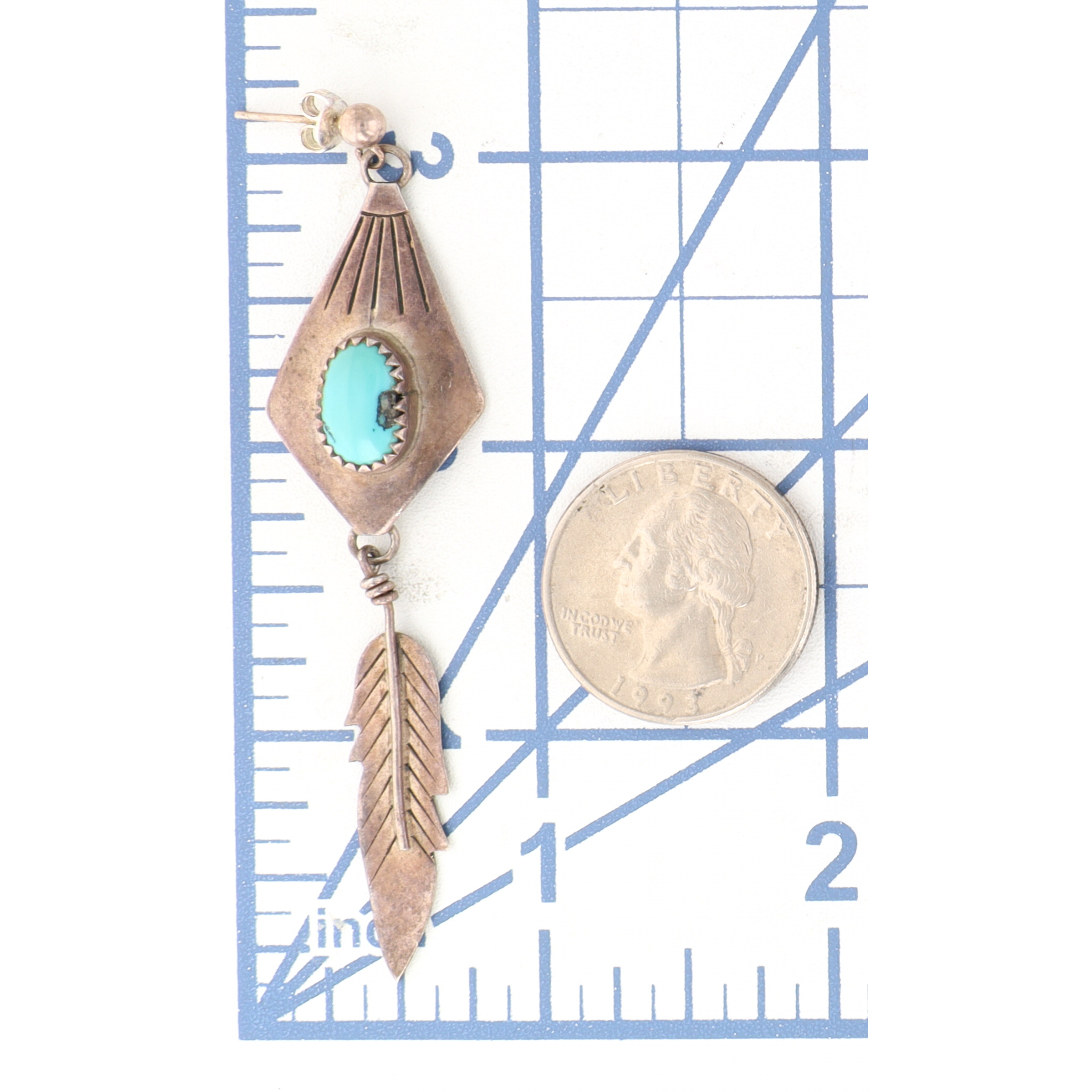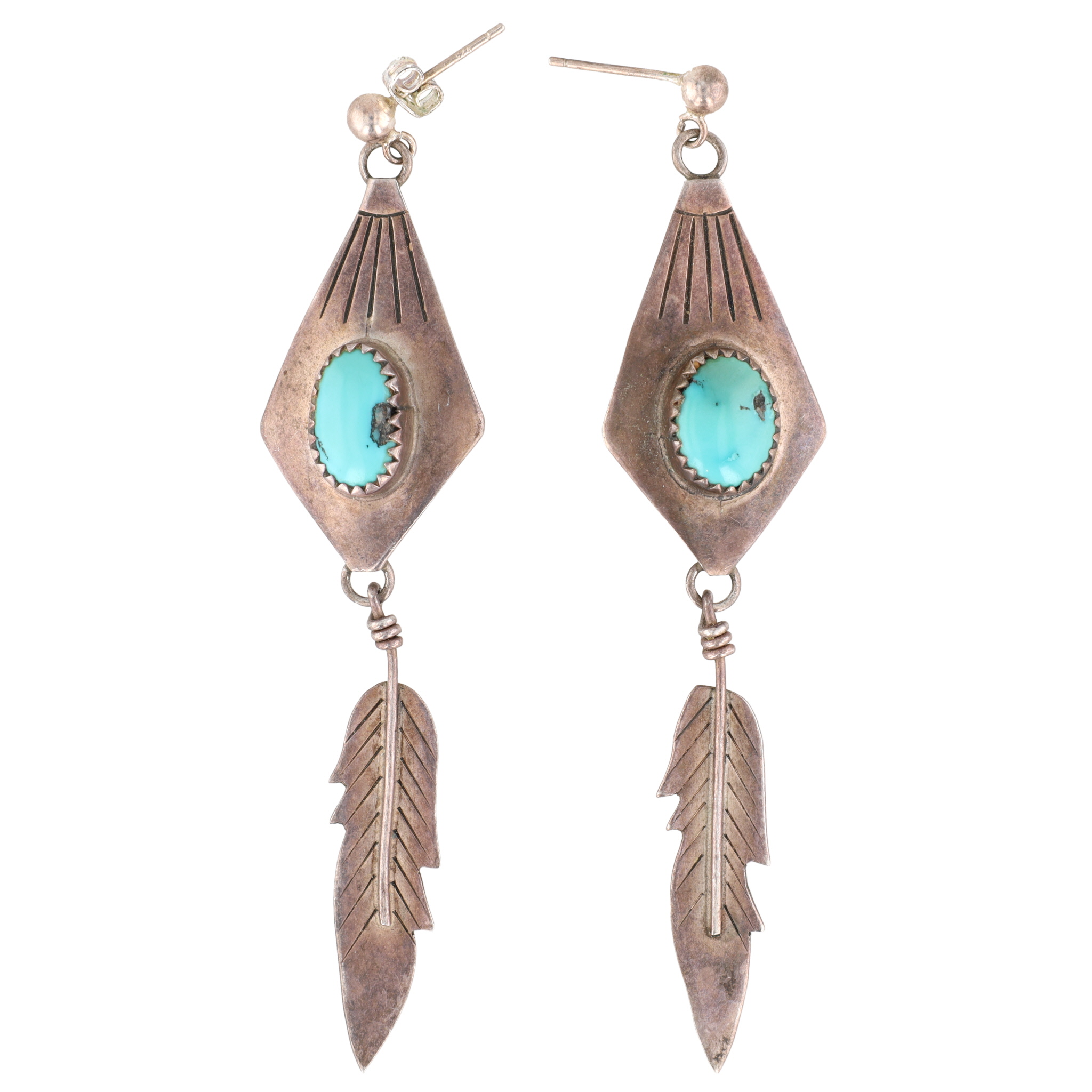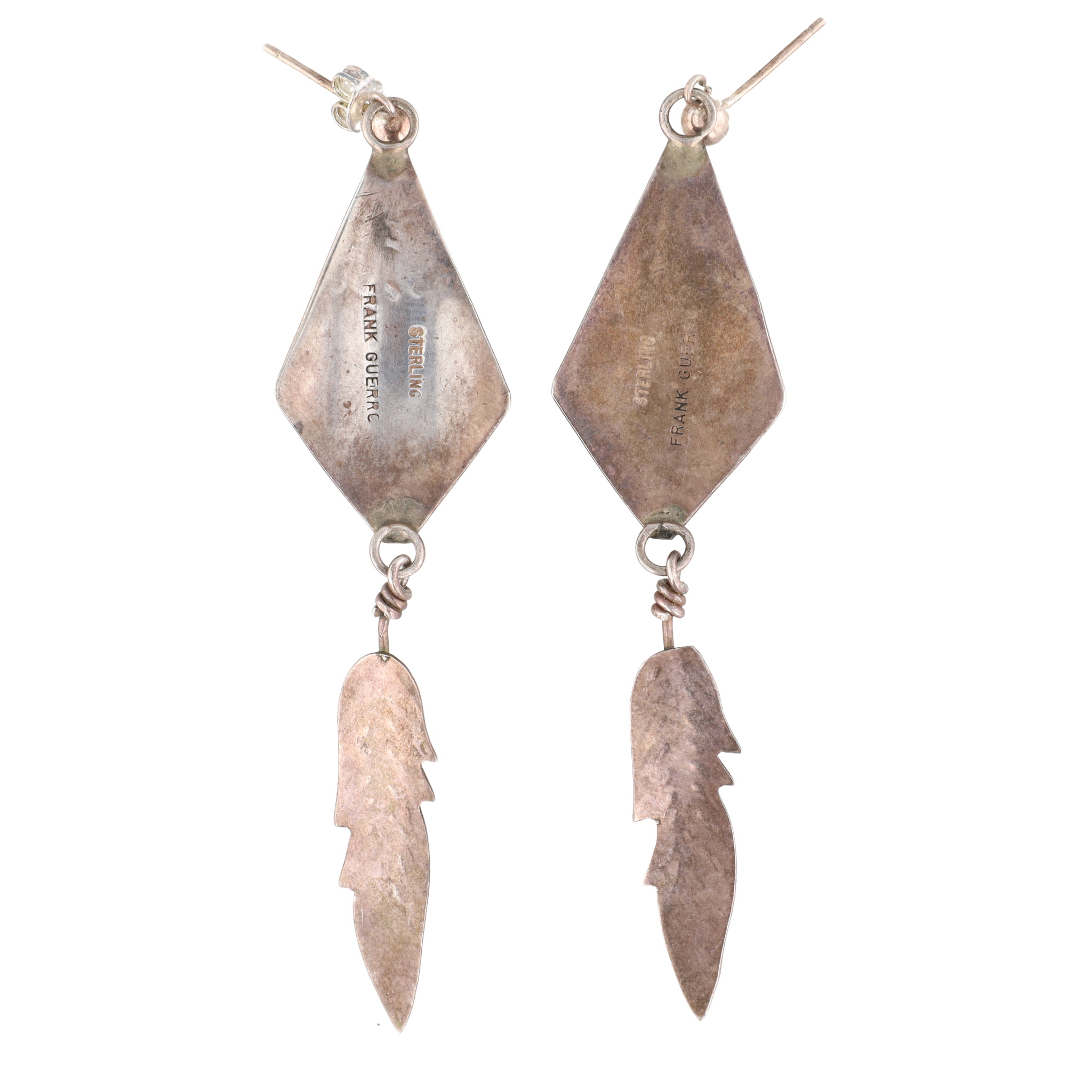 Frank Guerro Navajo Sterling Turquoise Feather Dangle Earrings