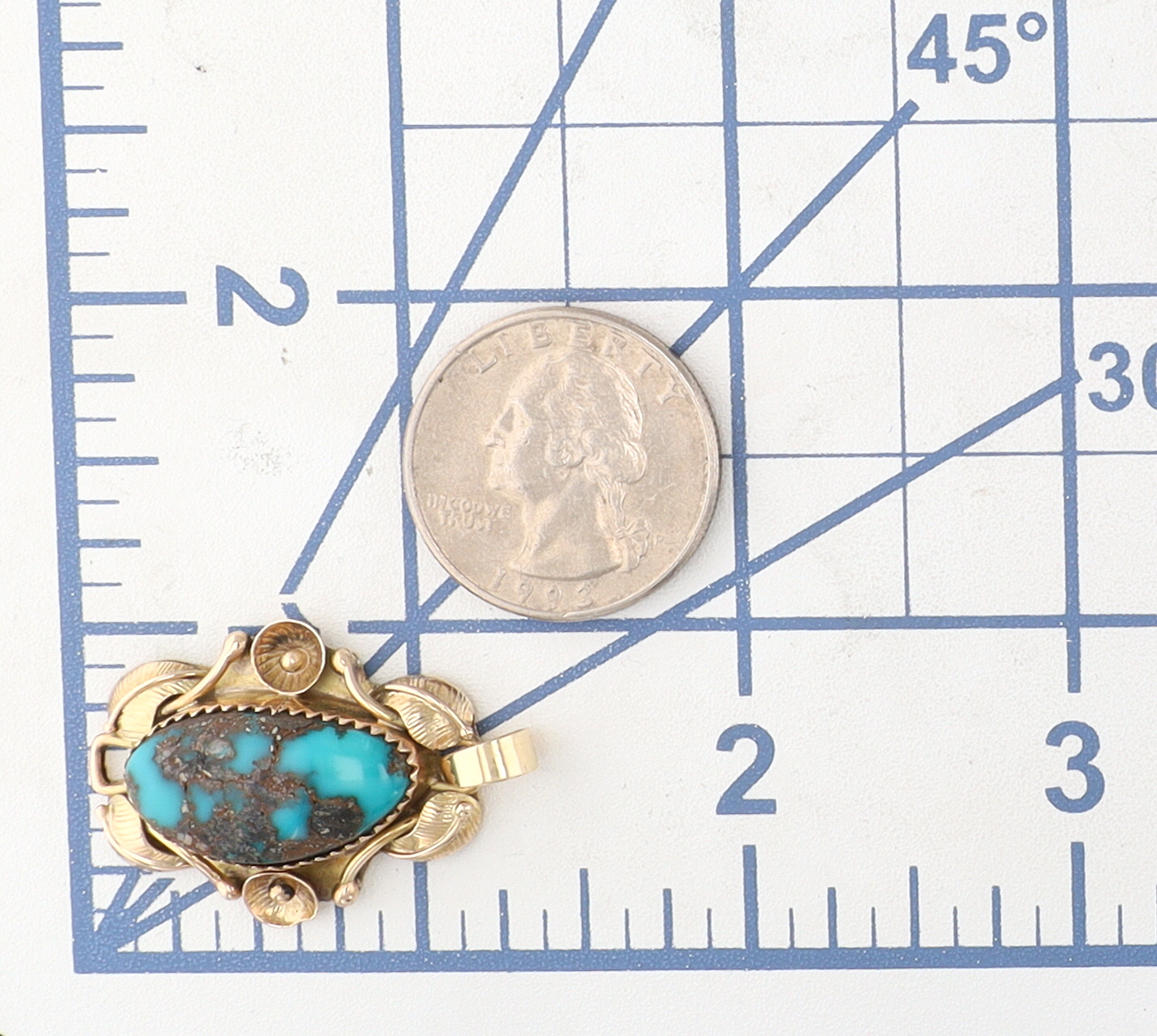 Andy Lee Kirk Navajo/Isleta 14k Gold Bisbee? Turquoise Pendant