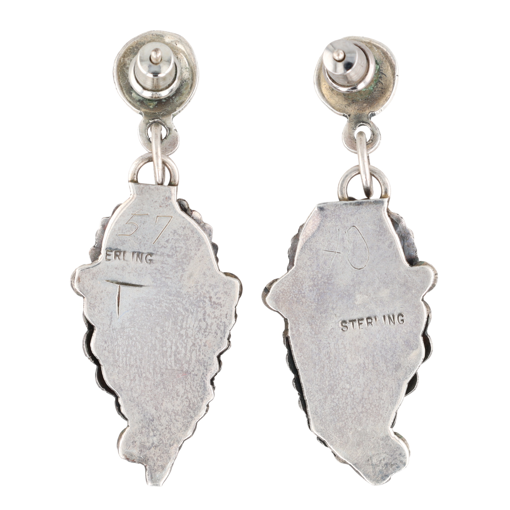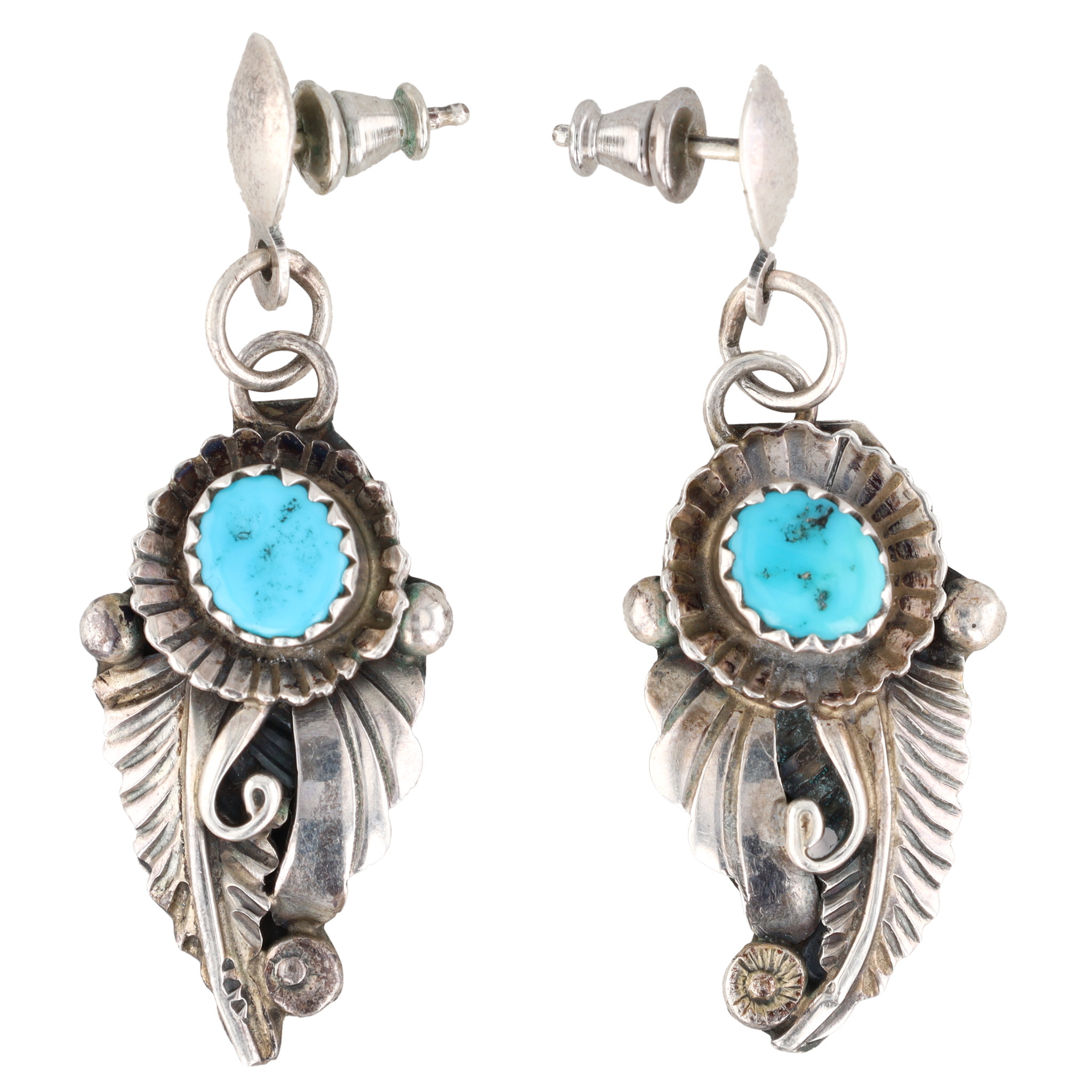 Signed T Navajo Sterling Turquoise Dangle Earrings