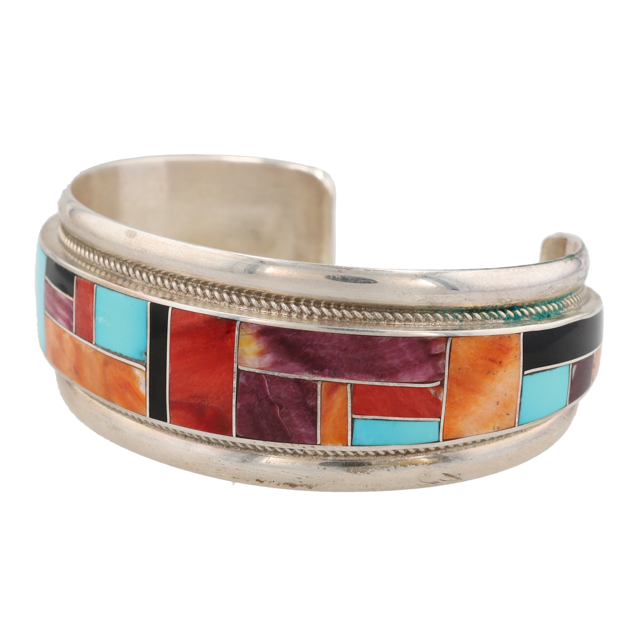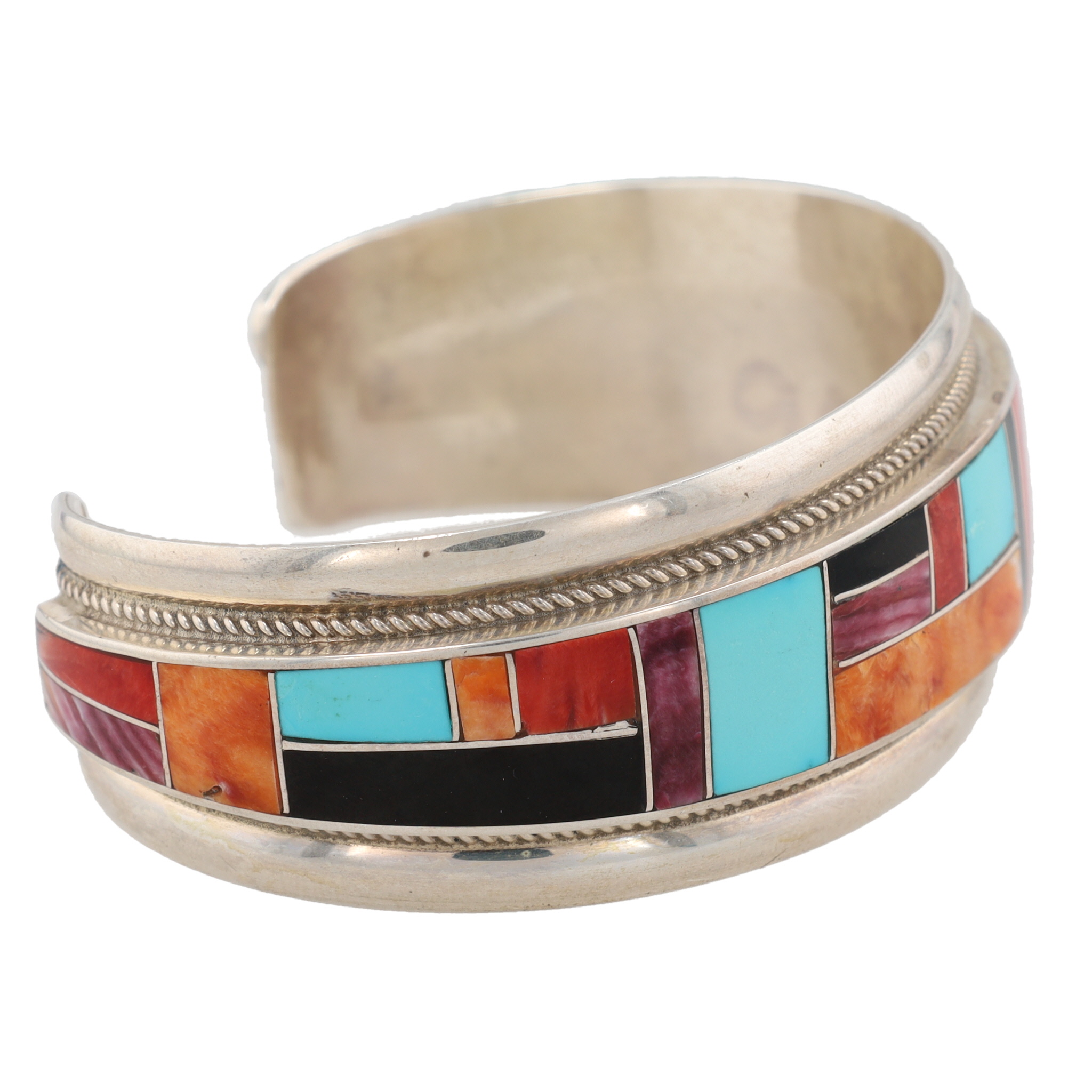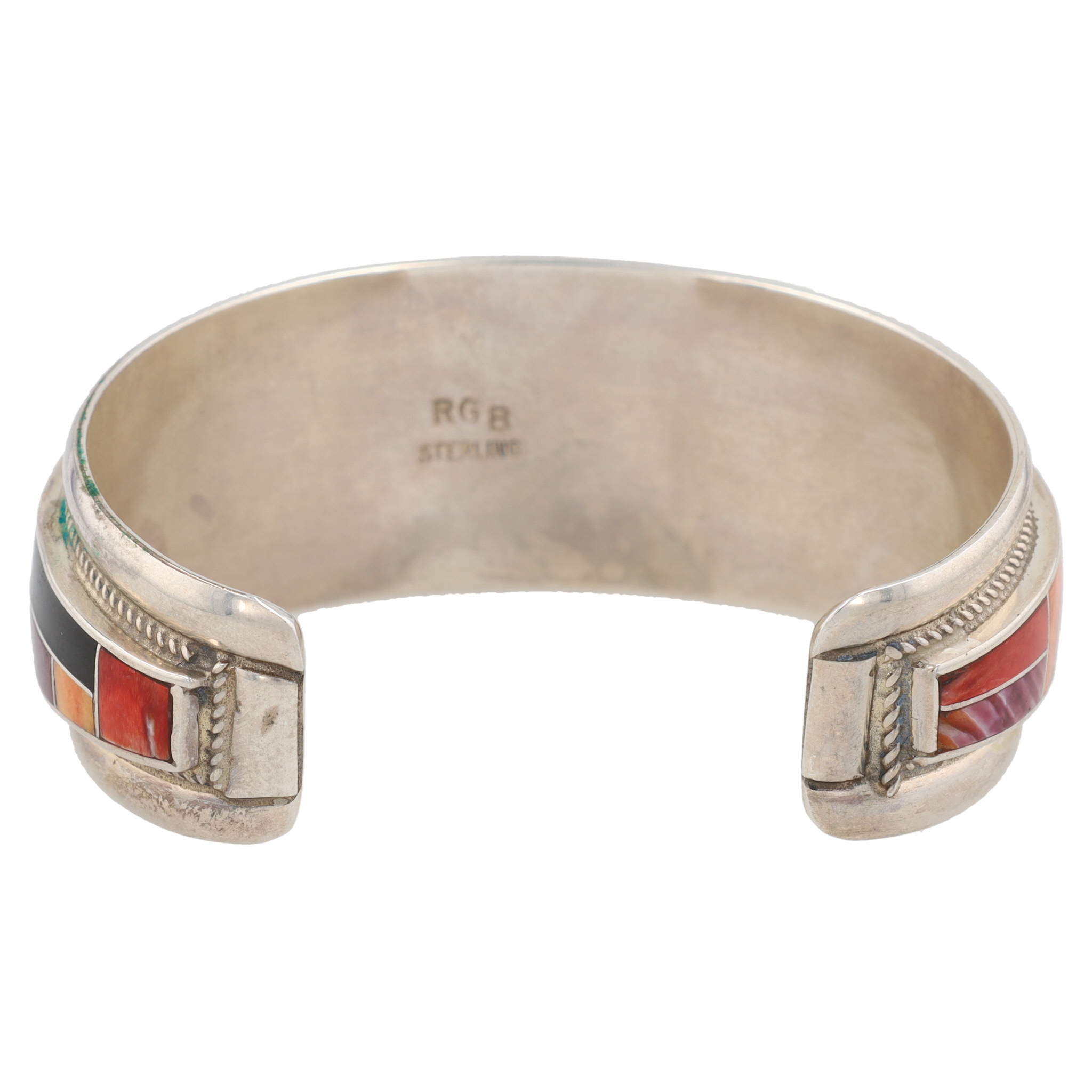 Rickell & Glendora Booqa Zuni Sterling Multi Stone Inlay Cuff Bracelet