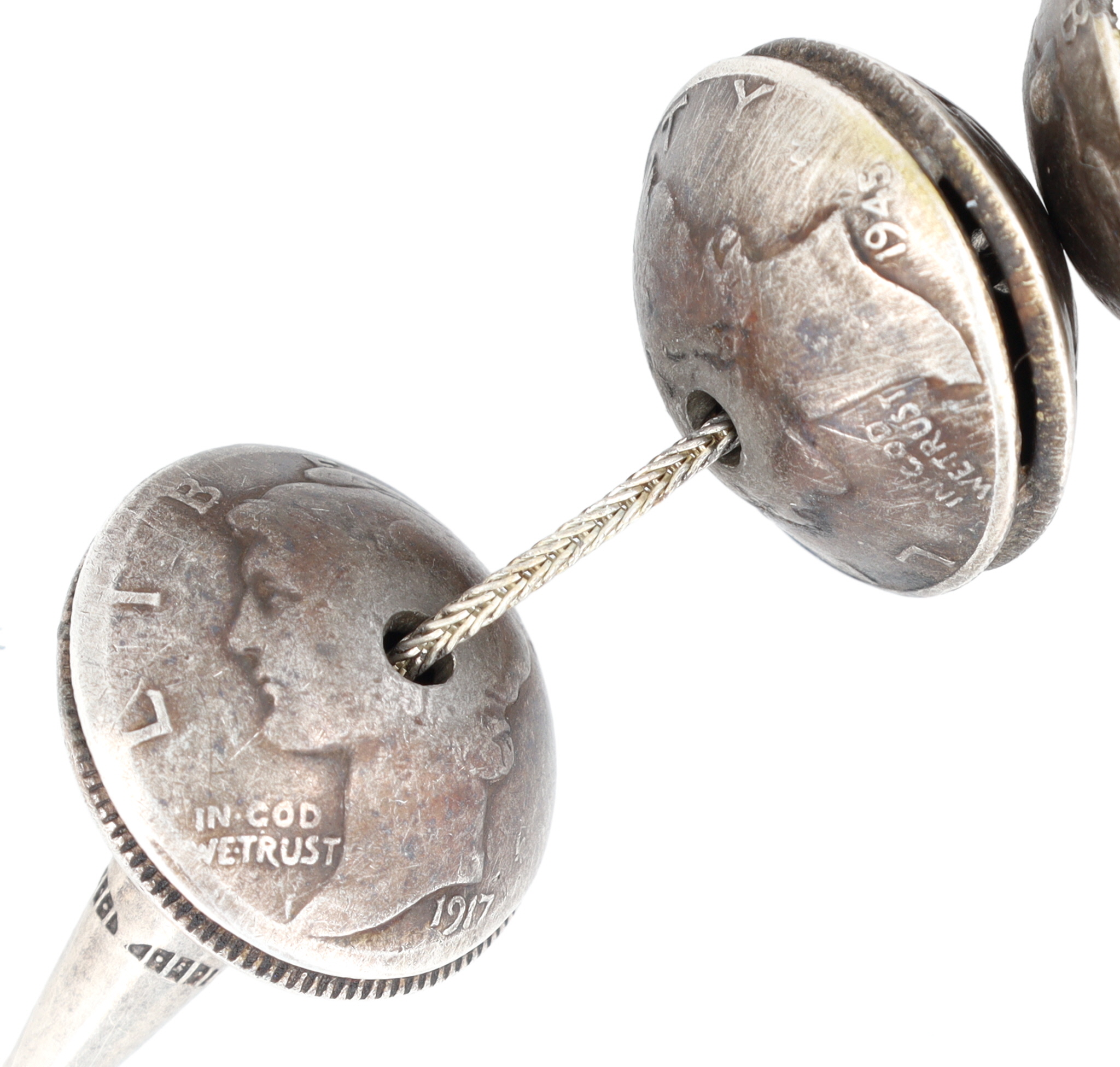Materials: Mercury Dimes & Walking Liberty Half Dollar Coins, Turquoise
