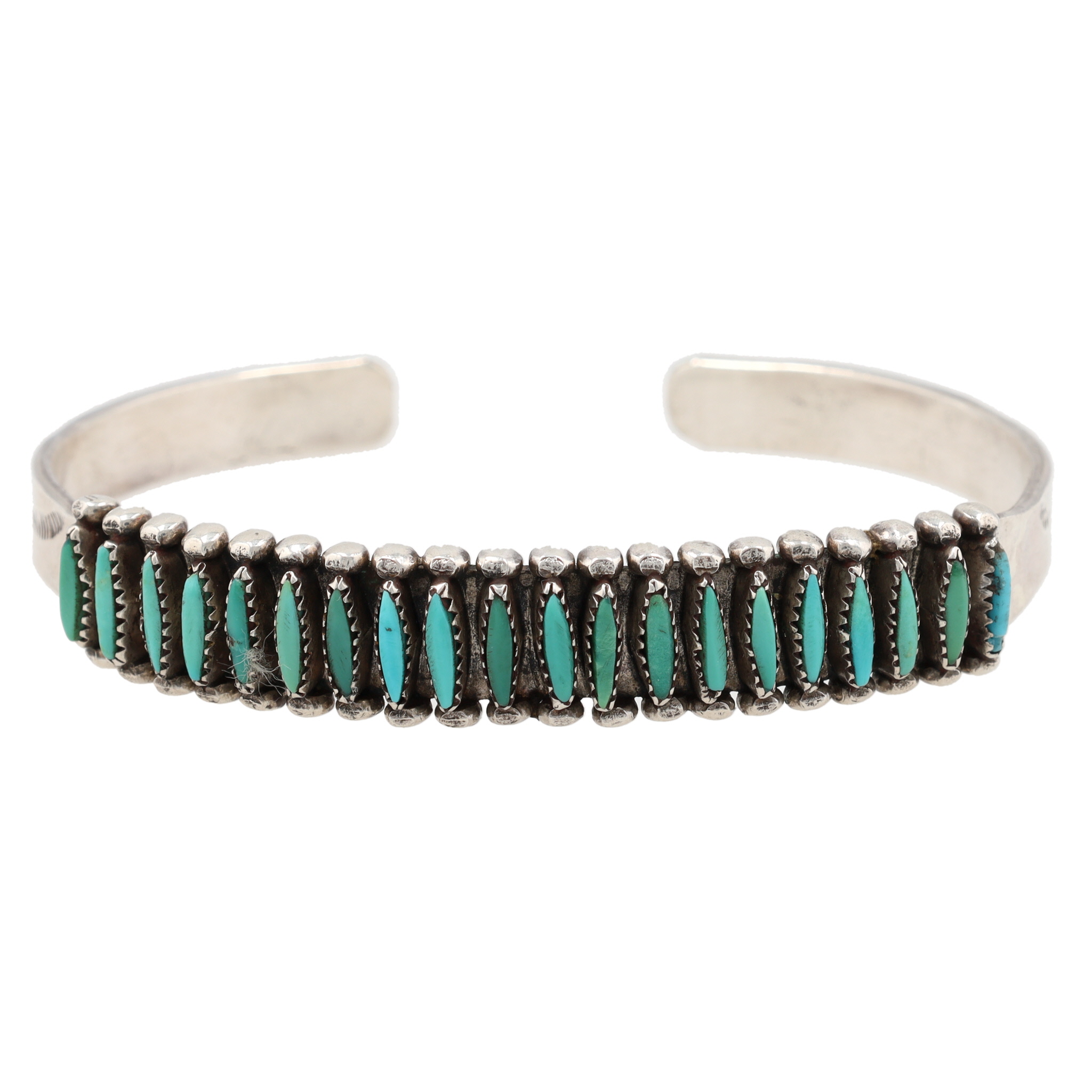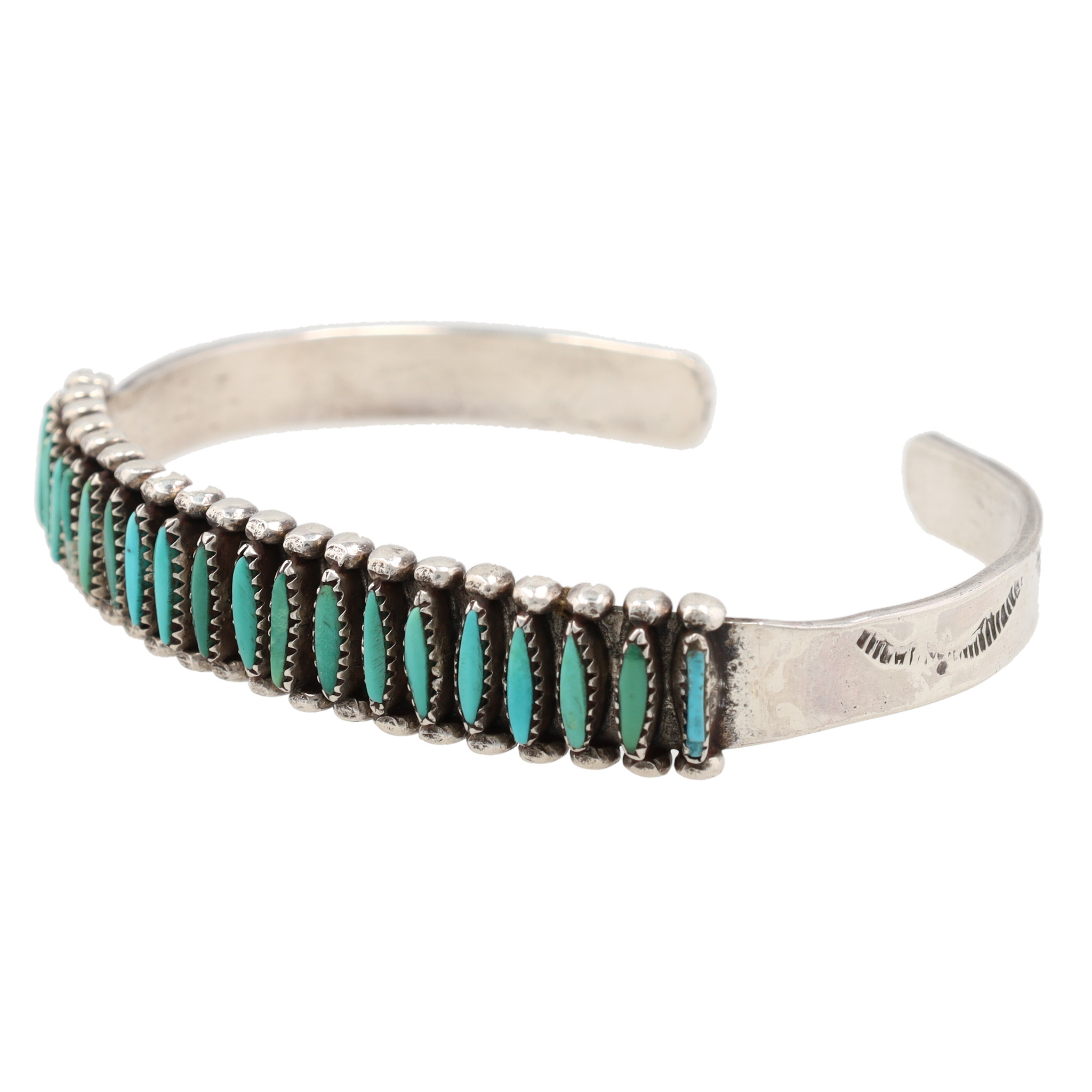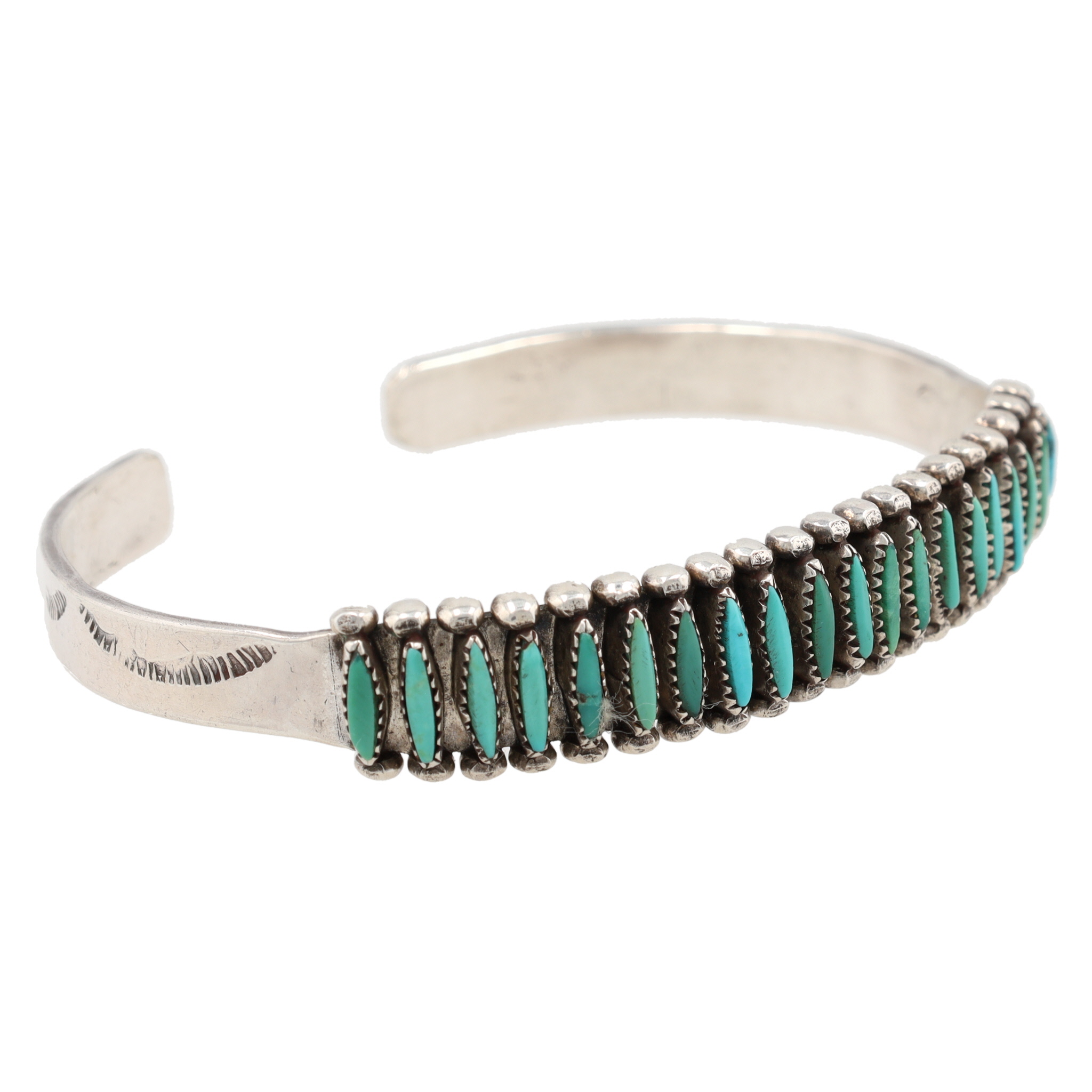 Vintage Zuni Sterling Stamped Turquoise Needlepoint Cuff Bracelet