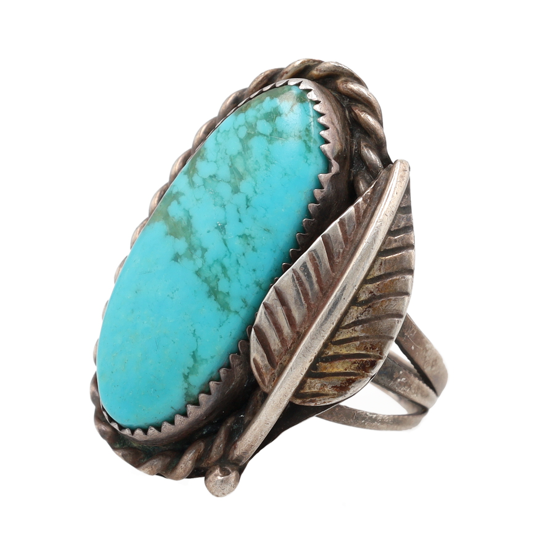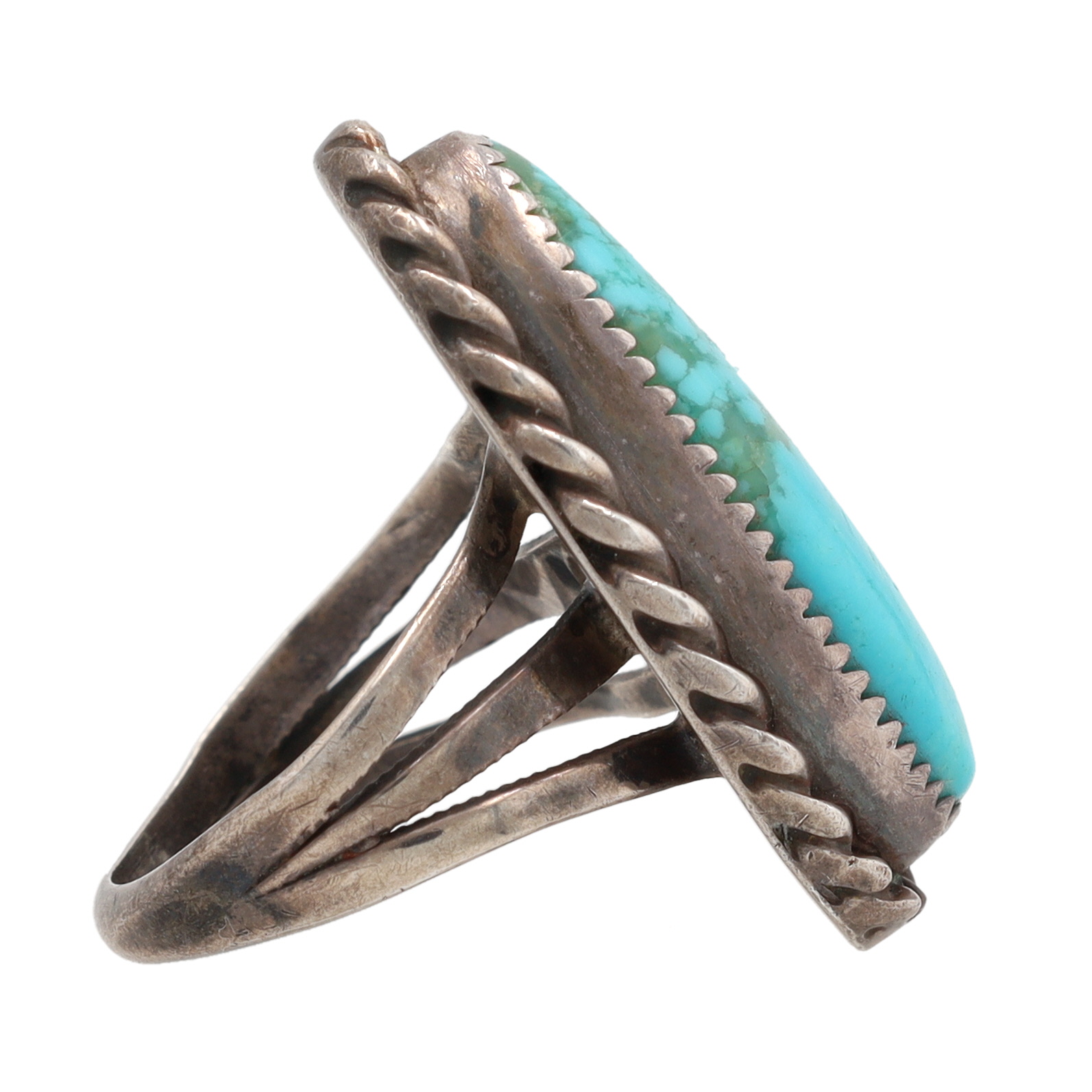 Picto-signed Navajo Sterling Turquoise Ring Sz 6
