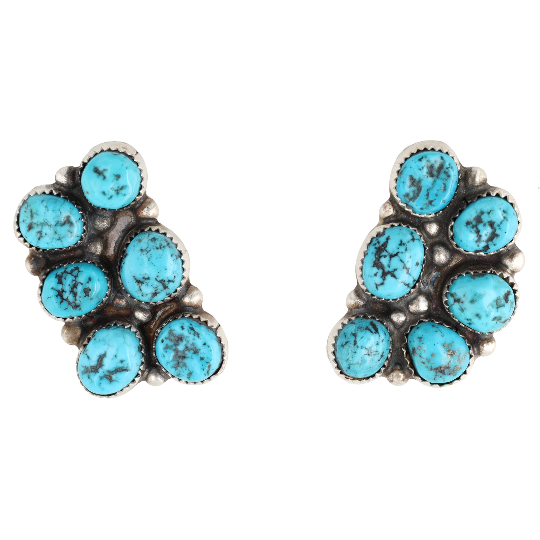 Donovan Nez Navajo Sterling Kingman Turquoise Cluster Earrings