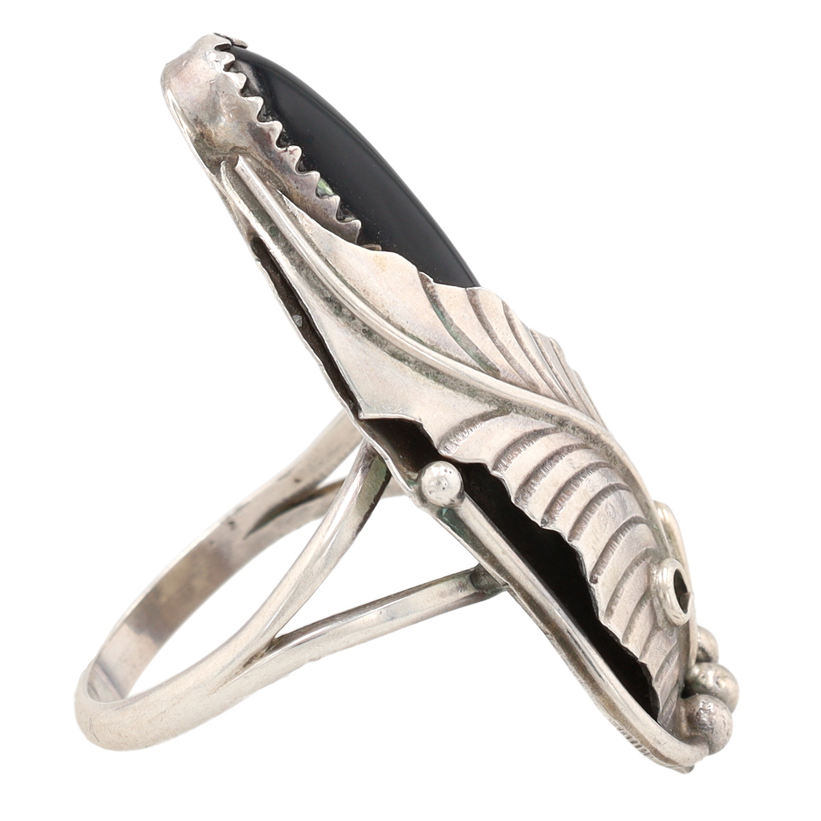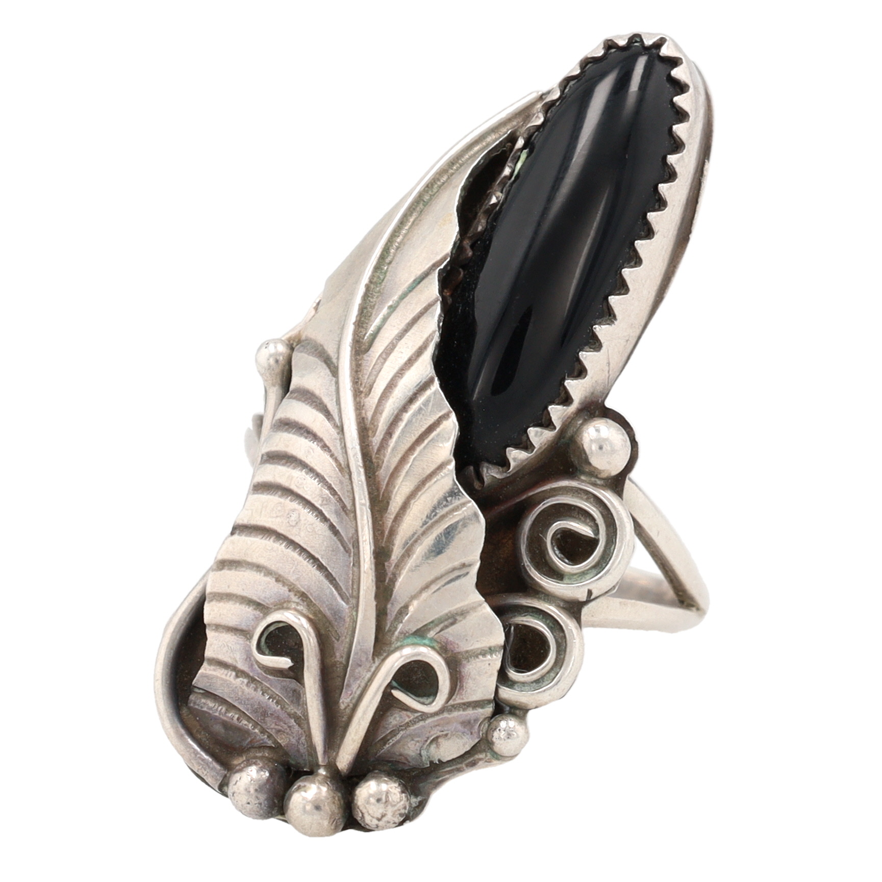 Harrison Yazzie Navajo Sterling Onyx Leaf Ring Sz 8
