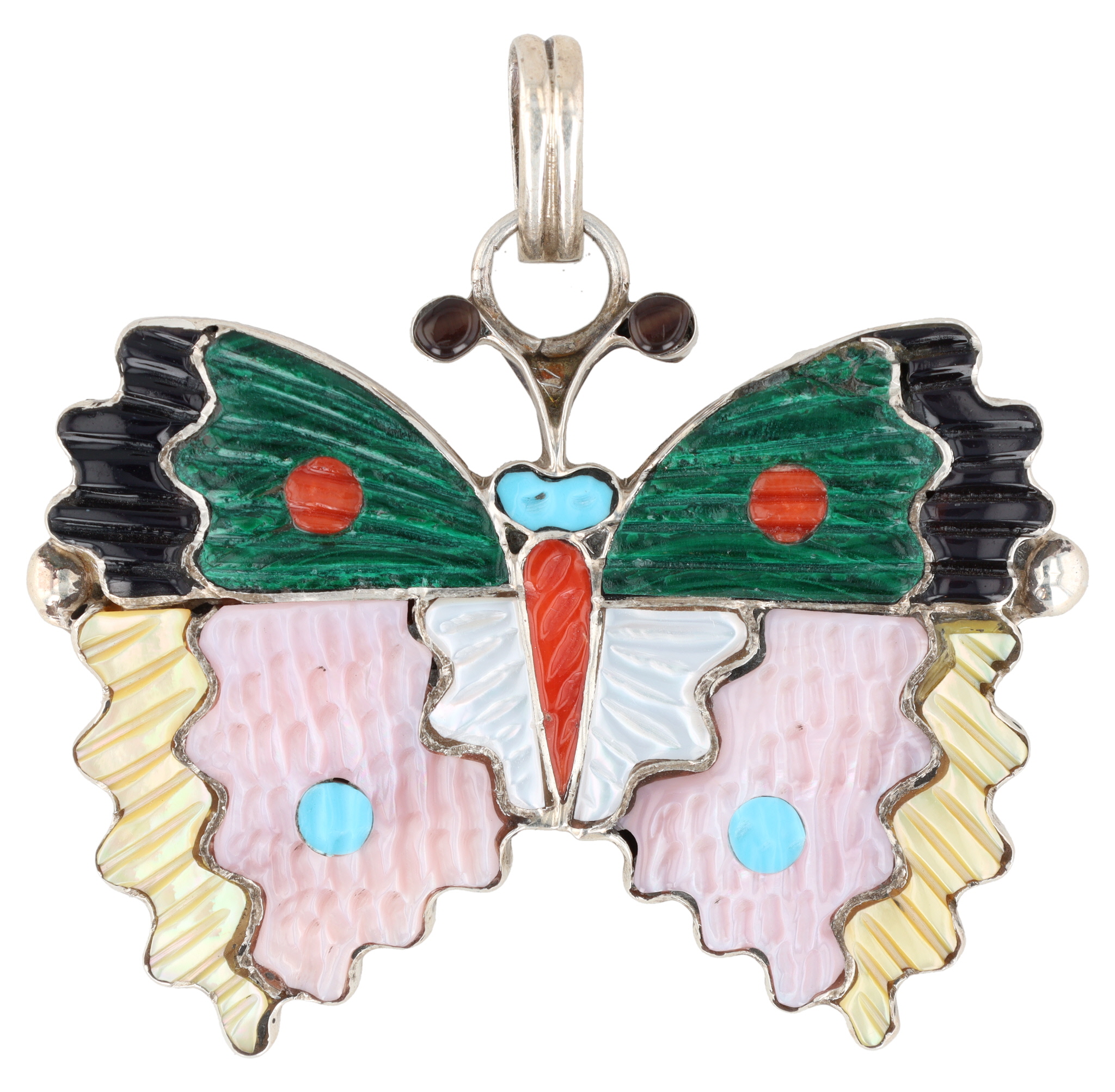 Tamara Pinto Zuni Sterling Multi Stone Inlay Butterfly Pendant