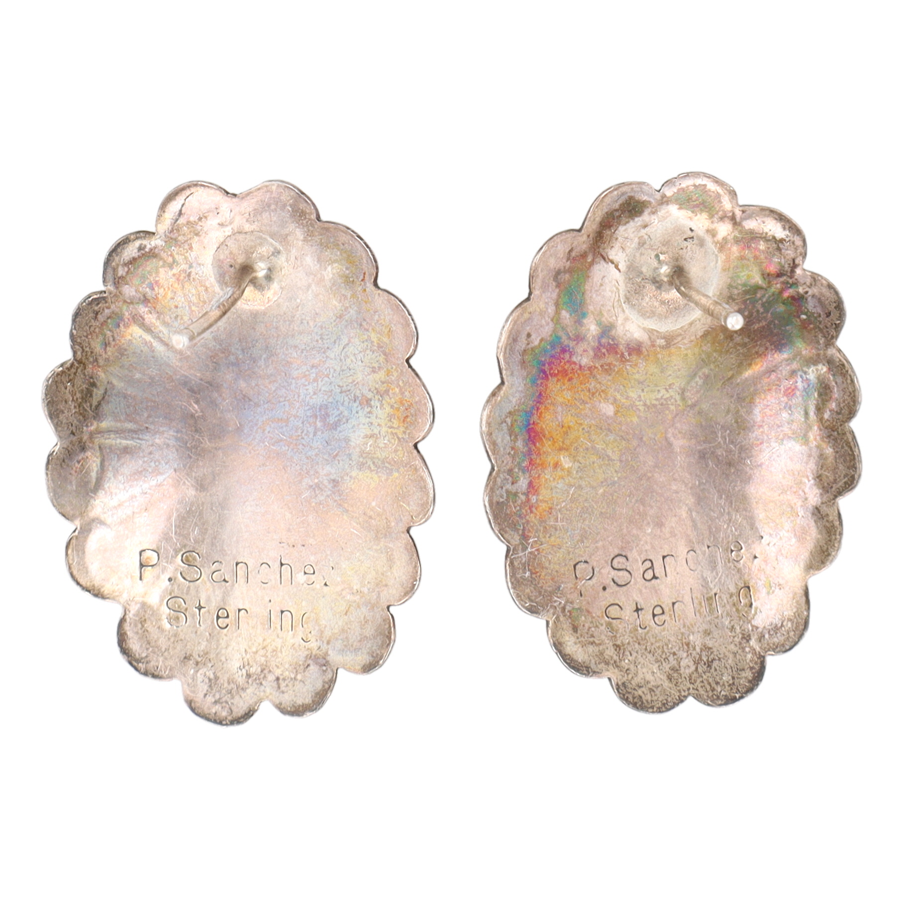 Pete Sanchez Isleta Pueblo Sterling Multi Stone Inlay Concho Earrings