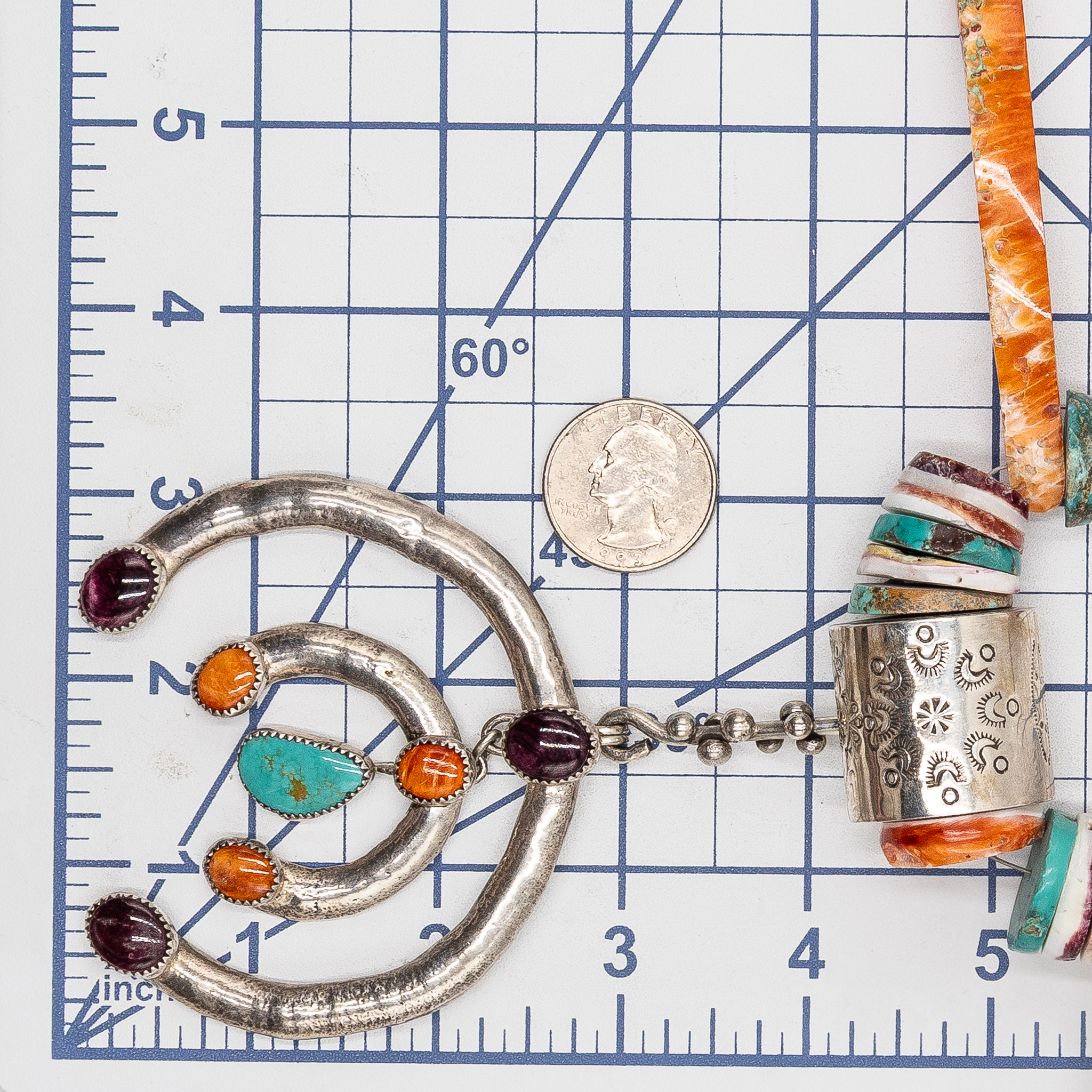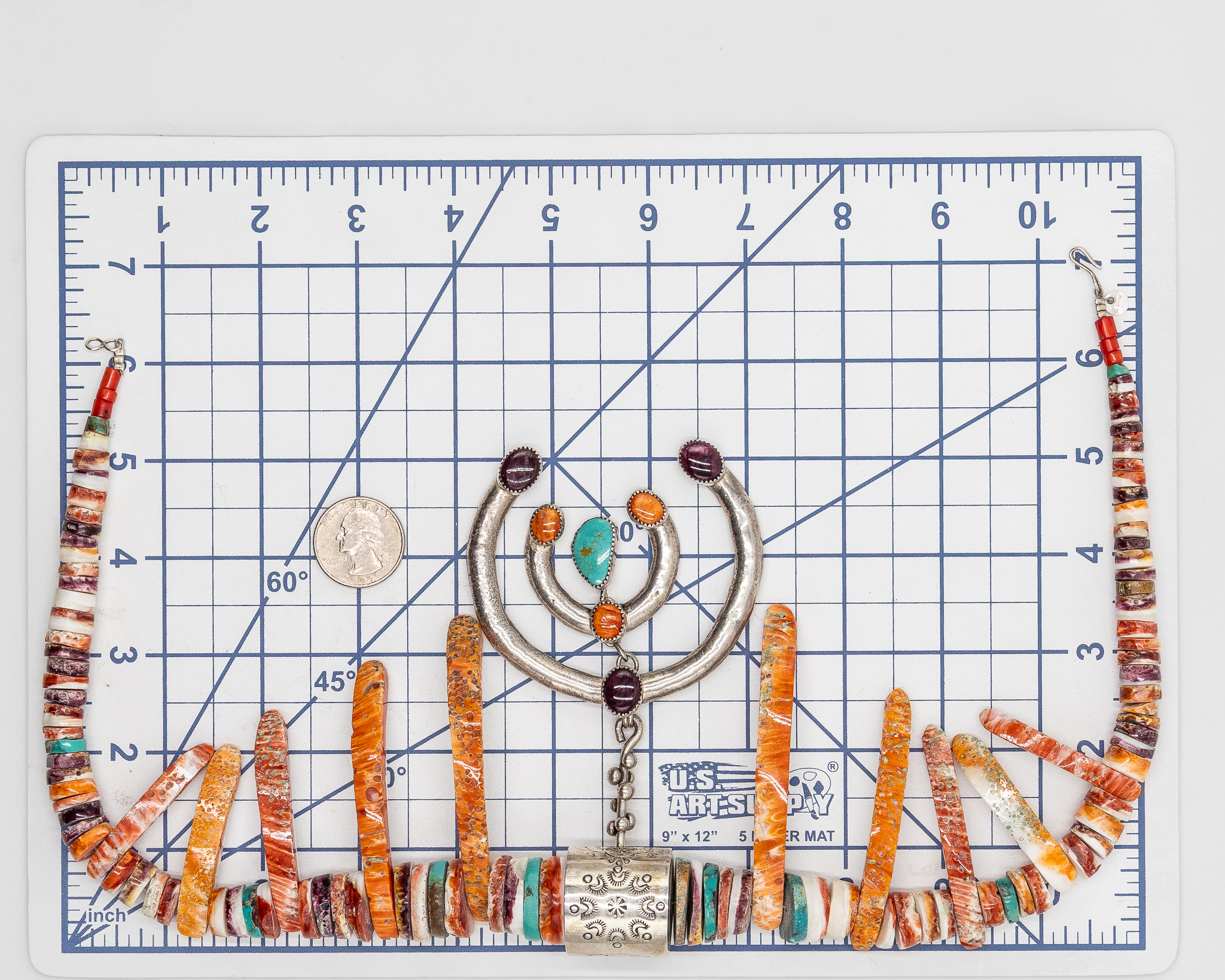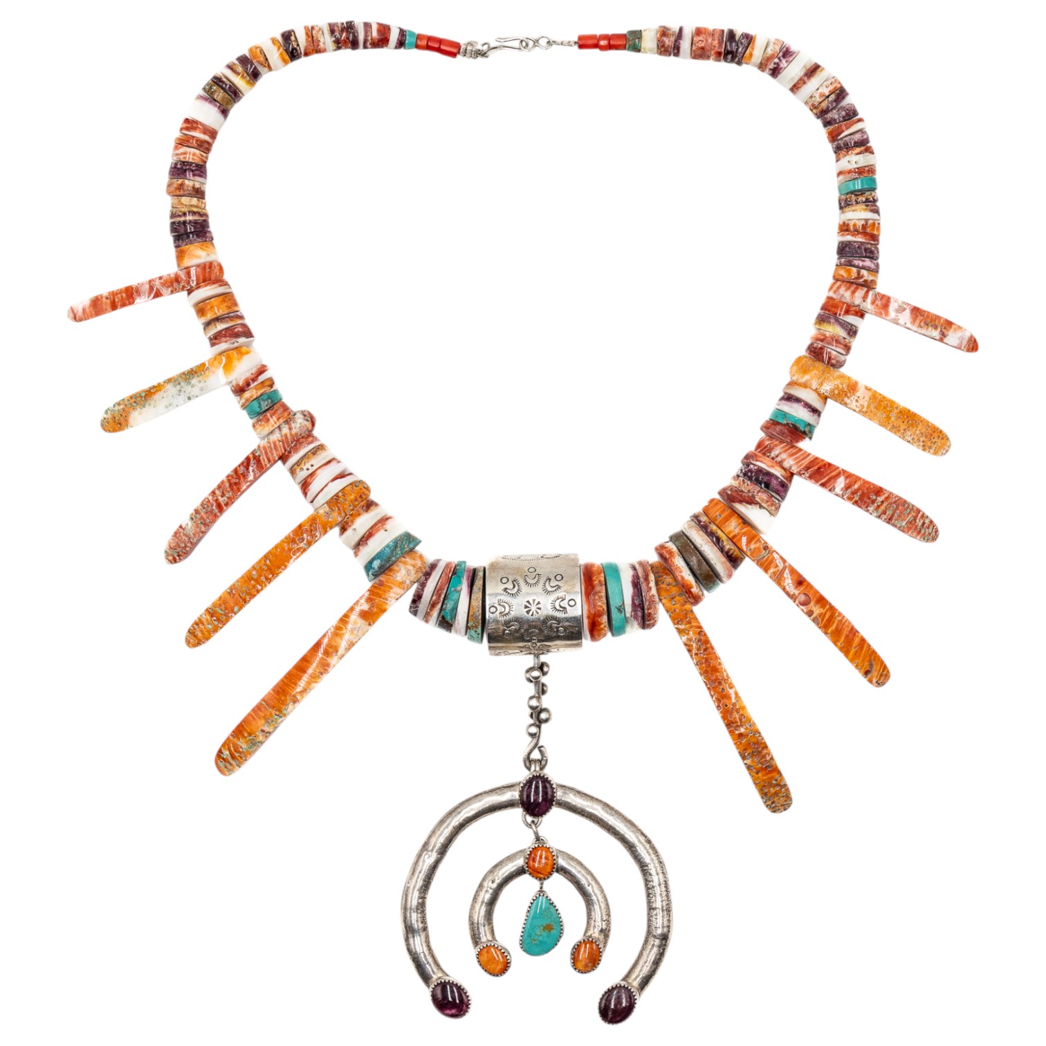 Jolene Bird and Kevin Rey Coriz Santo Domingo Spiny Oyster Heishi Tab Sterling Naja Necklace