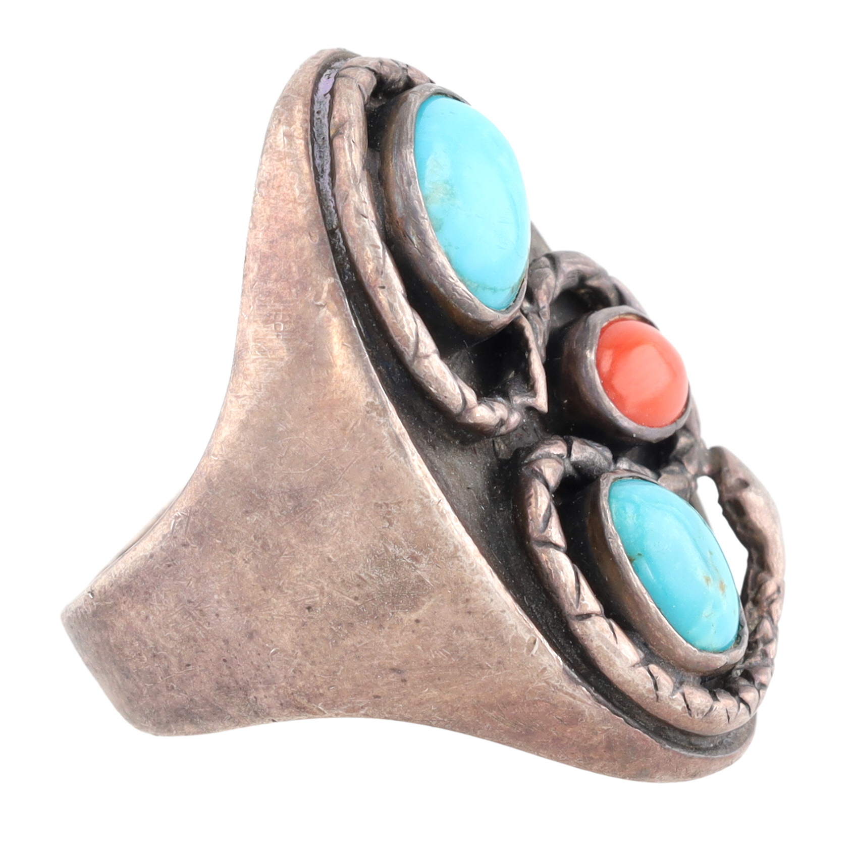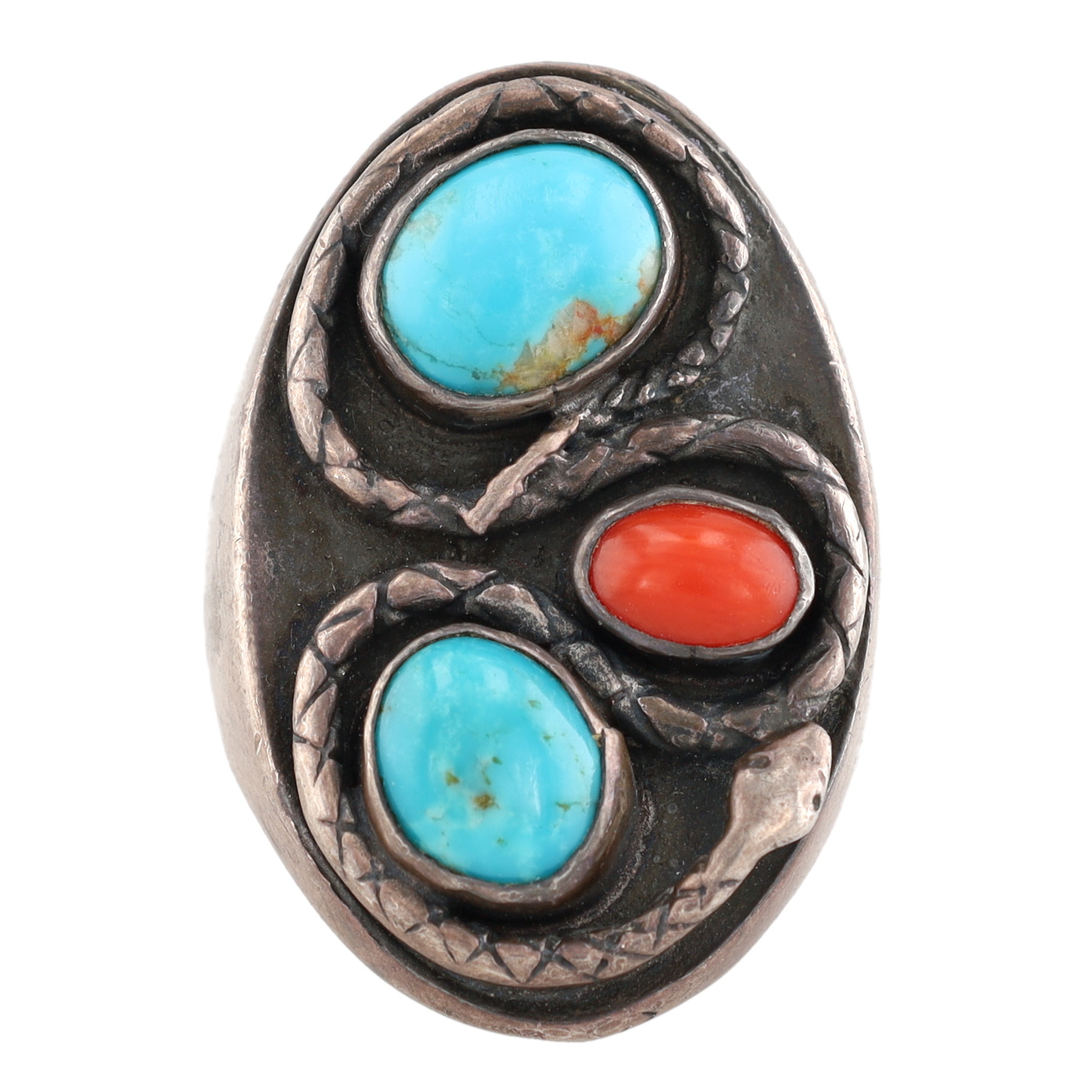 Vintage Navajo Sterling Turquoise Coral Snake Ring Sz 9