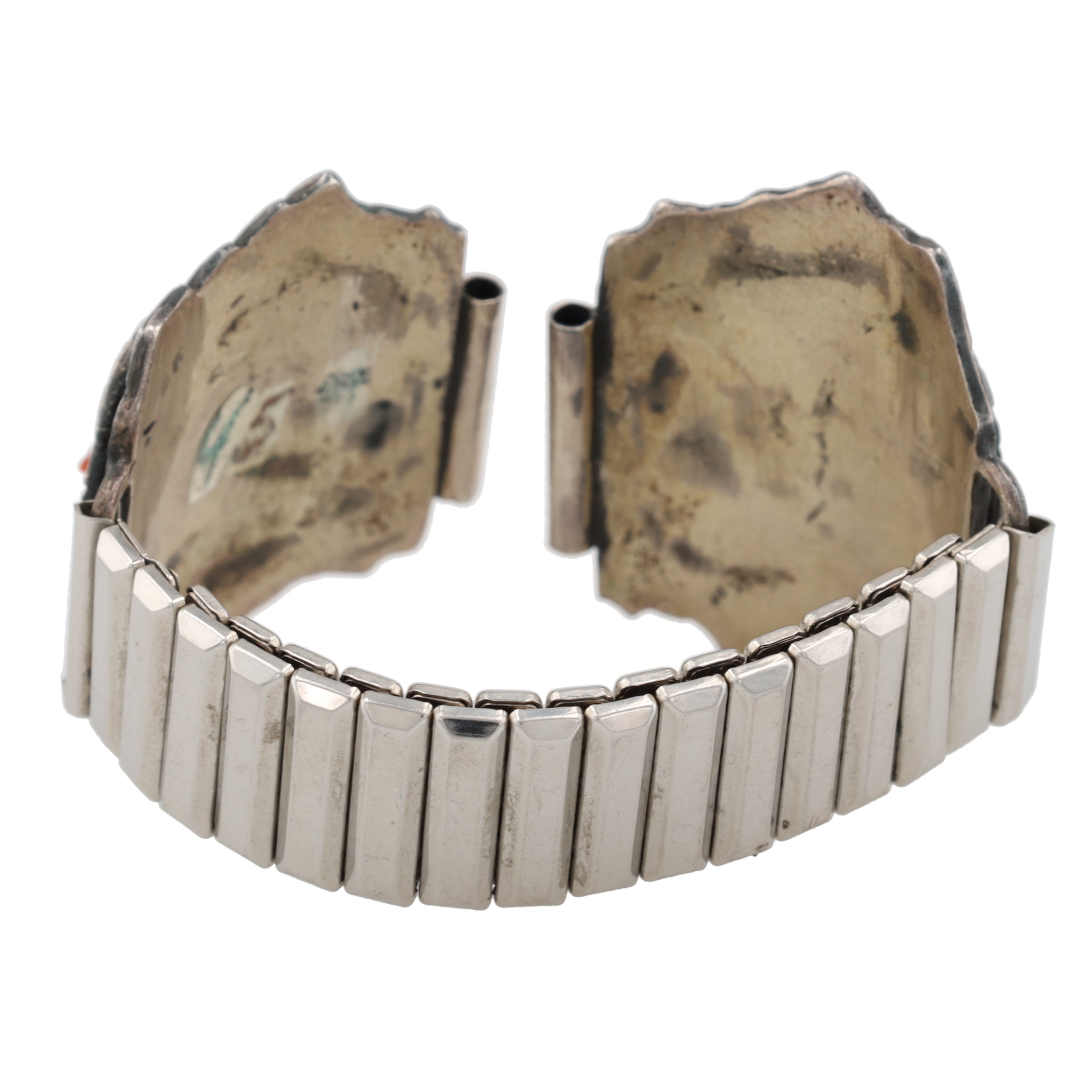 Vintage Navajo Sterling Turquoise Coral Snake Watch Tips on a Stainless Steel Band