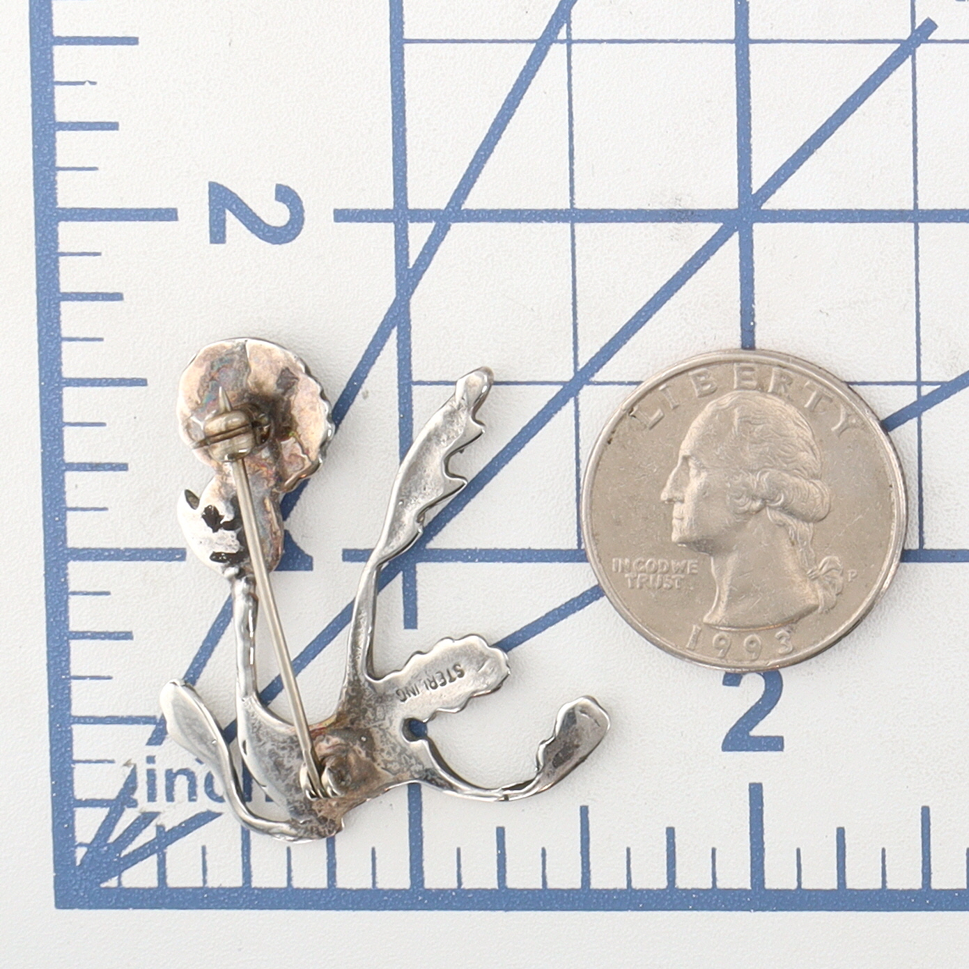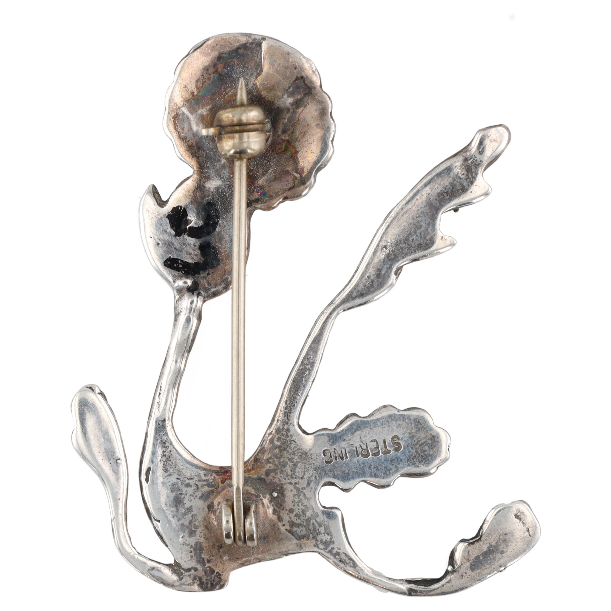 Vintage Navajo Sterling Turquoise Roadrunner Brooch