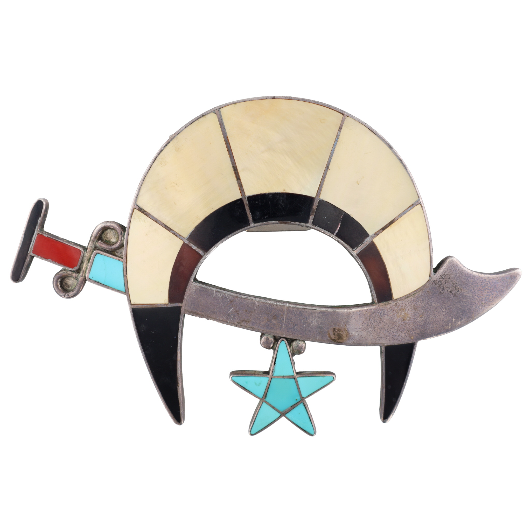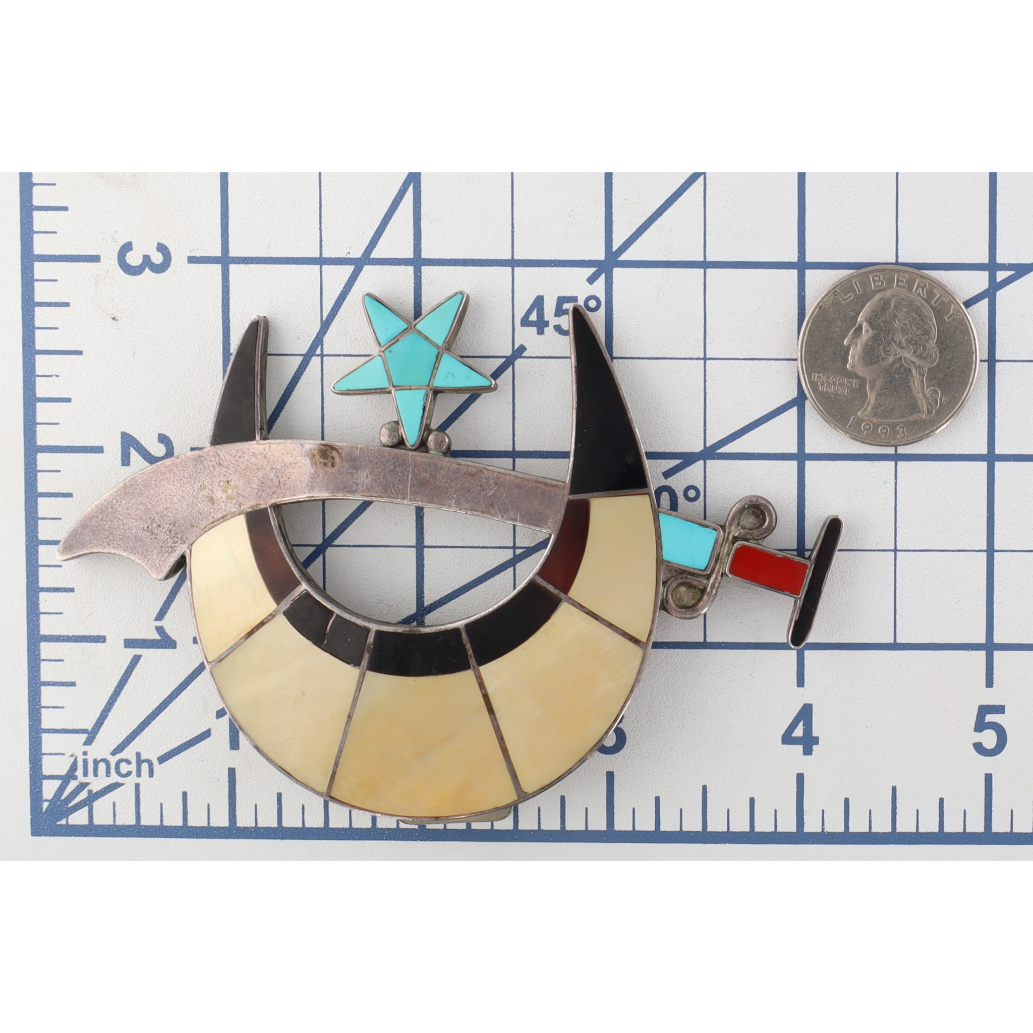 Vintage Wilford & Lena Quandelacy Zuni Sterling Multi Stone Masonic Shriner Inlay Bolo Tie