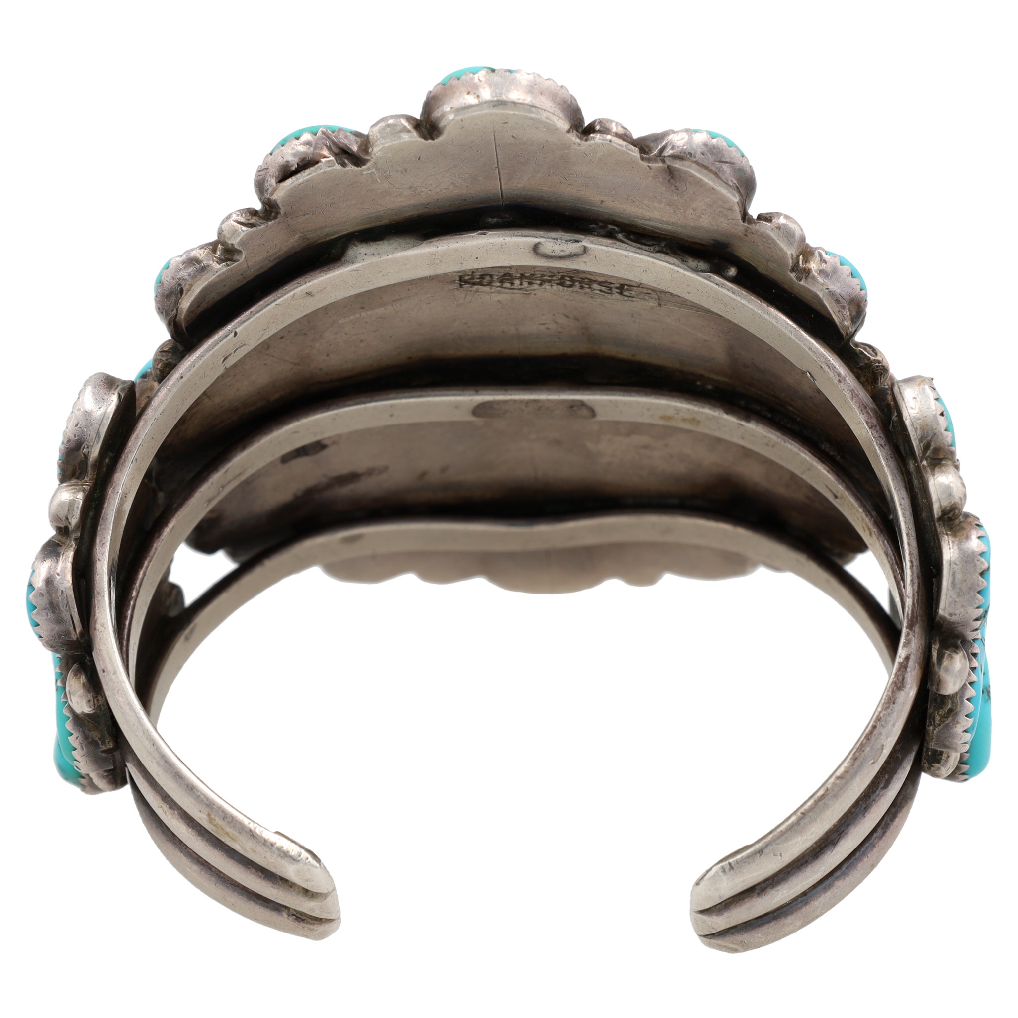 Stunning! Henry Roanhorse Navajo Sterling Turquoise Cluster Cuff Bracelet