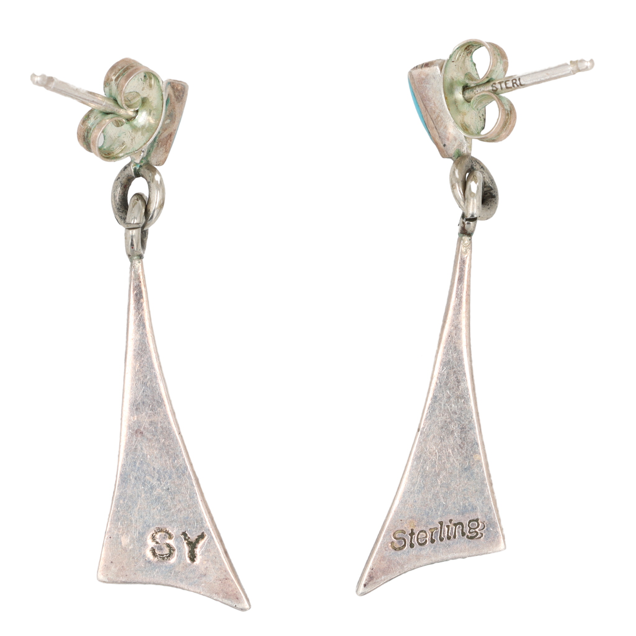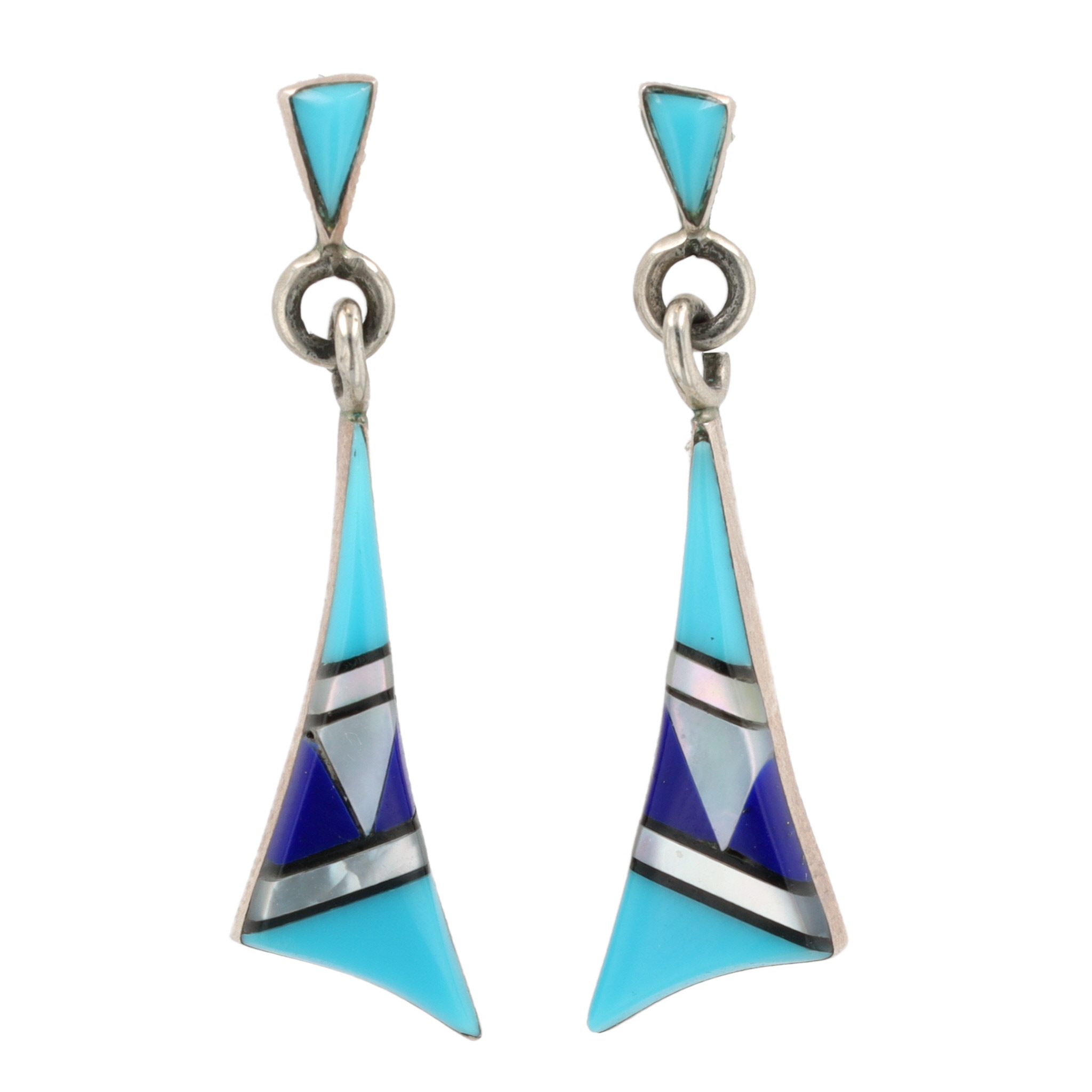 Sally Yazzie Navajo Sterling Multi Stone Inlay Earrings