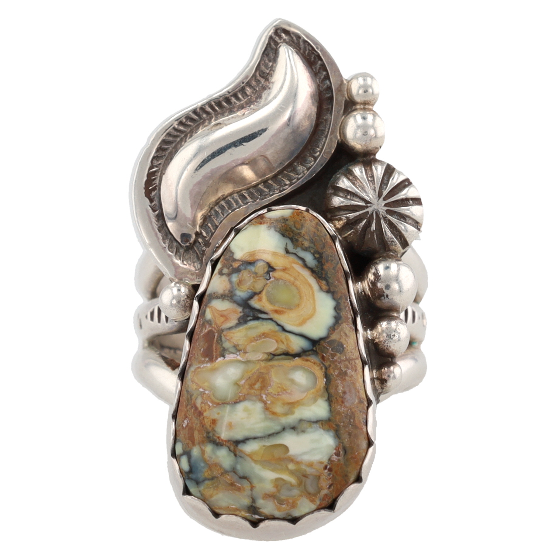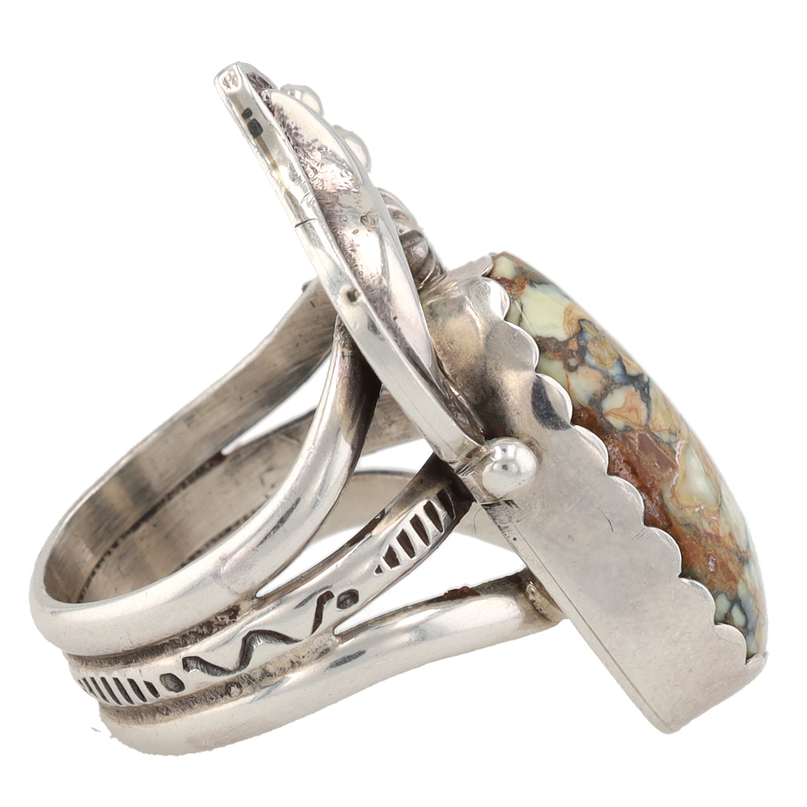 Gorgeous Signed TM (possibly Toney Mitchell?) Navajo Sterling Damele Turquoise Ring Sz 6 (Possibly Jasper?)