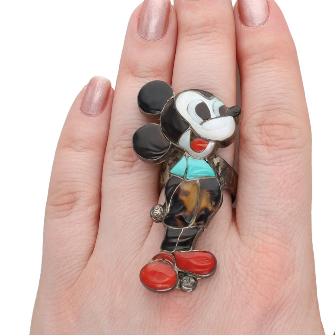 RARE! Veronica Poblano Nastacio Zuni 1976 Mickey Mouse Zunitoon Multi Stone Inlay Ring Sz 10. These do not come around often – a true collector’s piece!