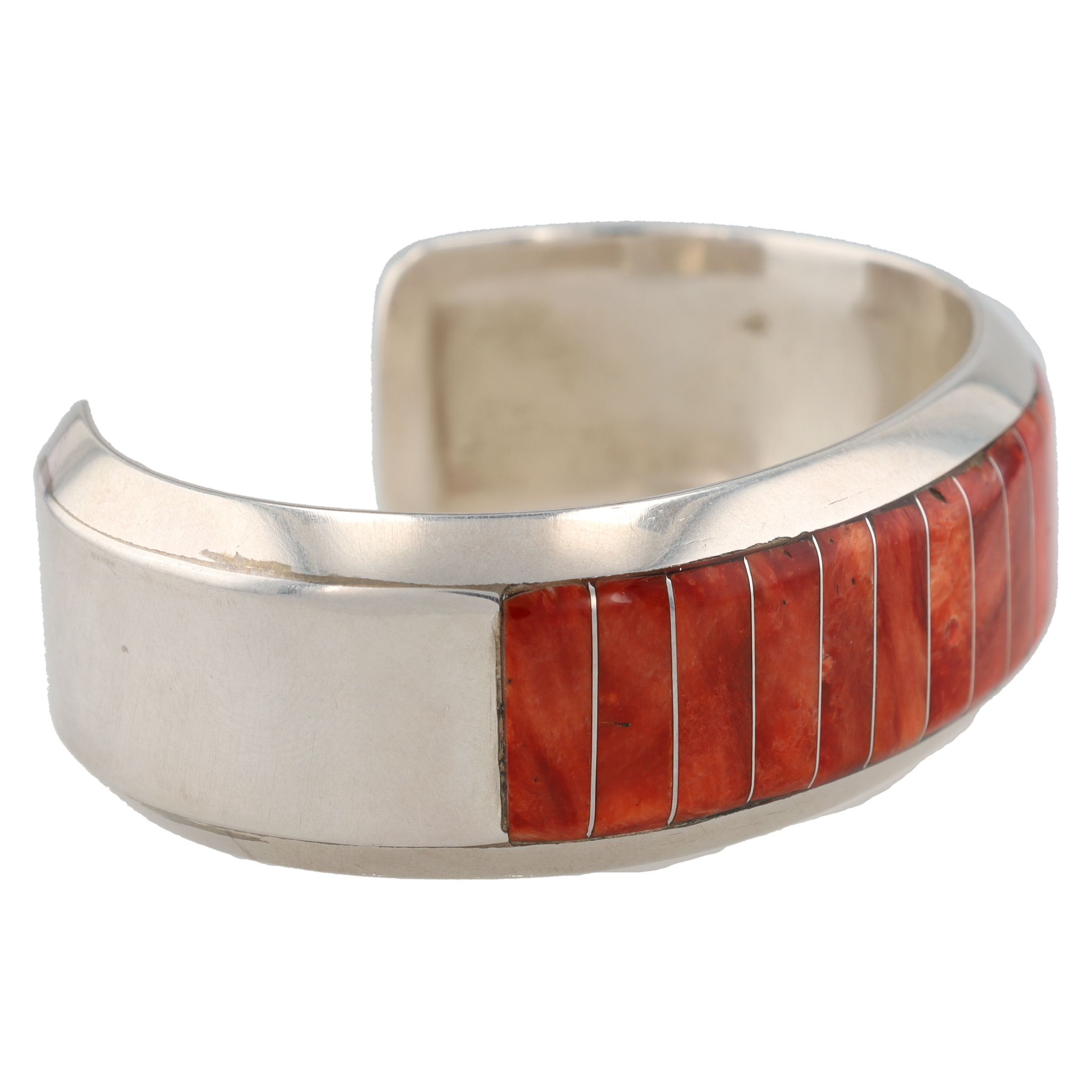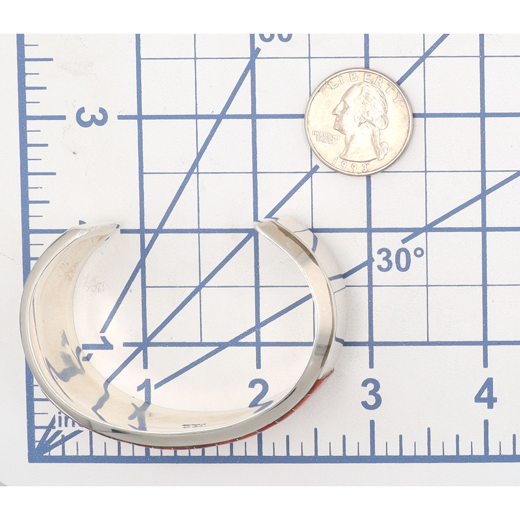 Signed WS (Possibly Willie Saiz?) Navajo Sterling Spiny Oyster Inlay Cuff Bracelet