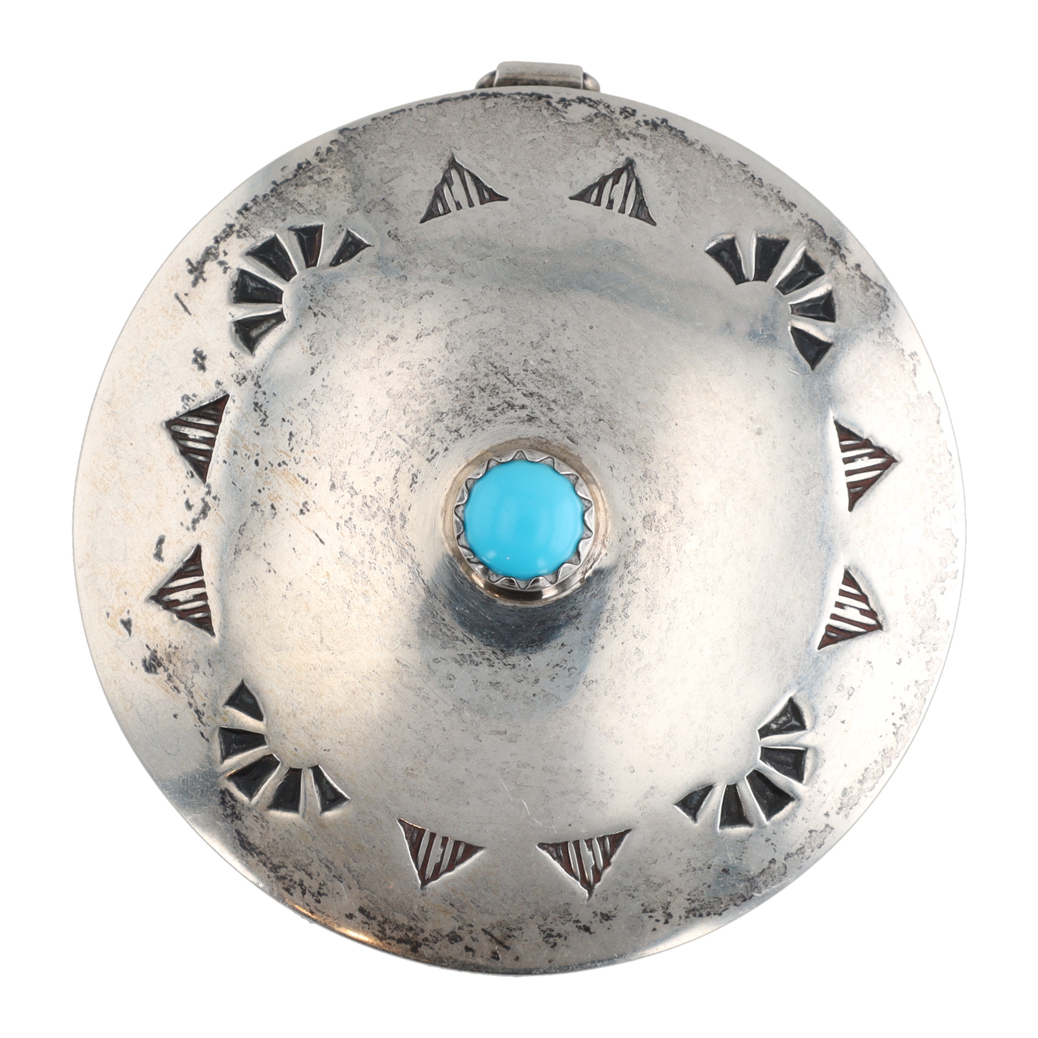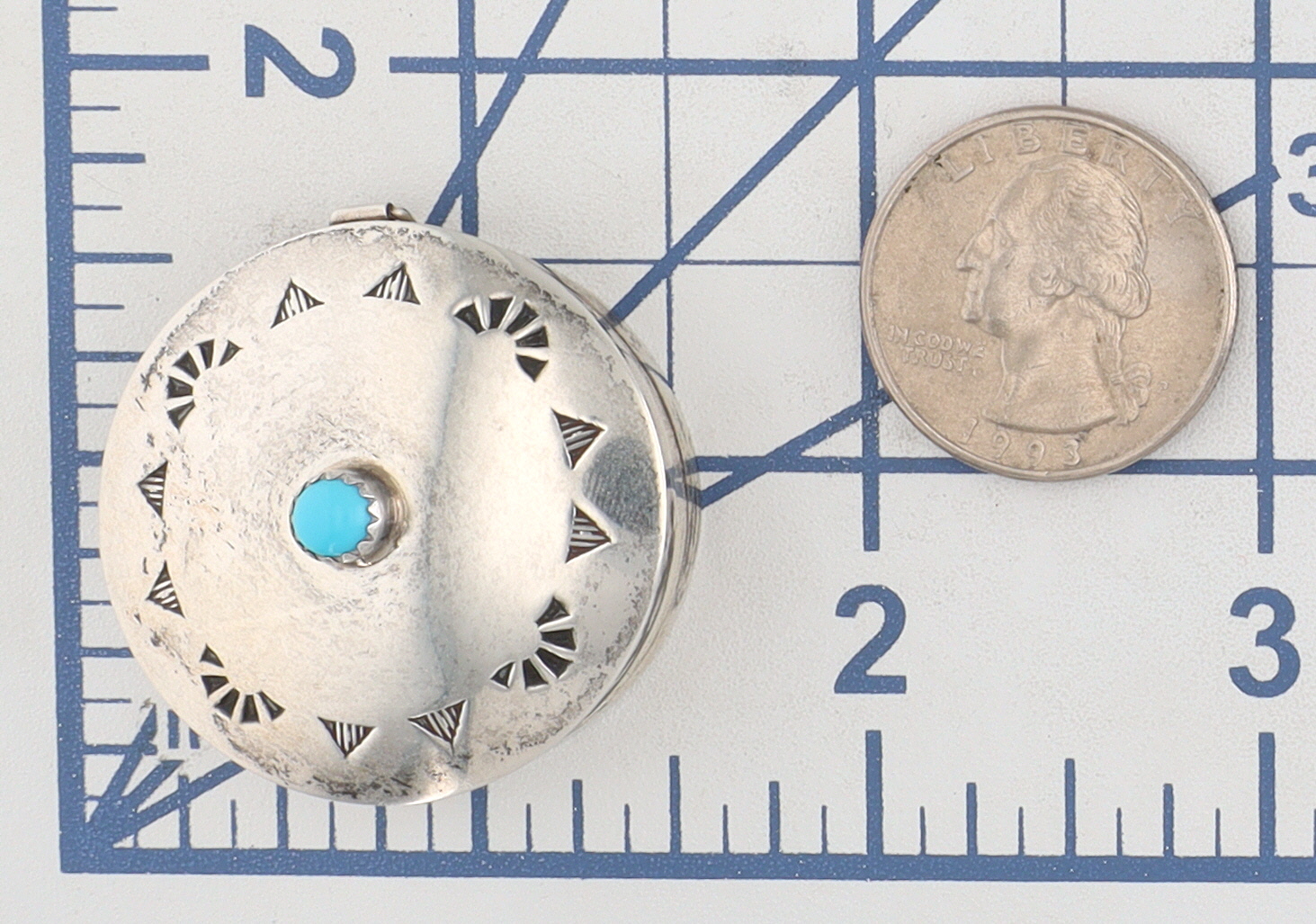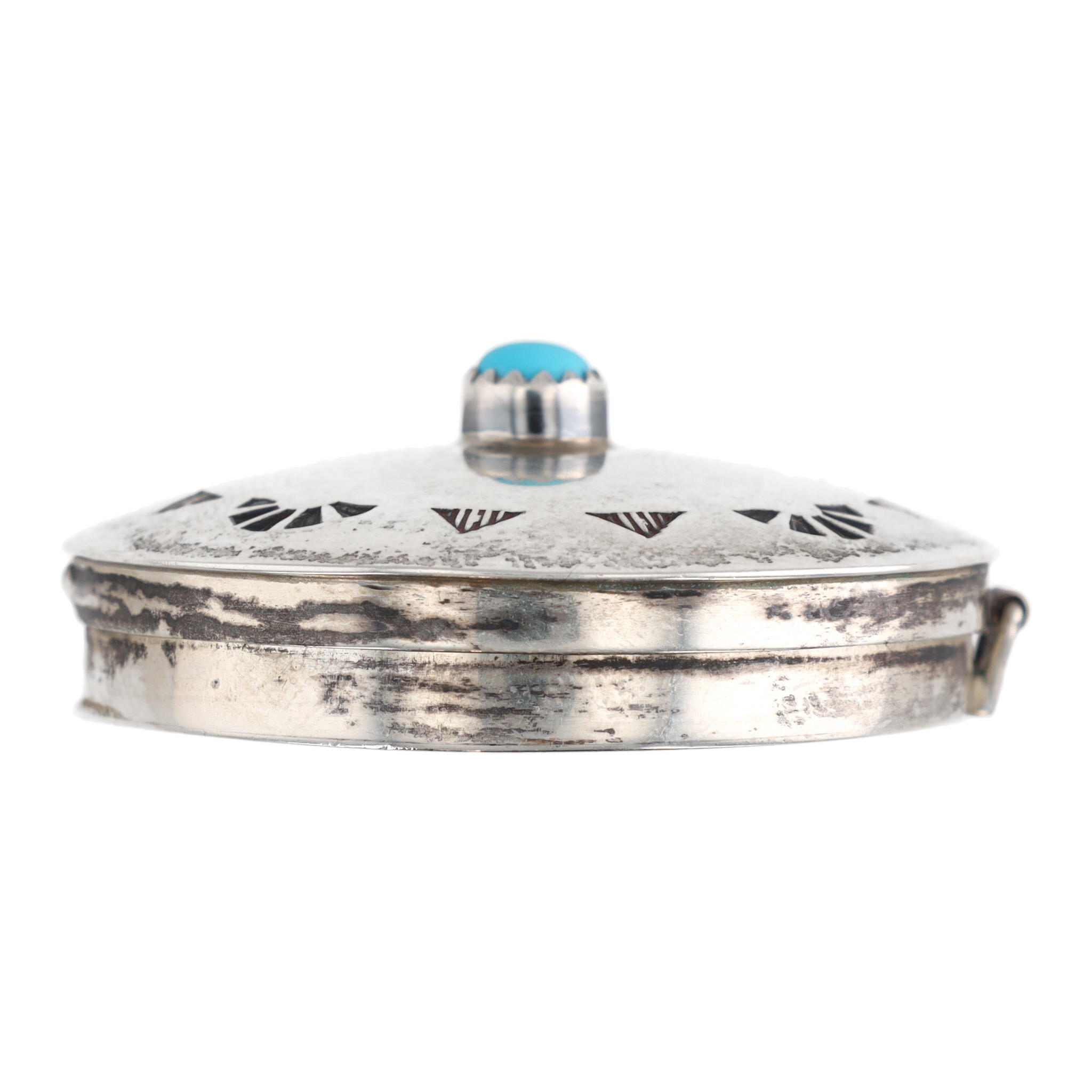 Elizabeth Margaret Whitman Navajo Sterling Turquoise Stamped Pill Box