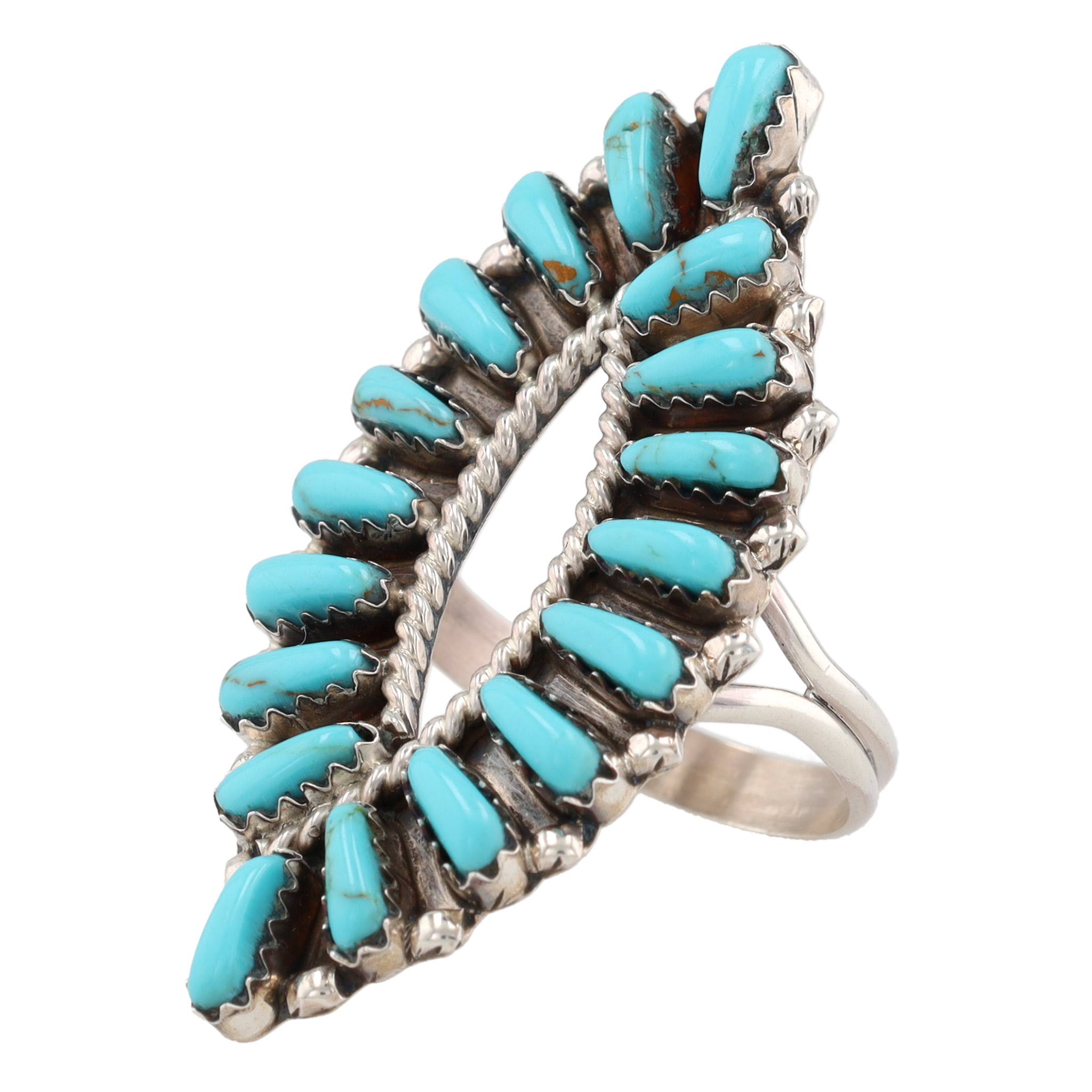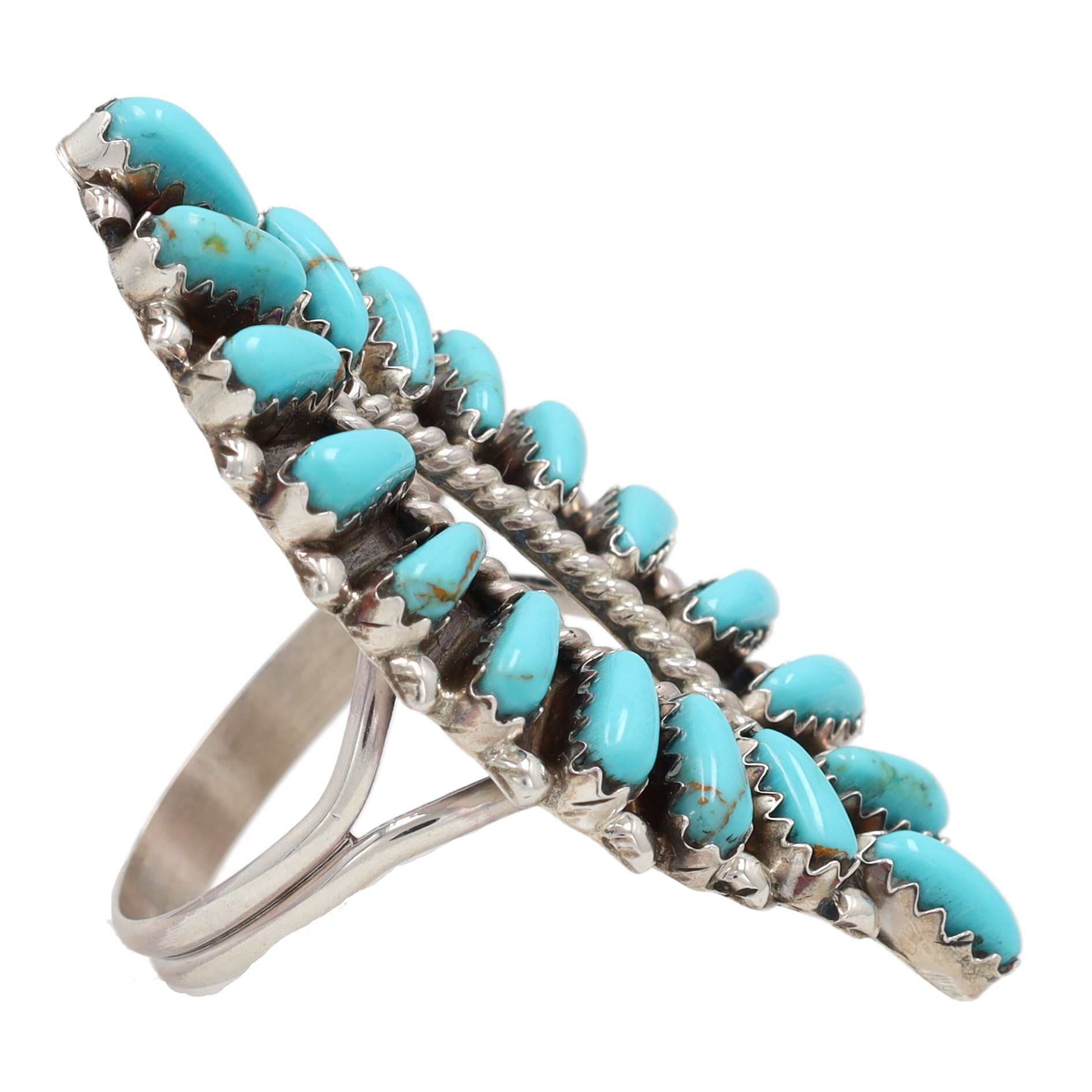 Tamara Benally Navajo Sterling Turquoise Petit Point Ring Sz 8