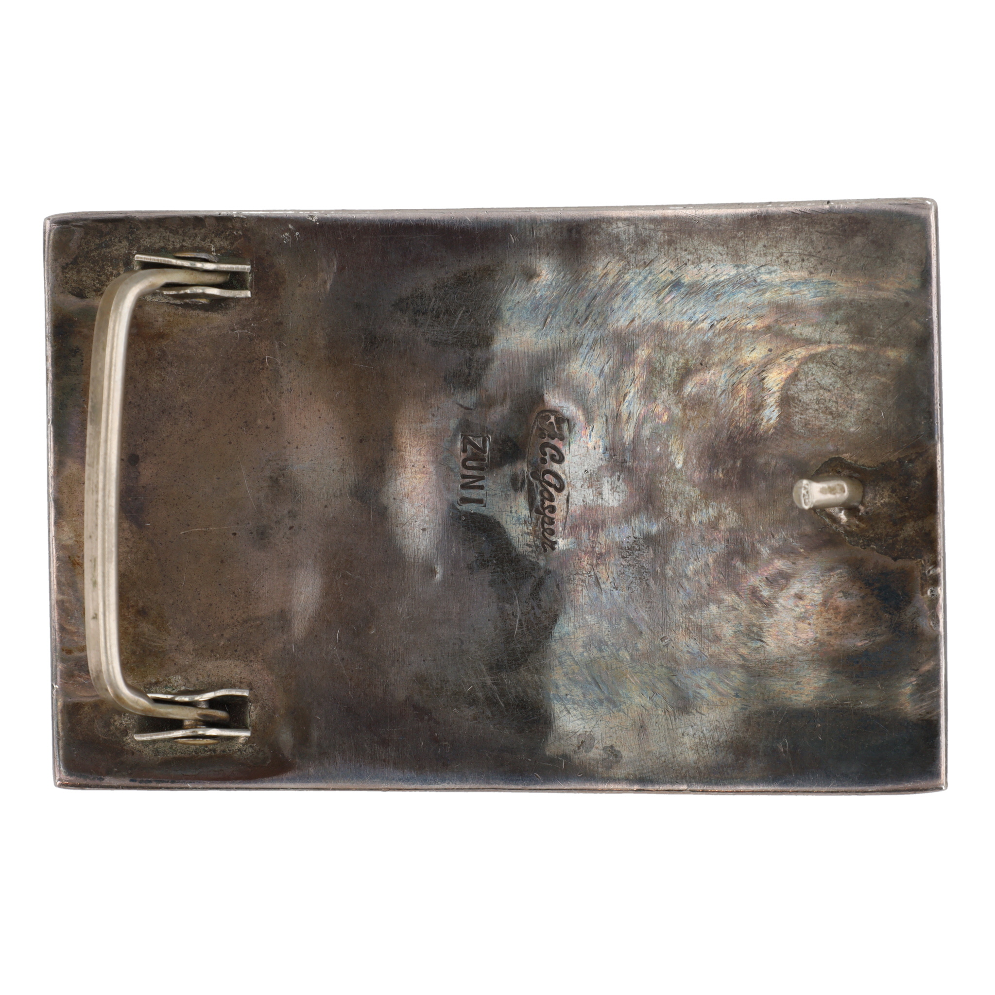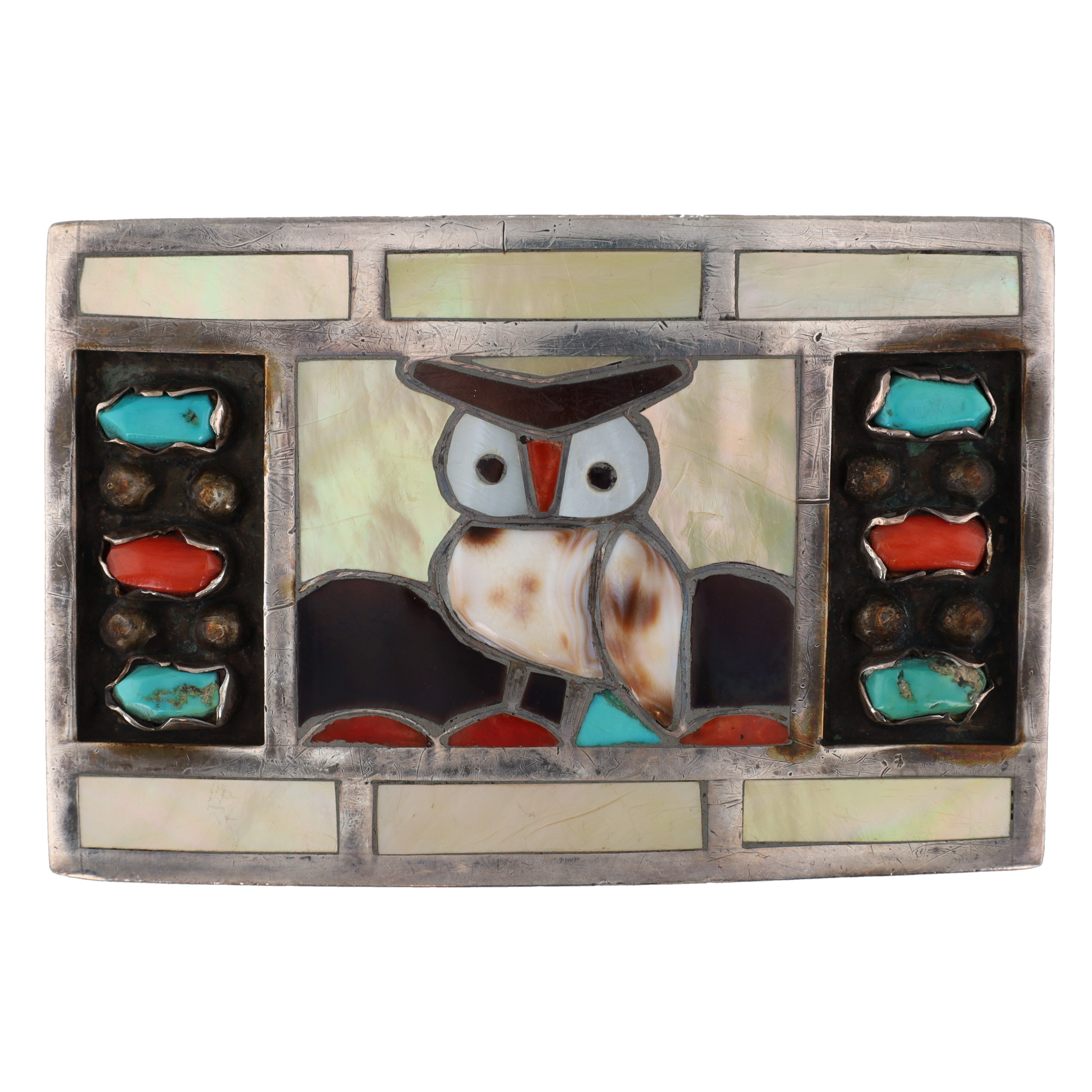 Filbert & Clara Gasper Zuni Sterling Multi Stone Inlay Owl Belt Buckle