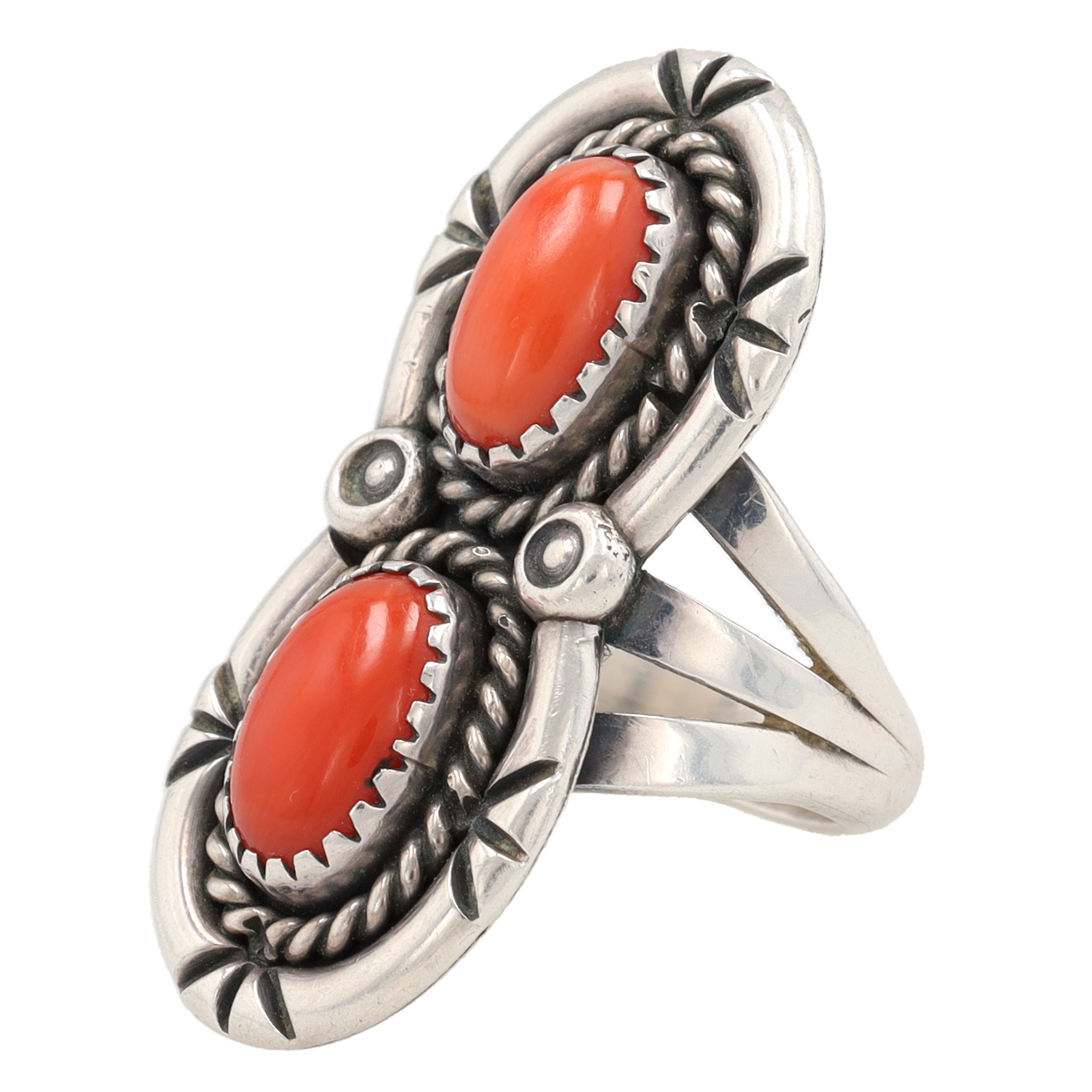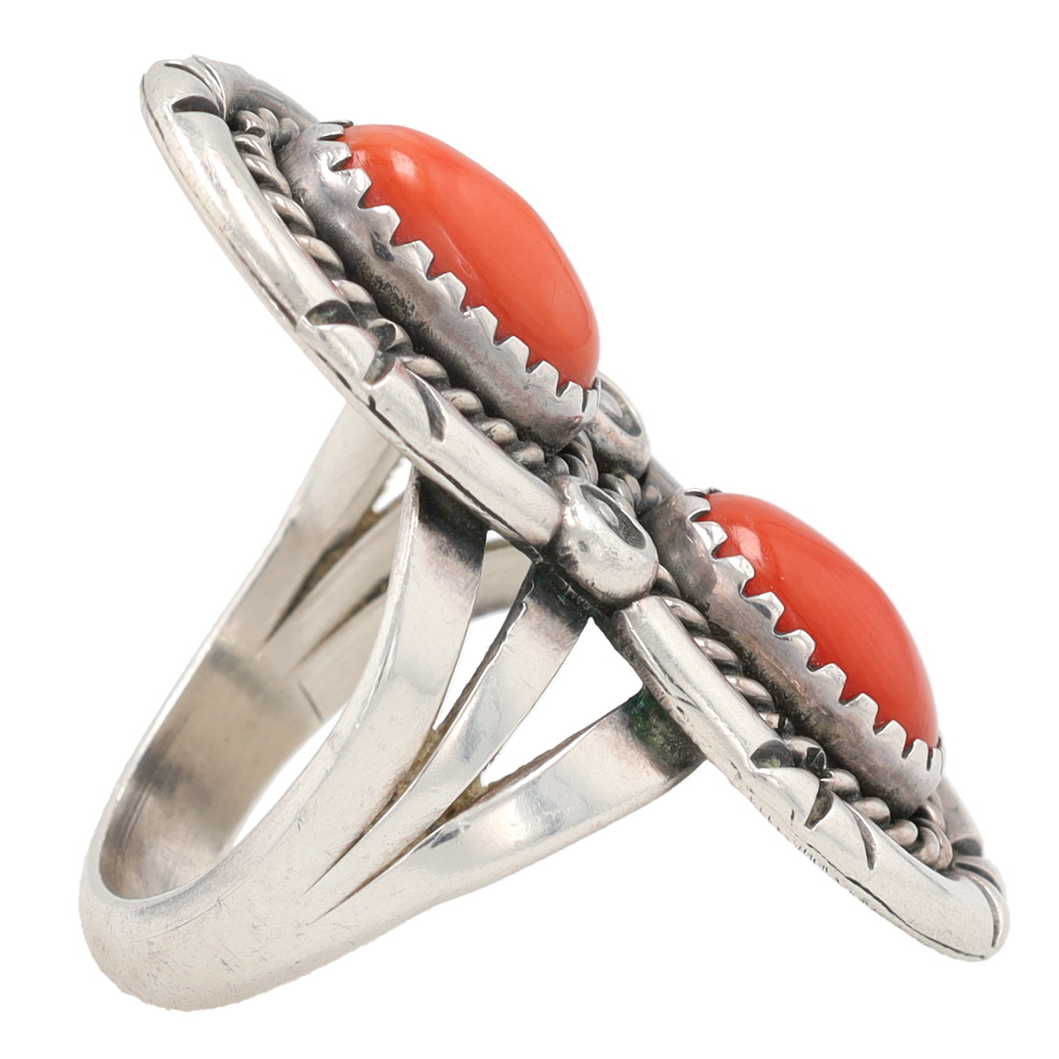 Navajo Sterling Coral Ring Sz 7.5