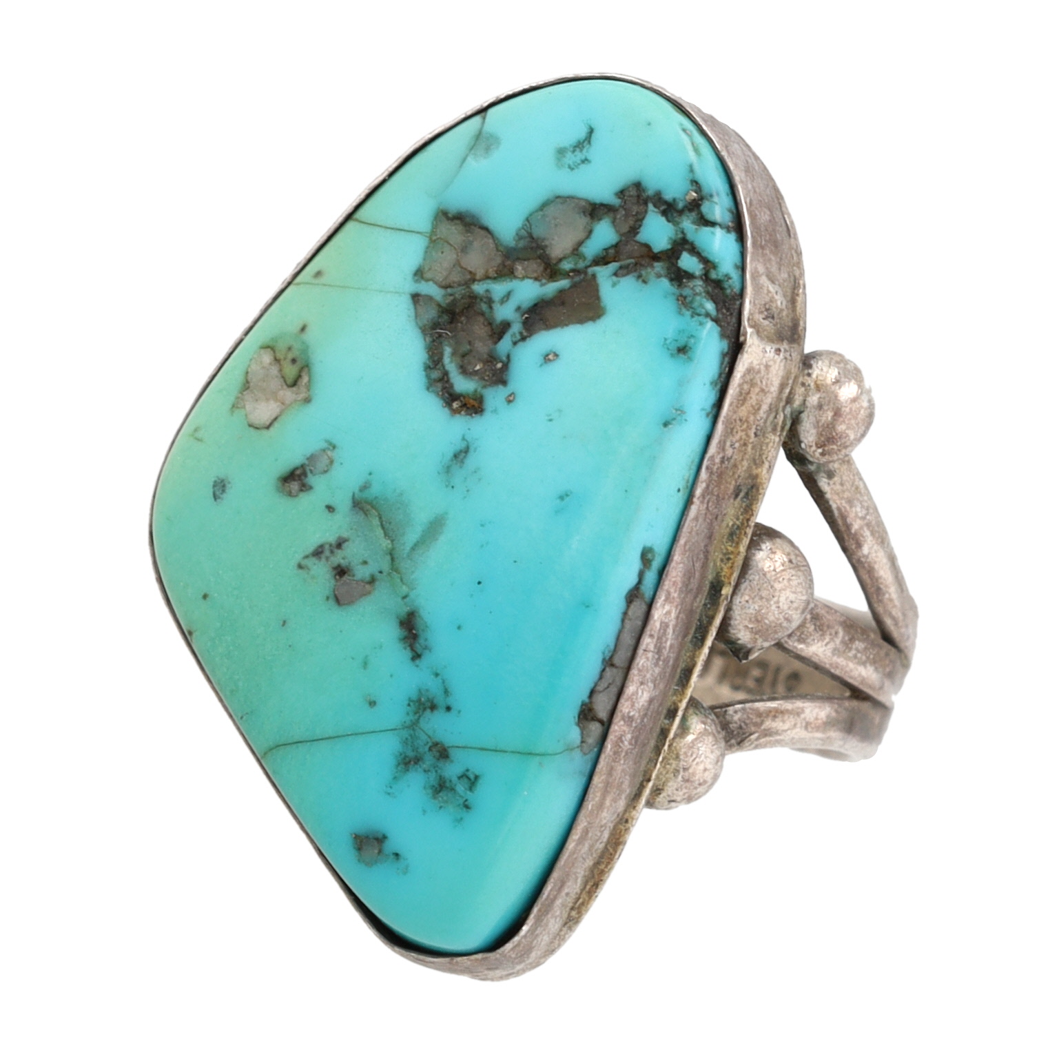 Vintage Navajo Sterling Turquoise Ring Sz 7.5