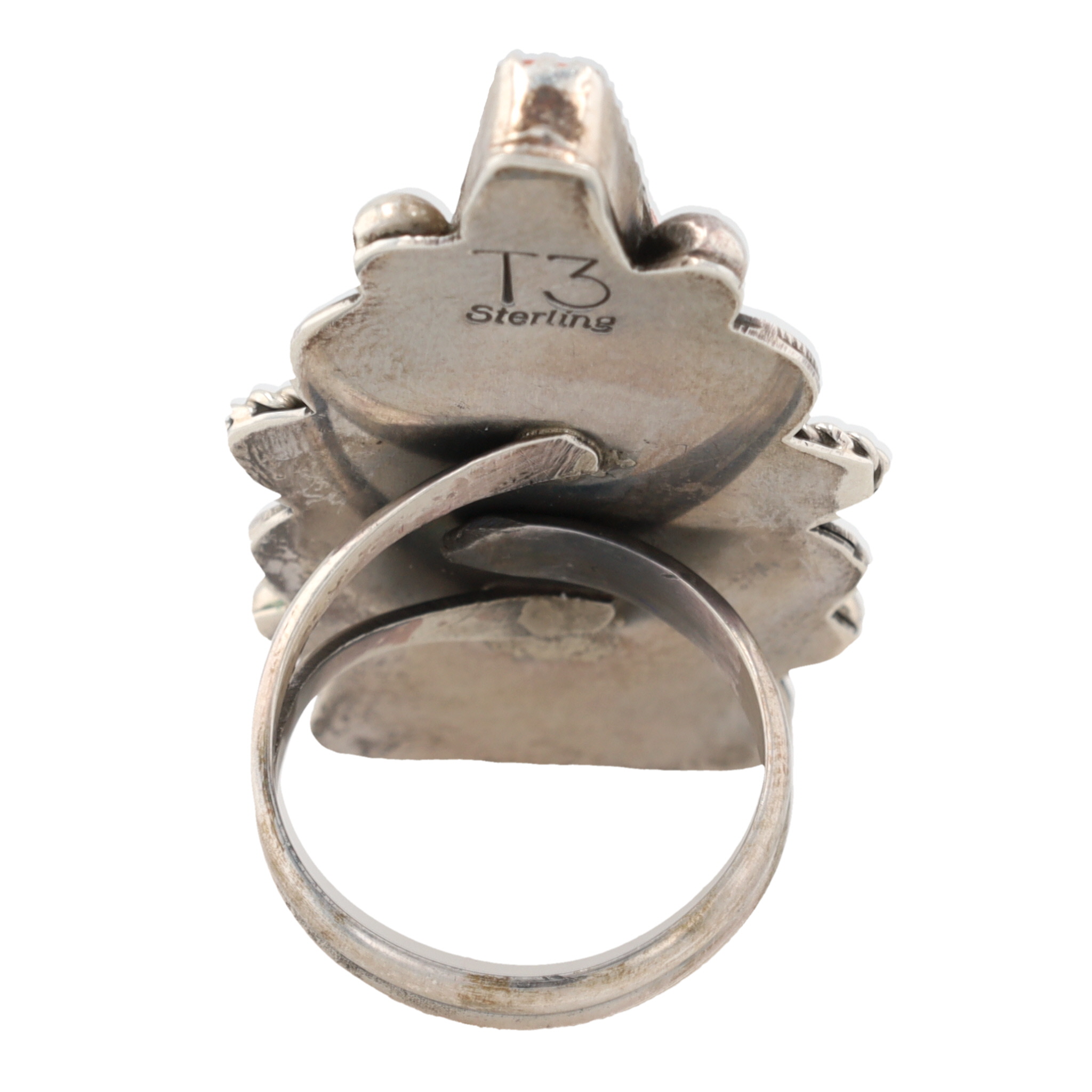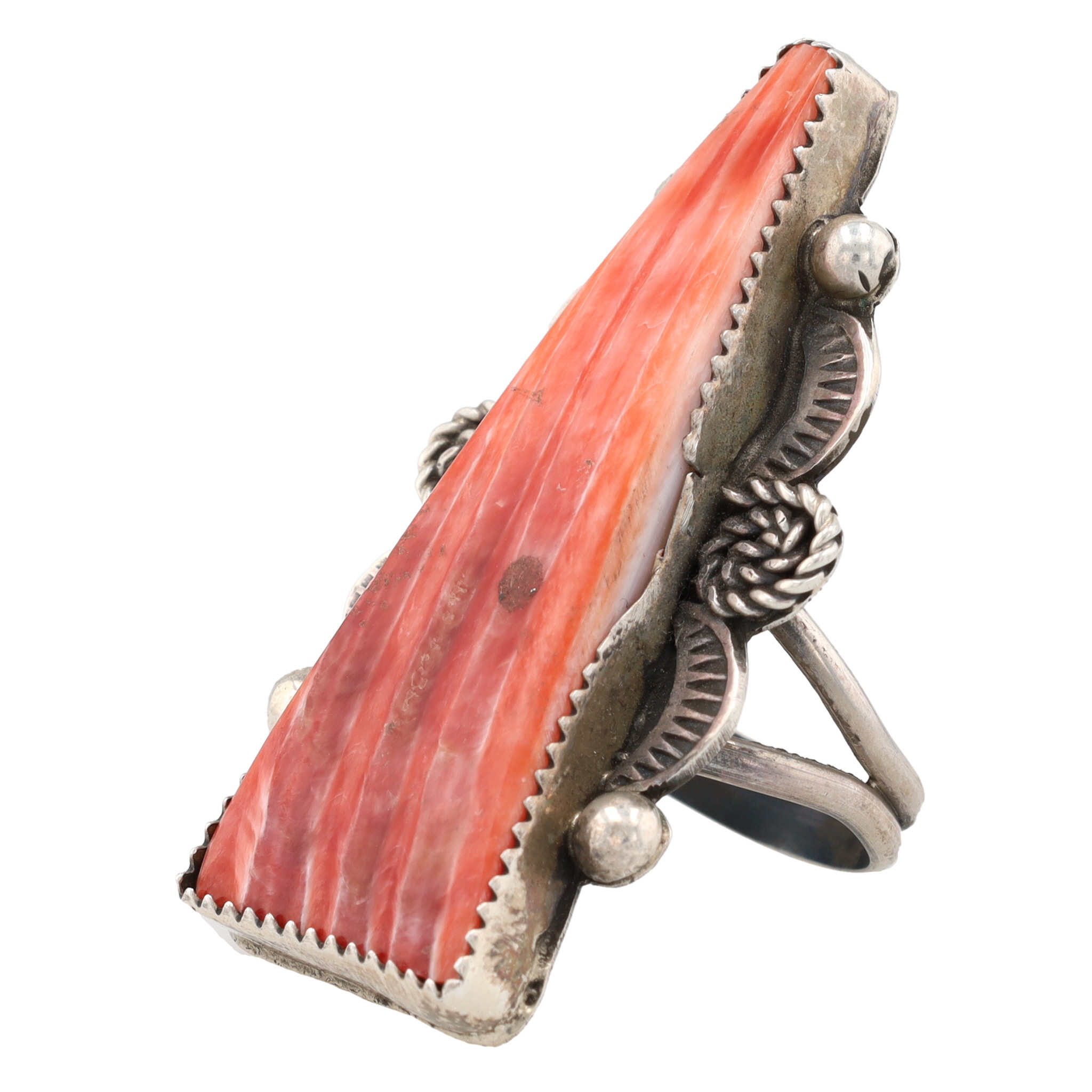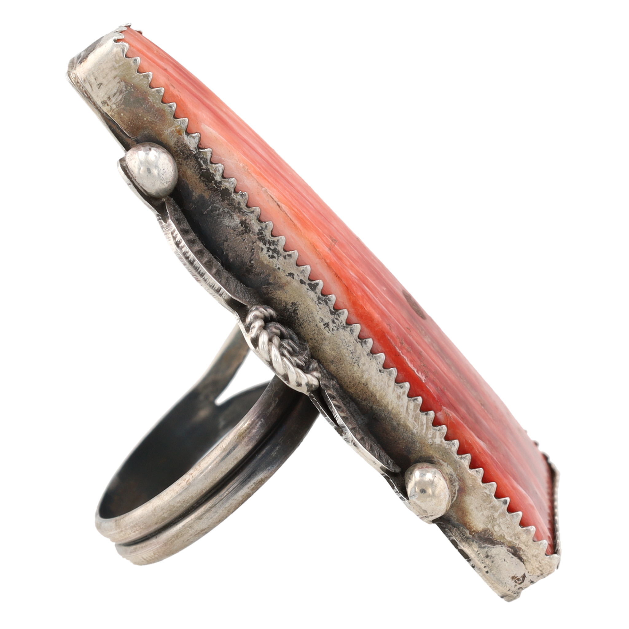 Big! Tia Long Navajo Sterling Spiny Oyster Stamped Adjustable Ring