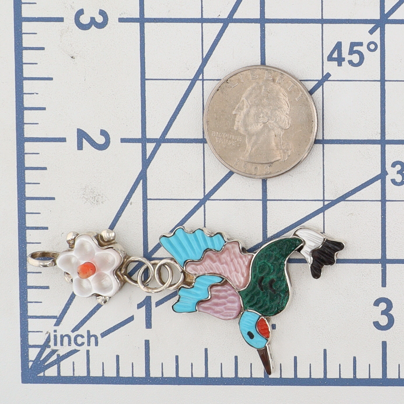 Gorgeous! Tamara Pinto Zuni Sterling Multi Stone Inlay Hummingbird Pendant
