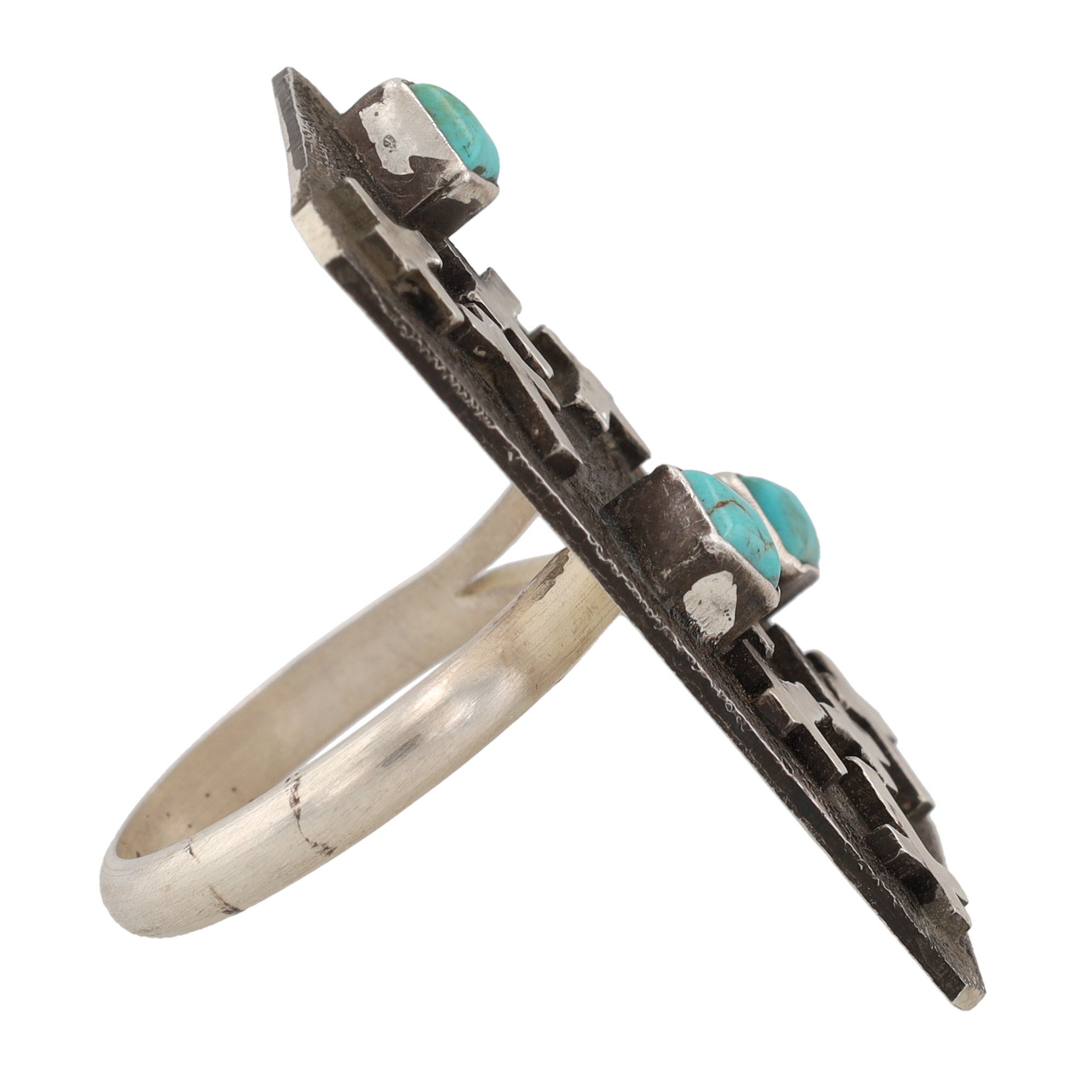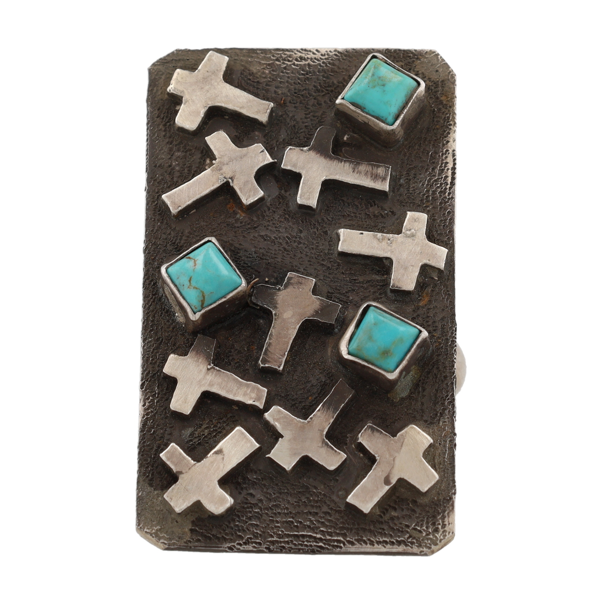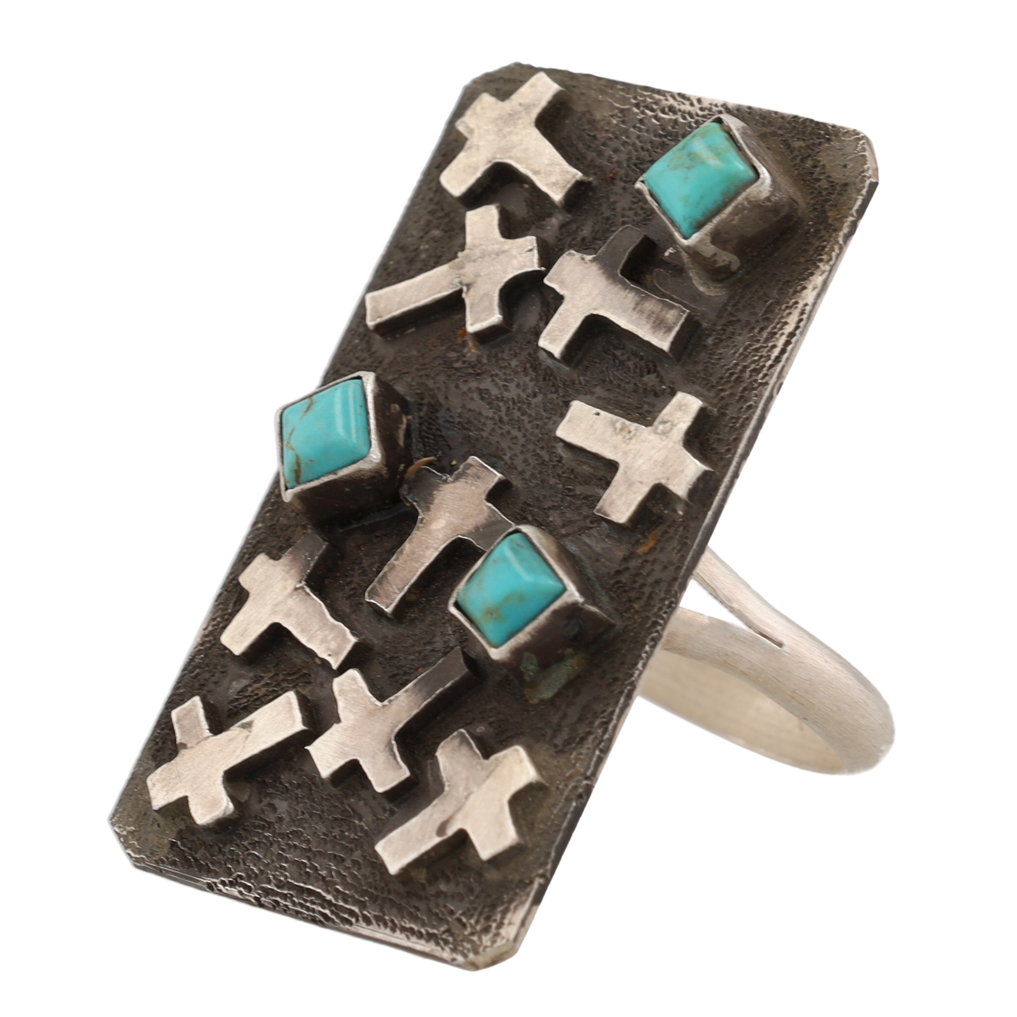 Scott Skeets Navajo Sterling Kingman Turquoise Cross Adjustable Ring