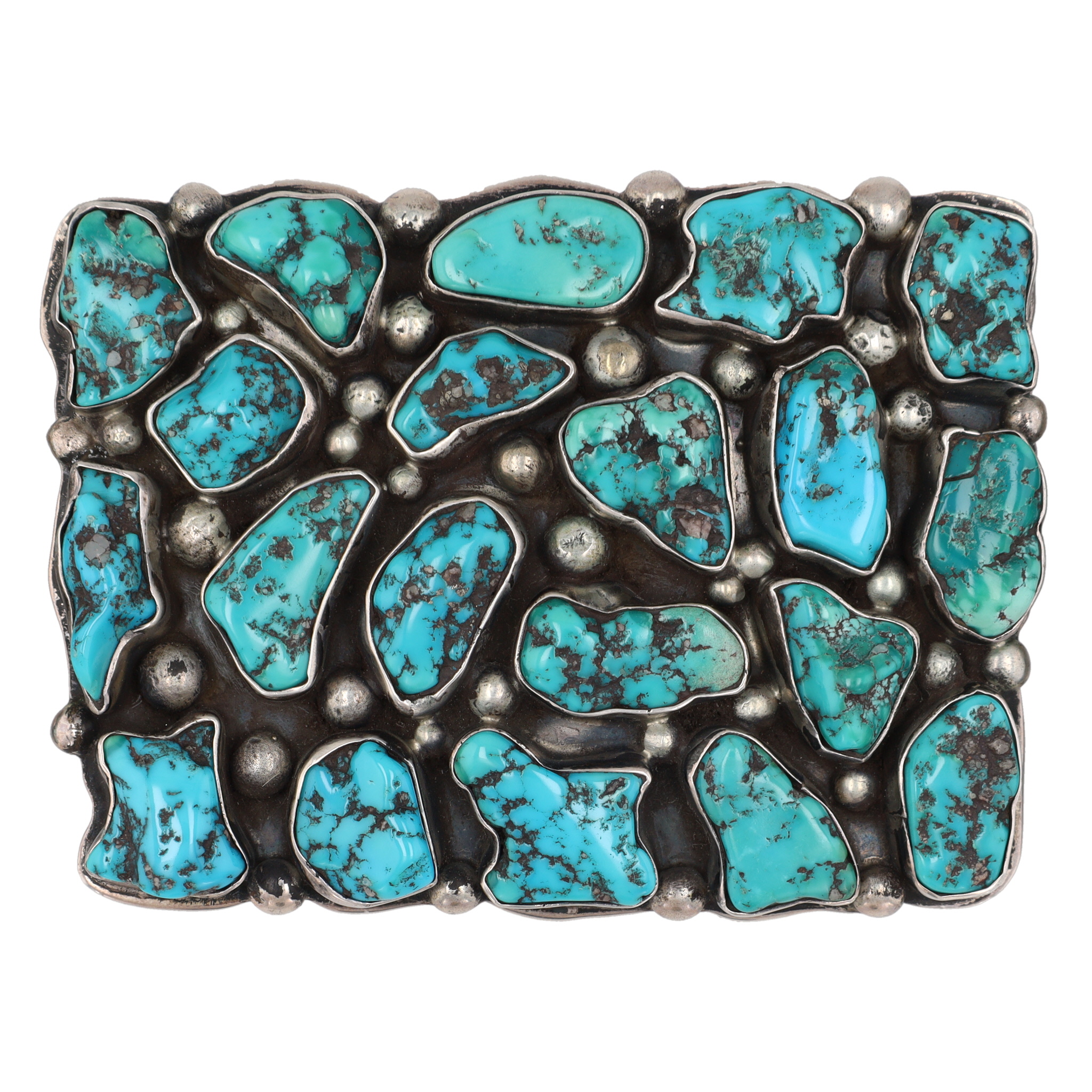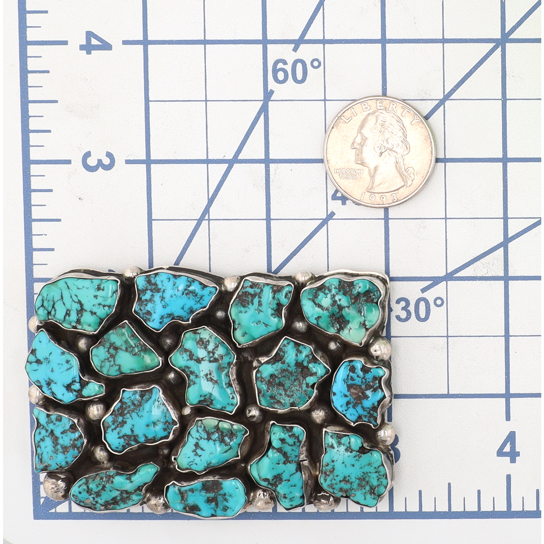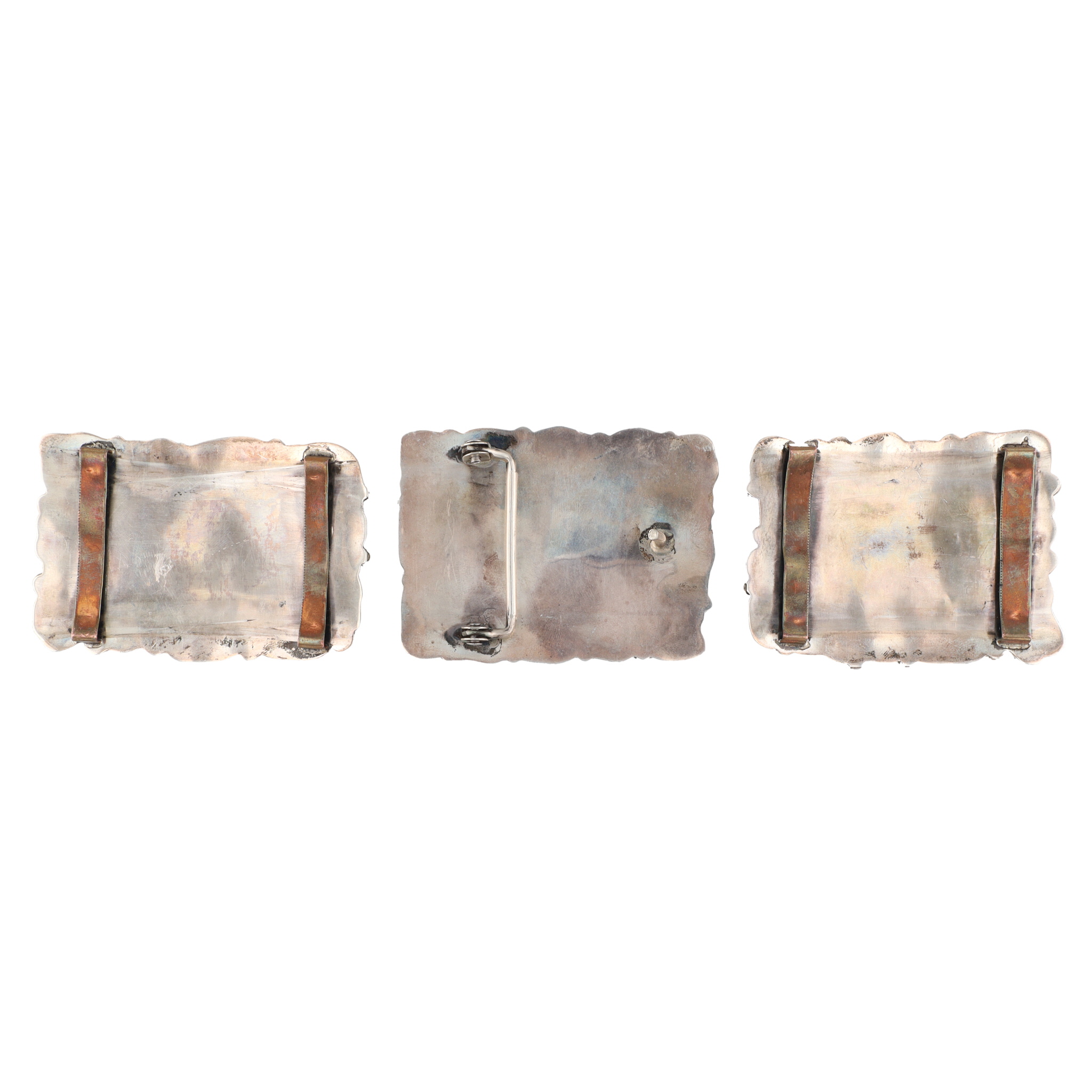 Vintage Navajo Sterling Turquoise Cluster Belt Buckle and Pieces (Qty: 3 total – 1 buckle, 2 pieces)