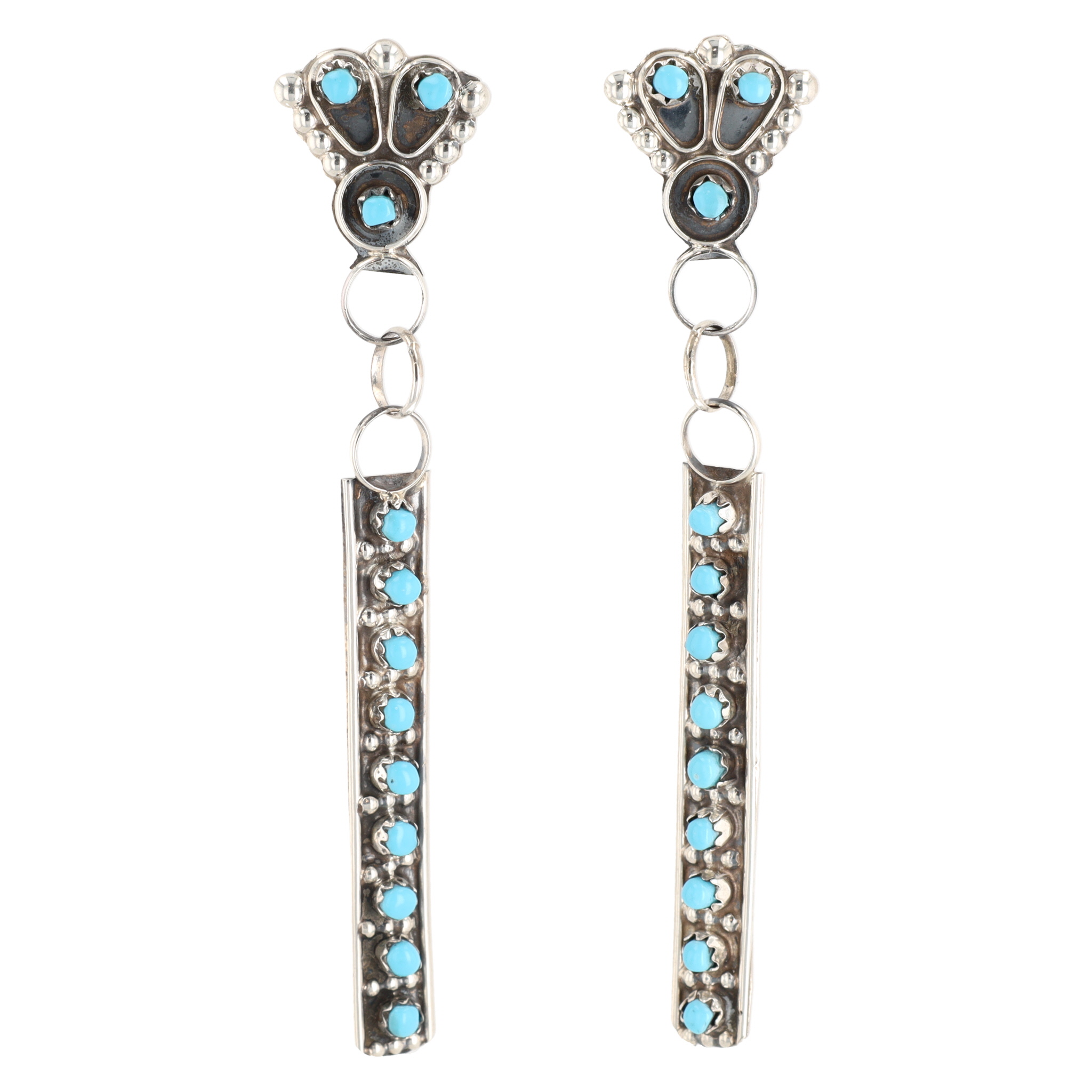 Davis Kaamasee (attributed) Zuni Sterling Turquoise Snake Eye Earrings