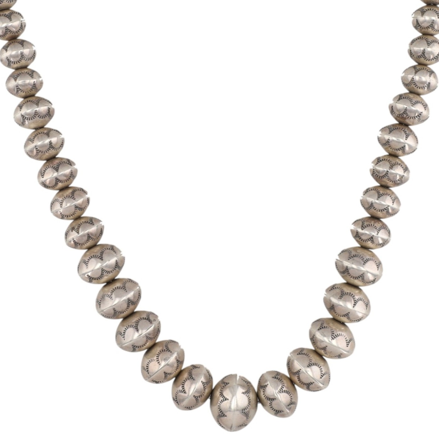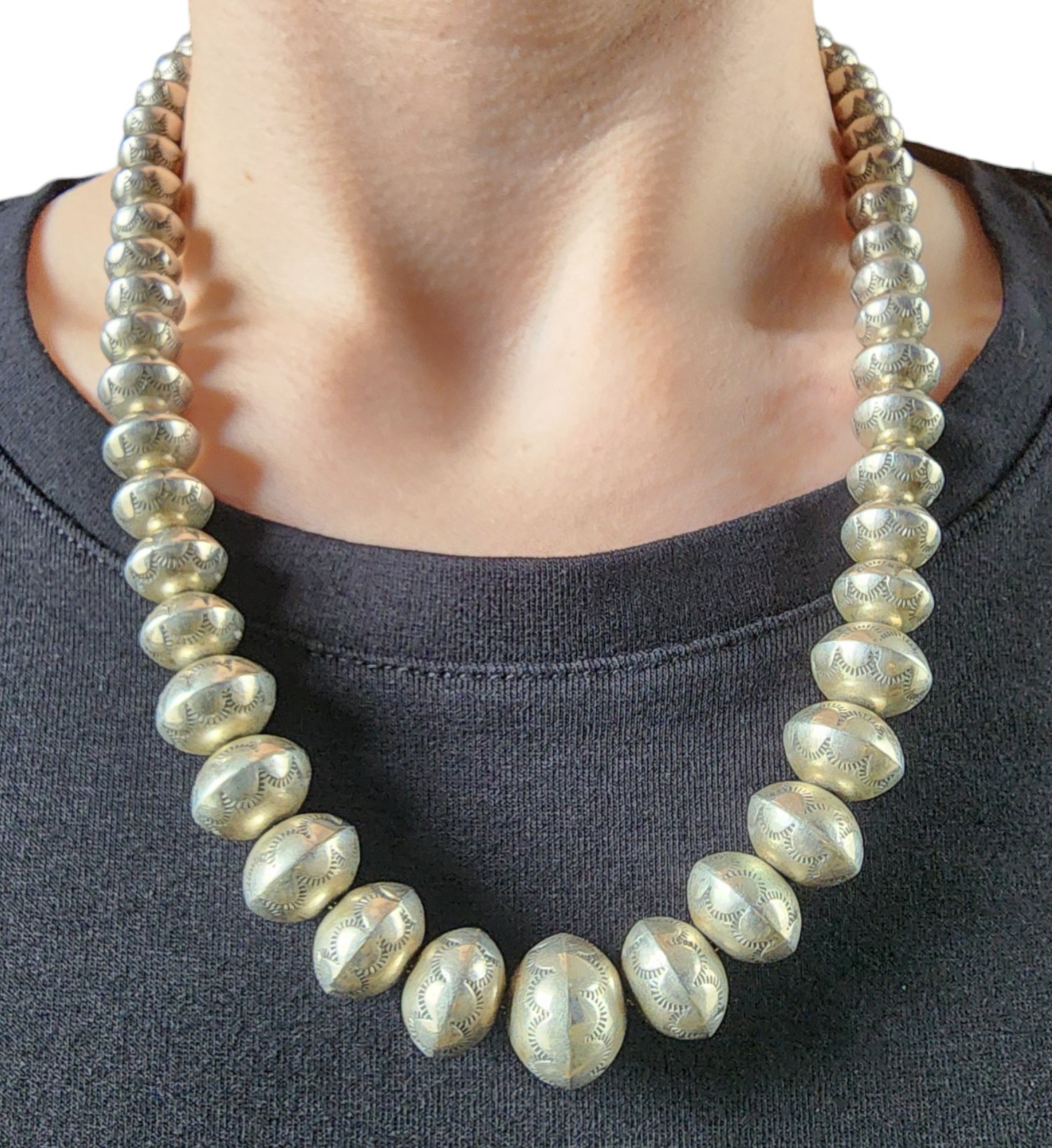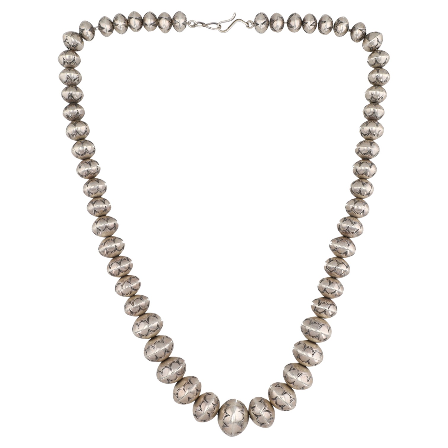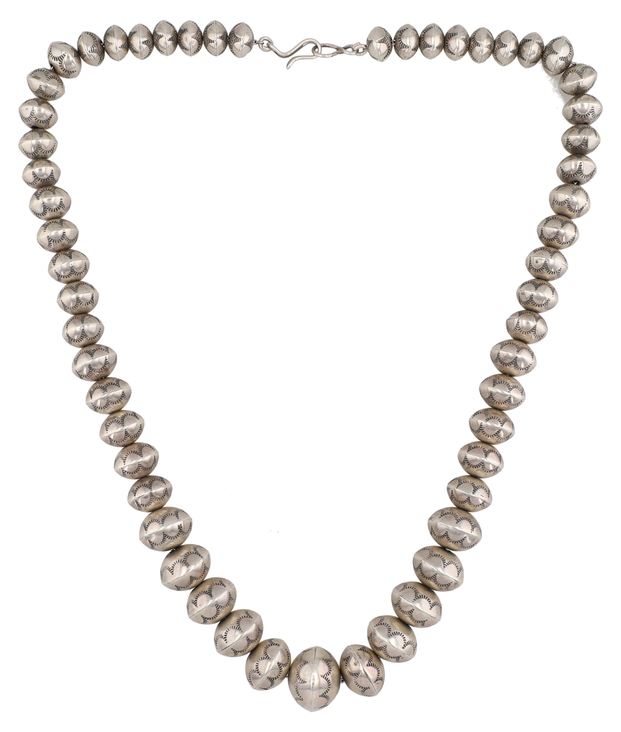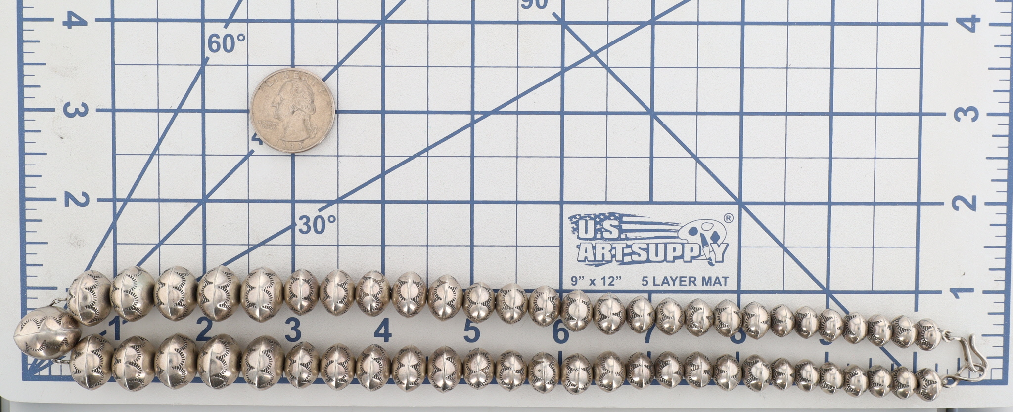 Vintage Navajo Sterling Hand Stamped Graduated Bead Necklace