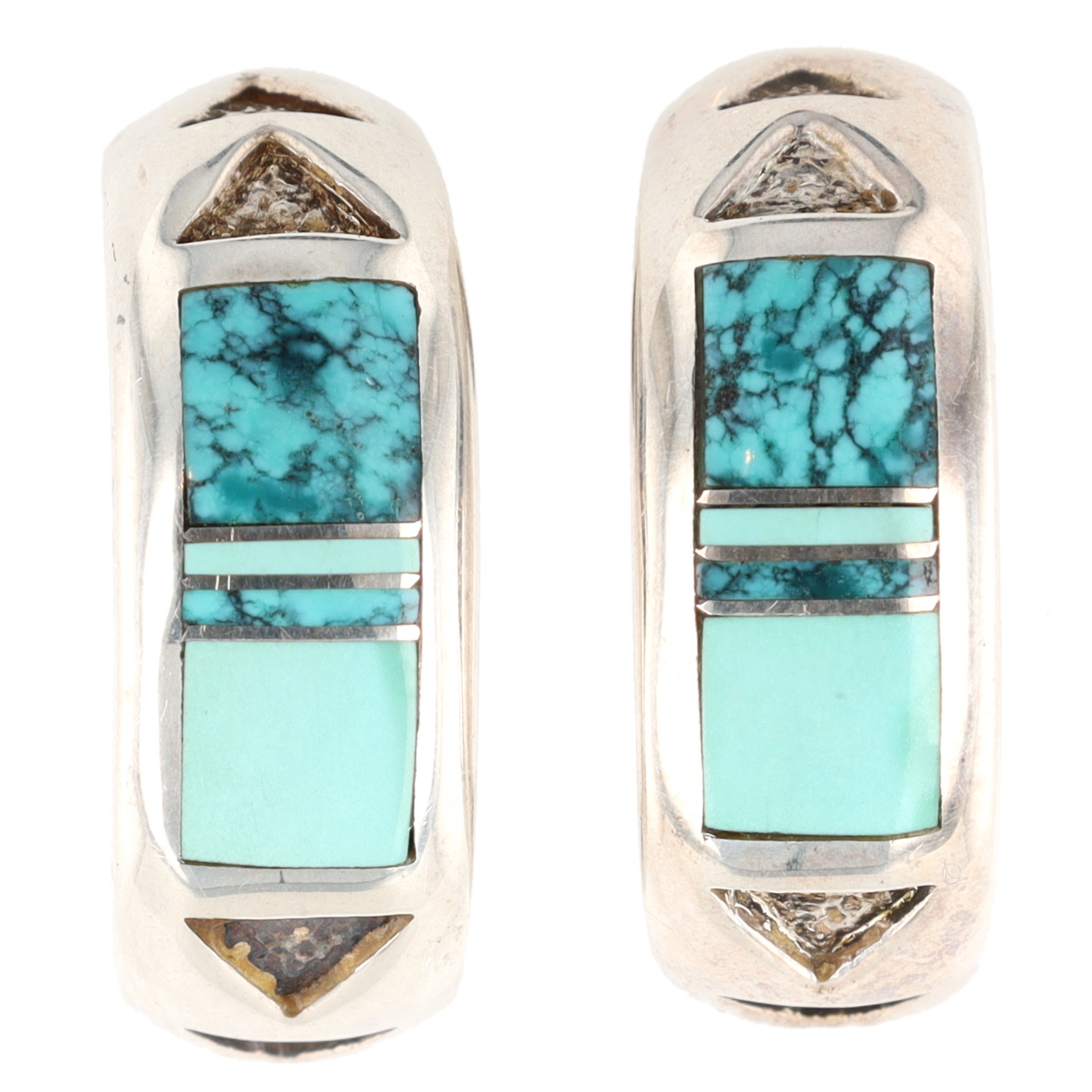 Ray Tracey Navajo & Knifewing Segura Navajo Sterling Turquoise Inlay Earrings