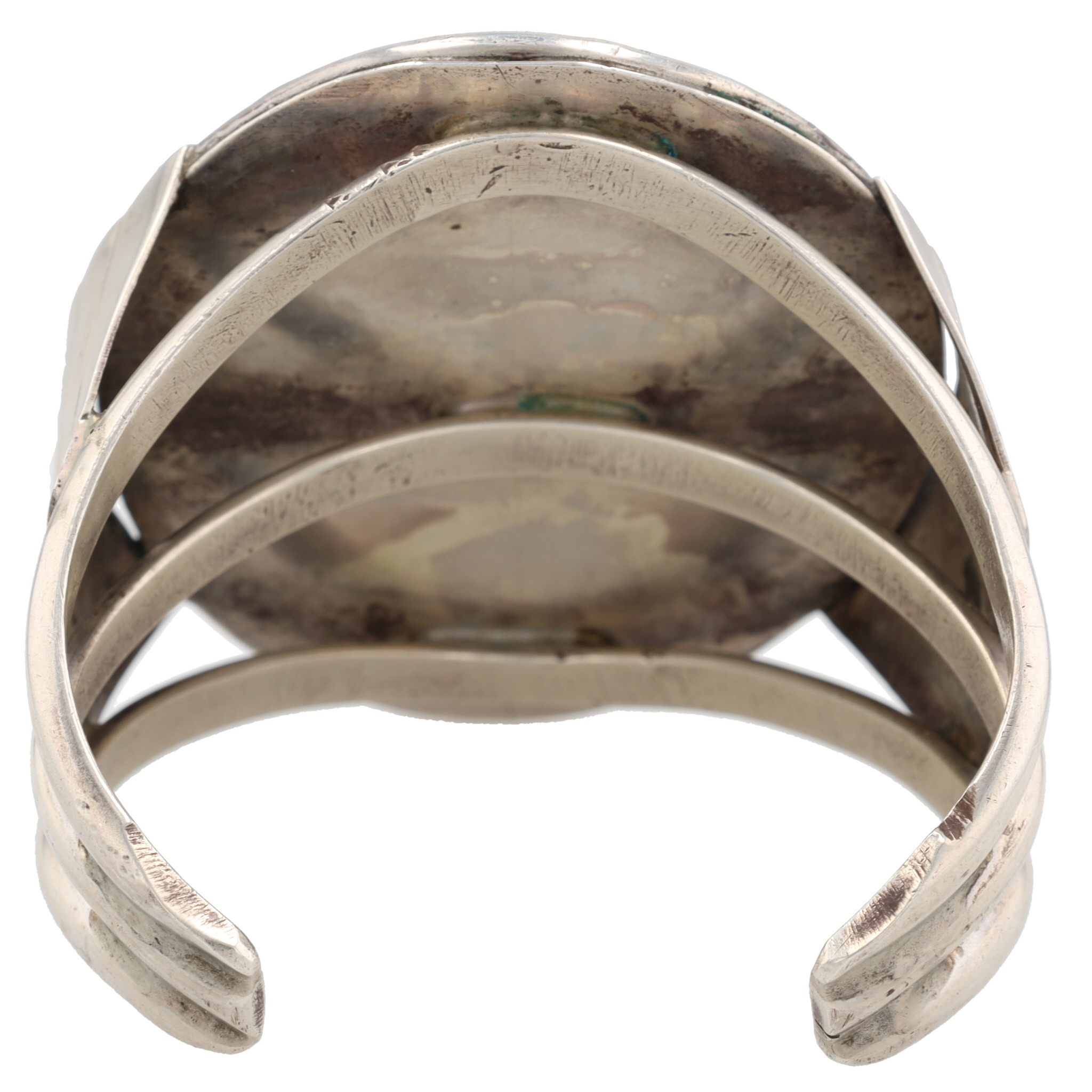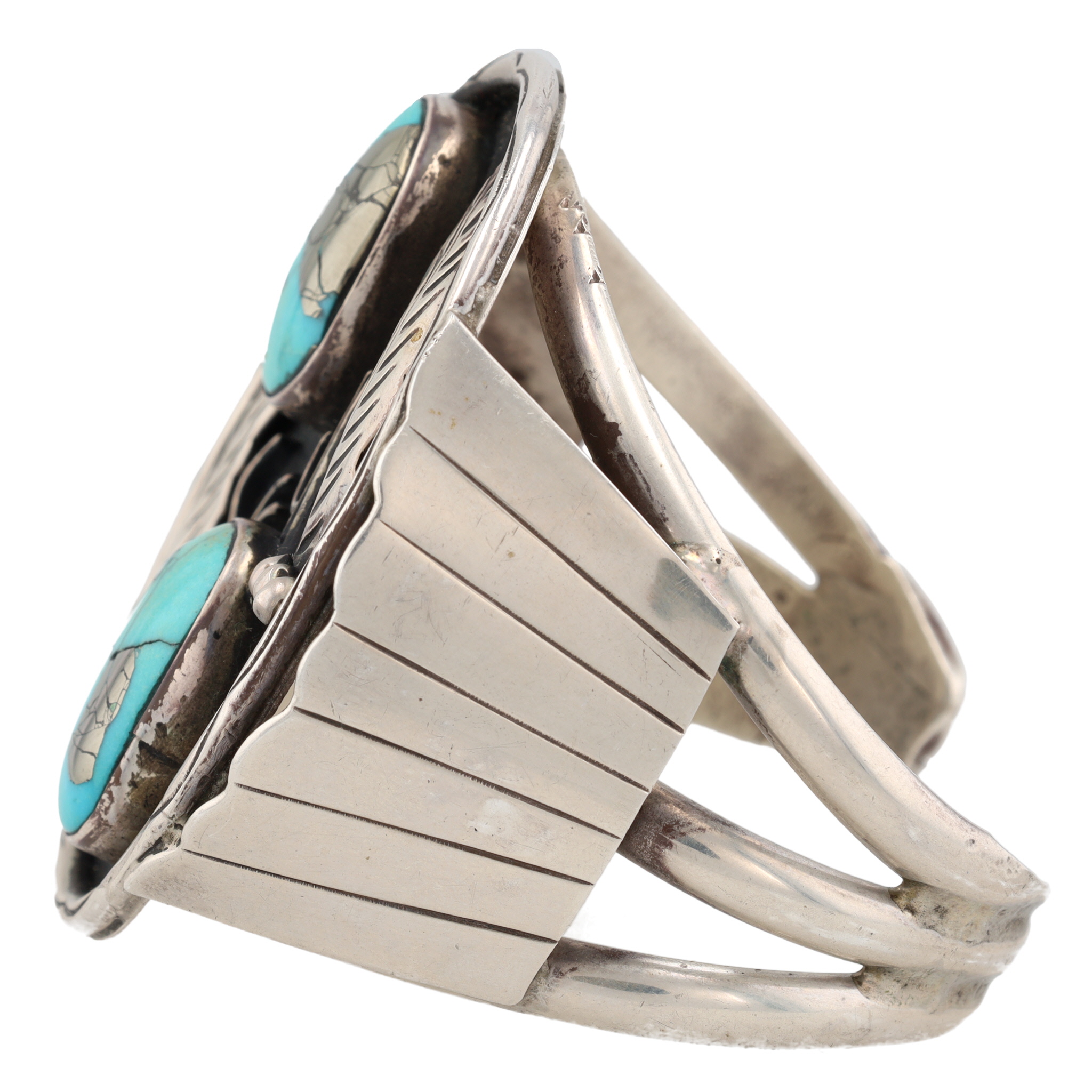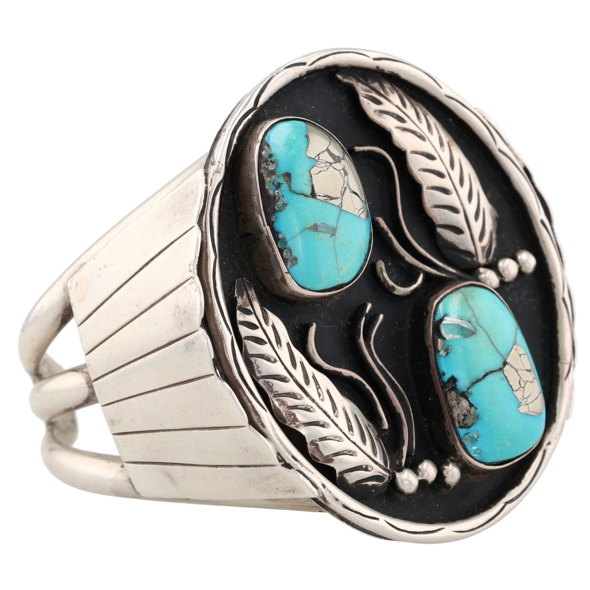 Navajo Sterling Morenci Turquoise Feather Cuff Bracelet