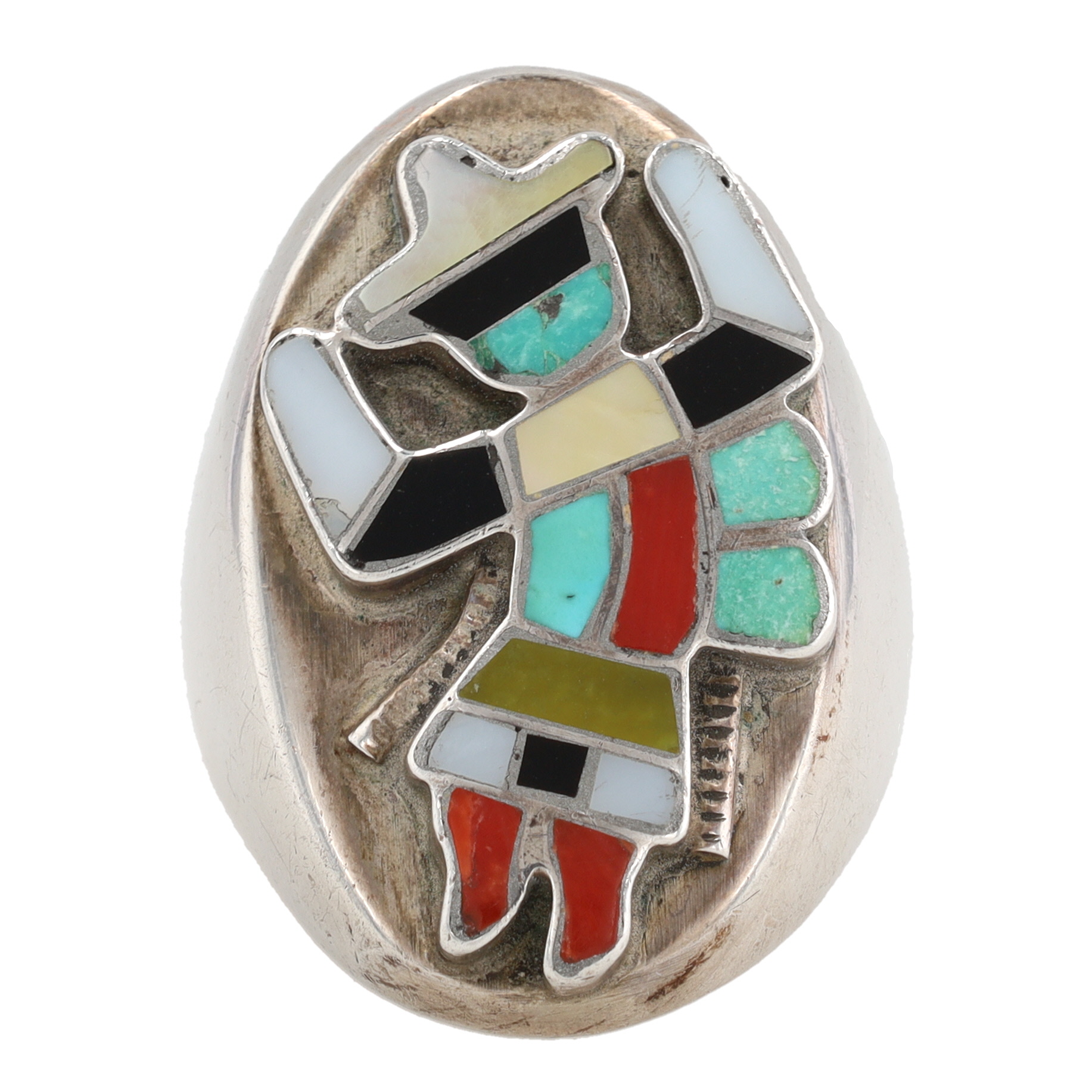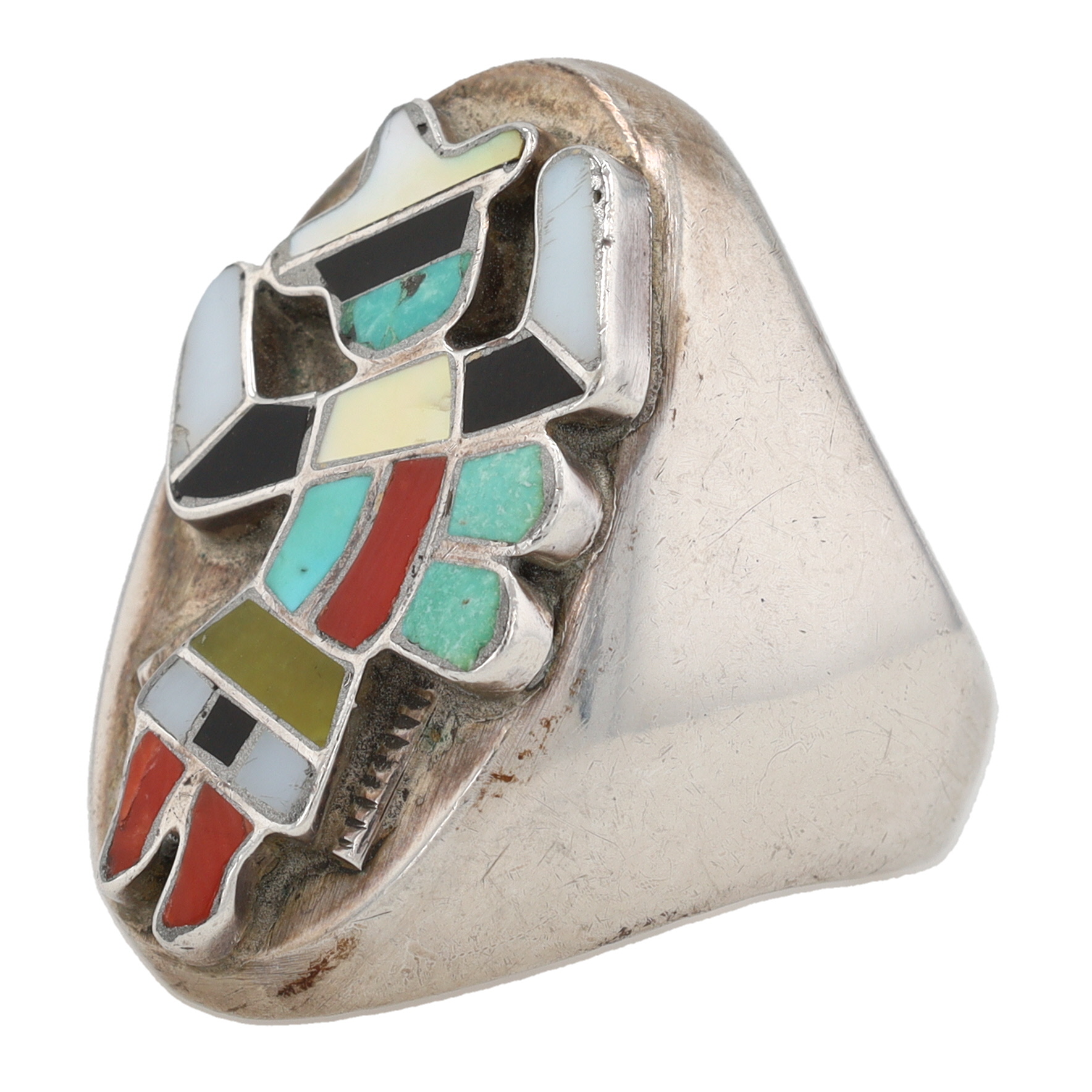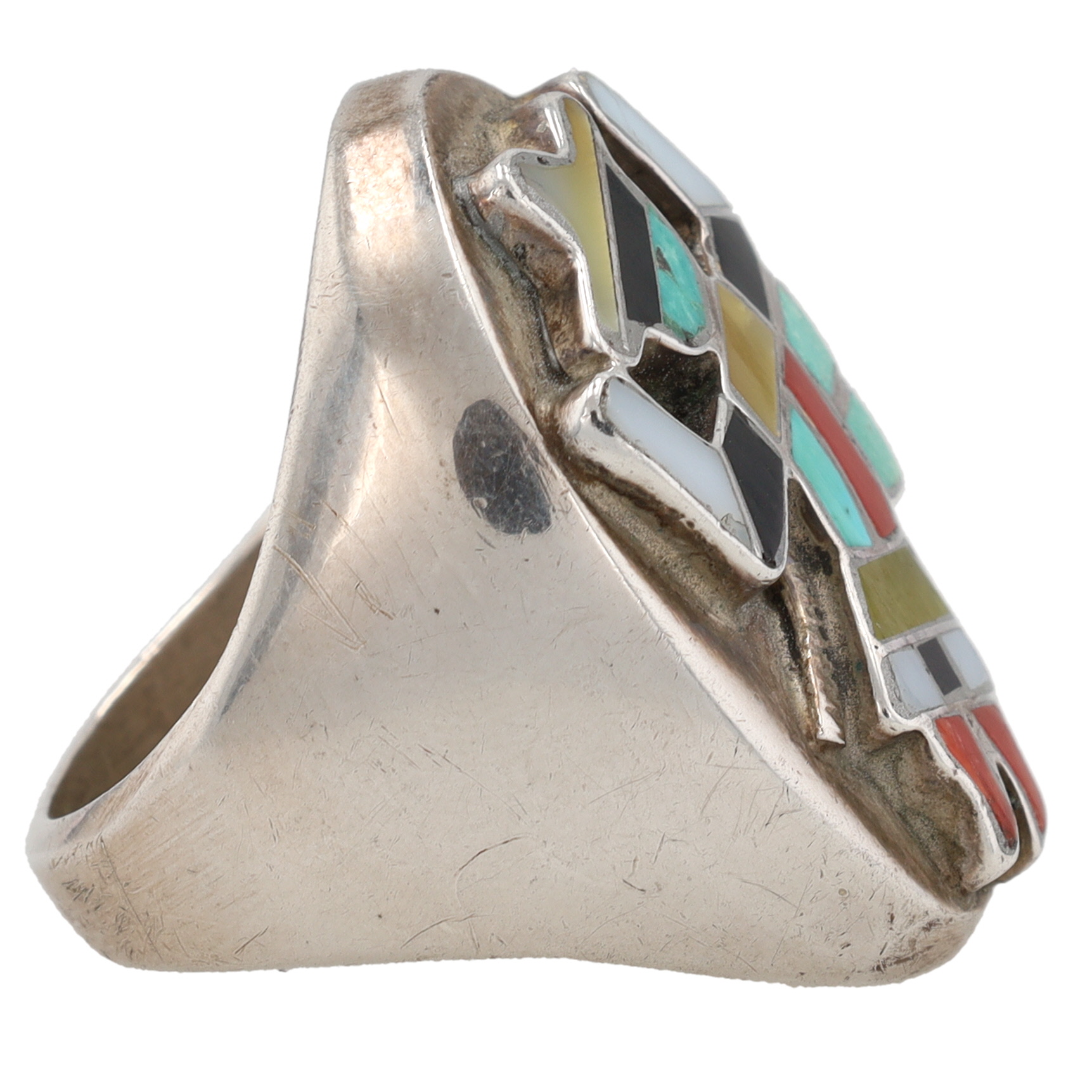 Vintage Navajo Sterling Multi Stone Inlay Knifewing Men’s Ring Sz 11