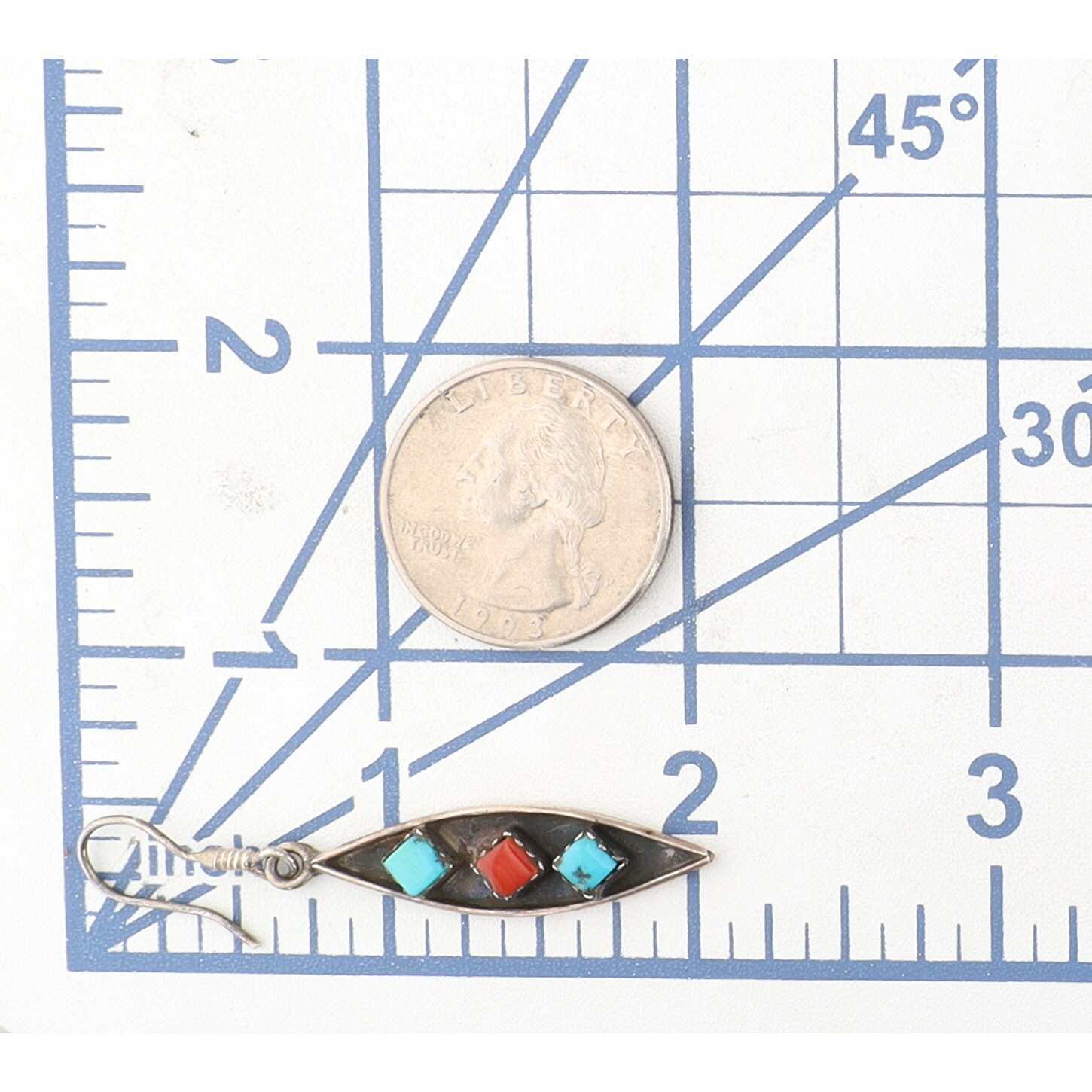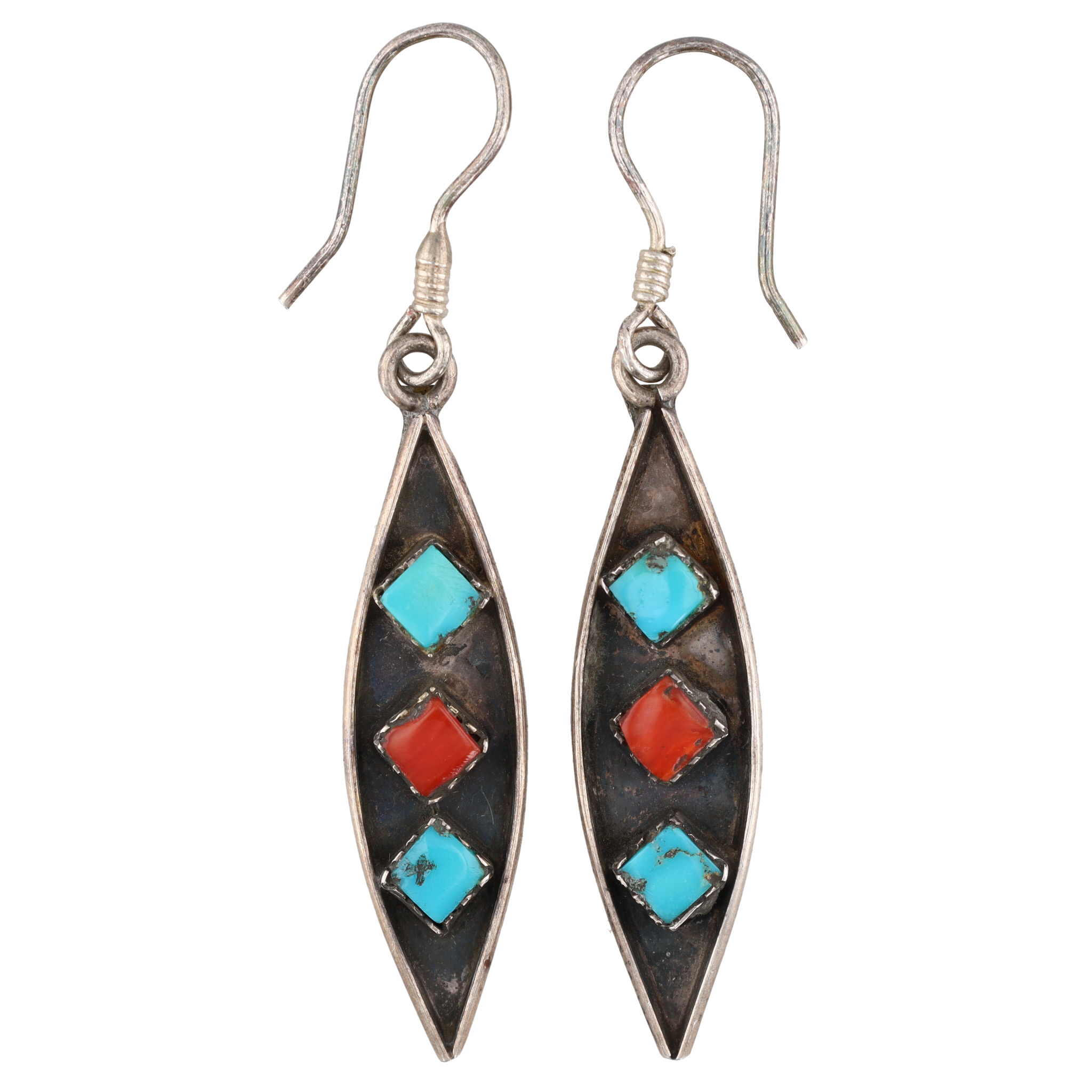 Vintage Navajo Sterling Turquoise Coral Dangle Earrings