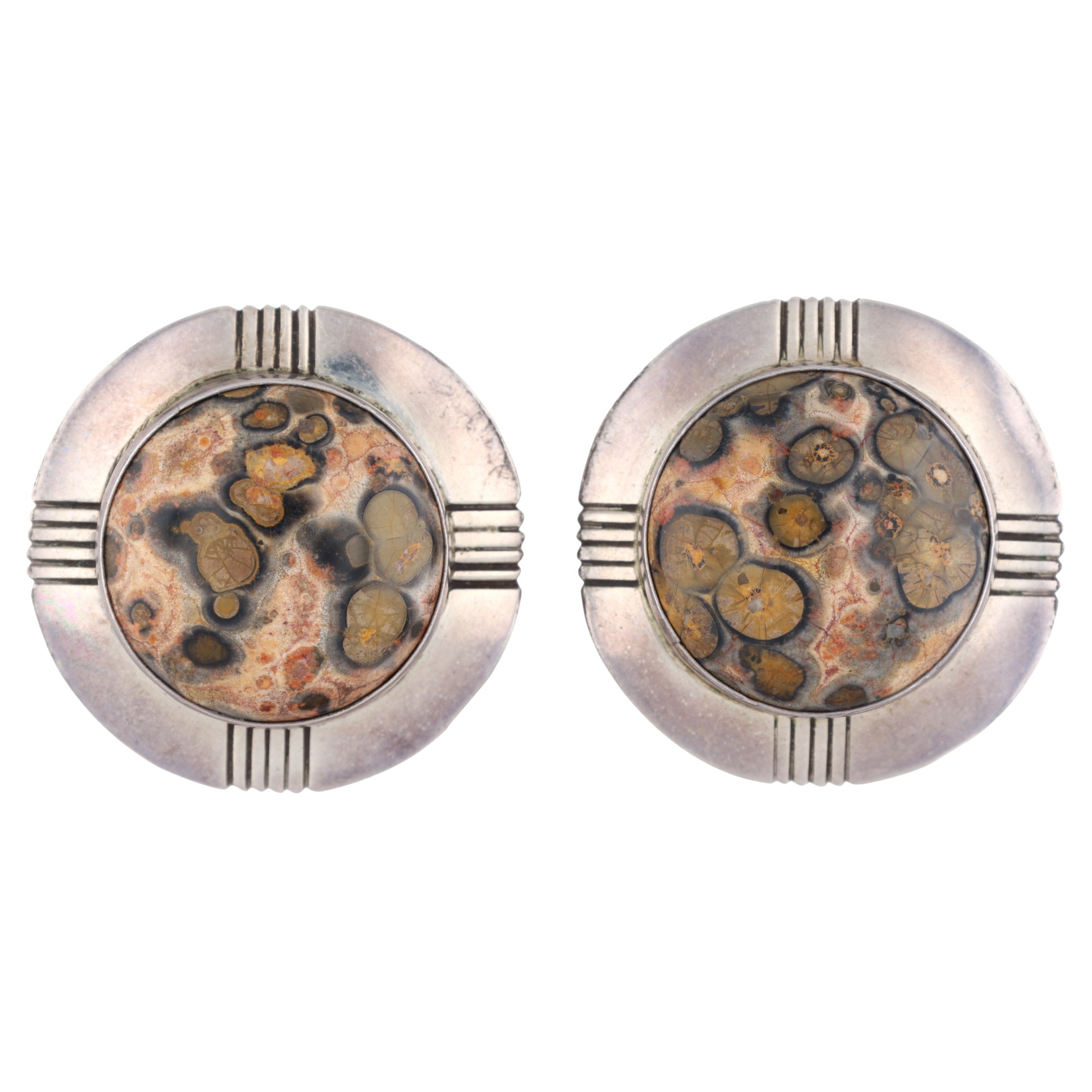Vintage Navajo Sterling Leopard Jasper Earrings