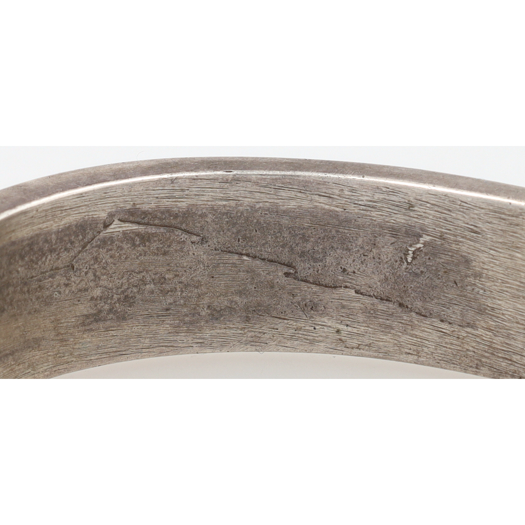 Notes: The consignor describes the cuff as potentially being made of ingot silver. While it’s not possible to definitively confirm that the cuff is an ingot, the presence of fine cracks and wrinkles suggests it could be.