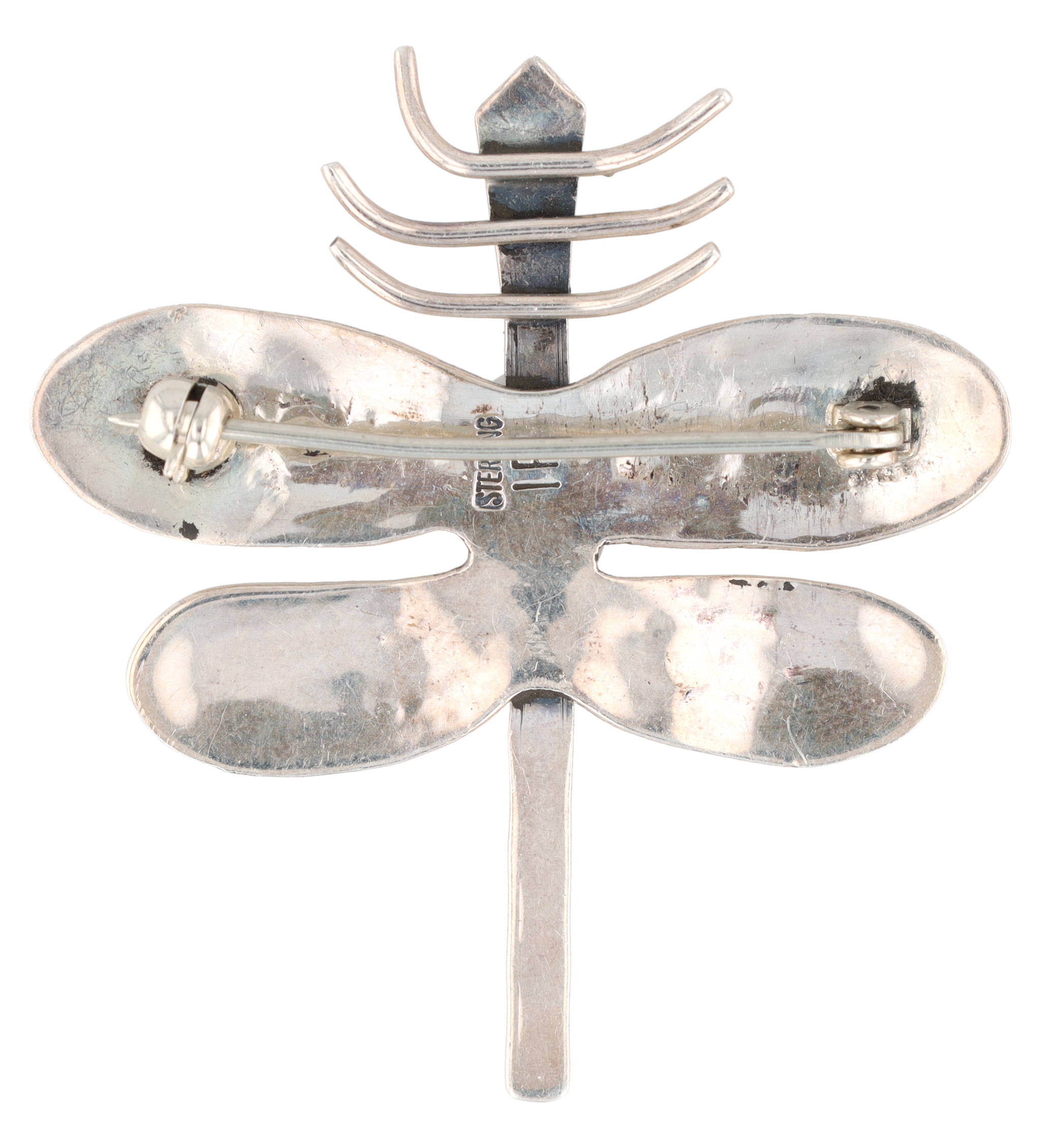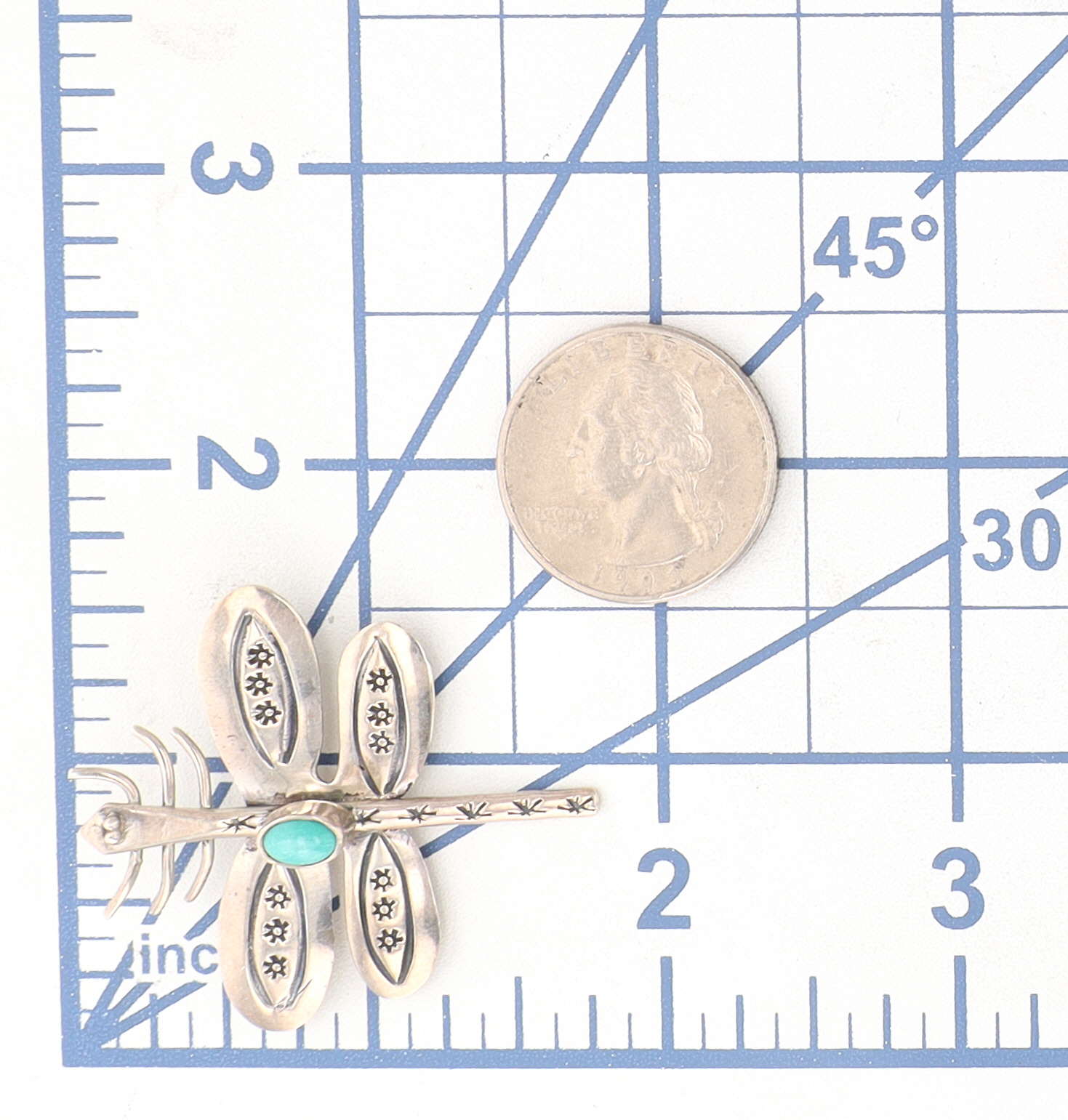 Irene Platero Navajo Sterling Stamped Turquoise Dragonfly Brooch