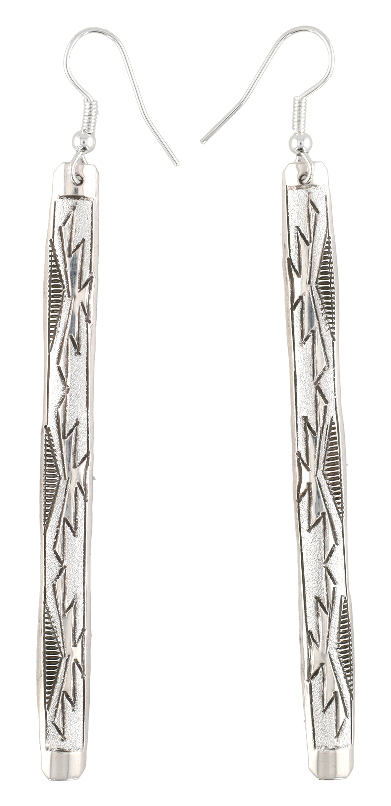 Florence Tahe Navajo Sterling Textured Bar Dangle Earrings