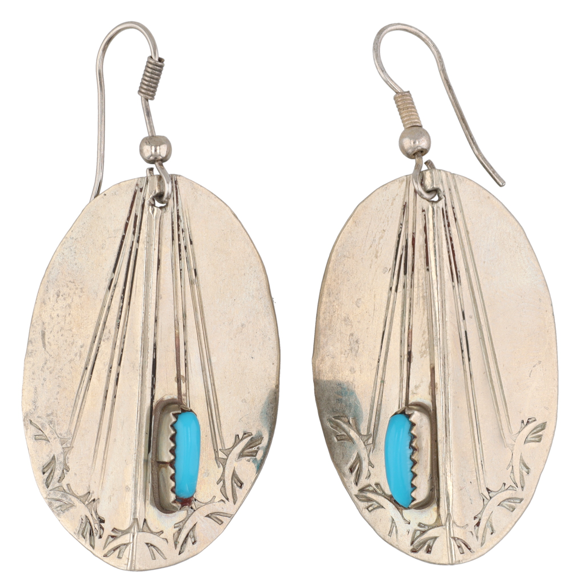Vintage Navajo Sterling Turquoise Hand Stamped Earrings