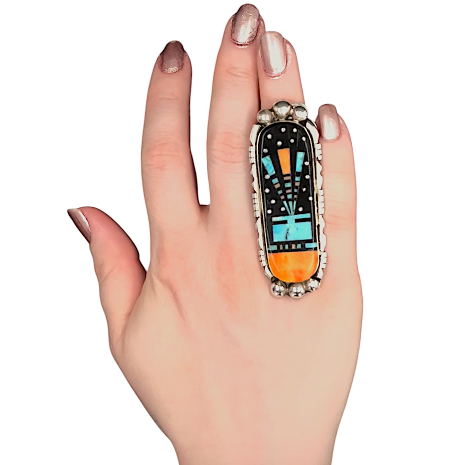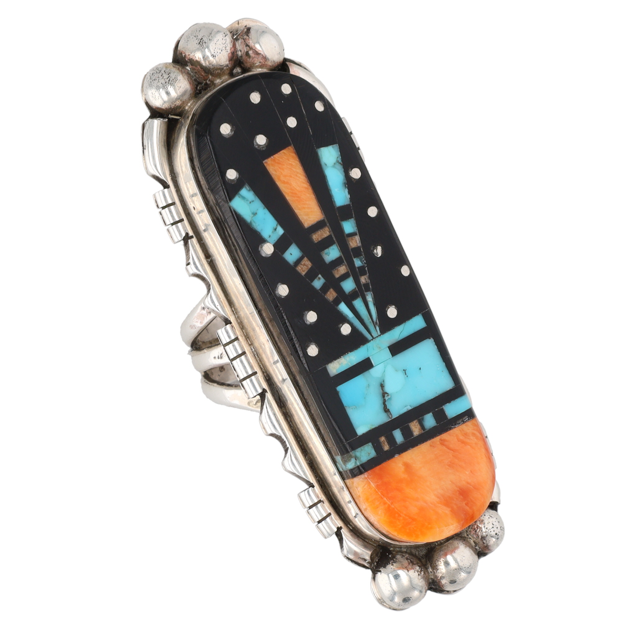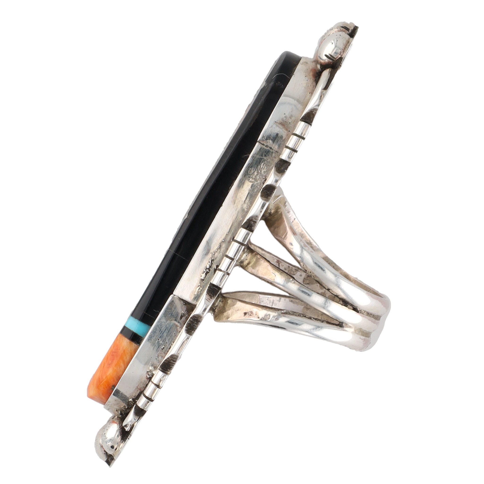 Huge! Ray Jack Navajo Sterling Multi Stone Inlay Finger Length Ring Sz 8.5