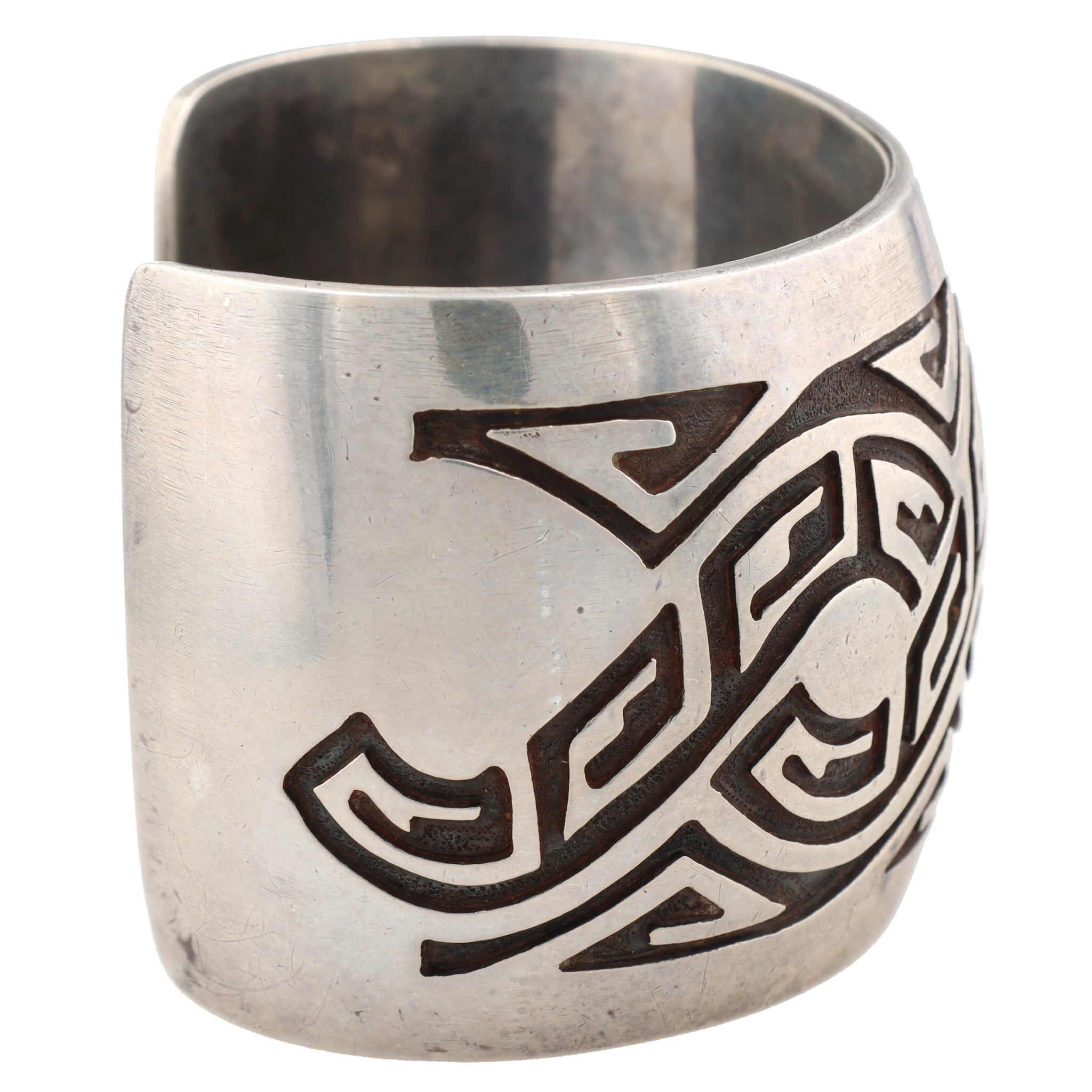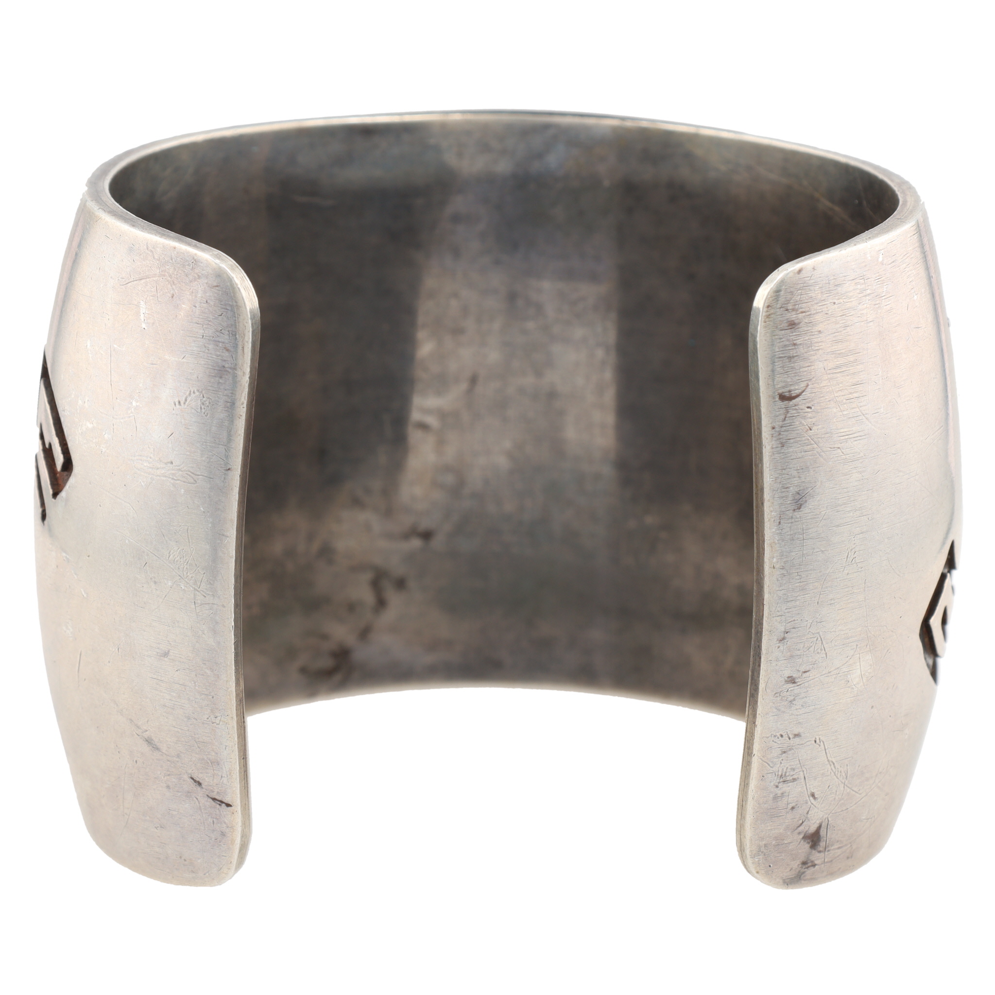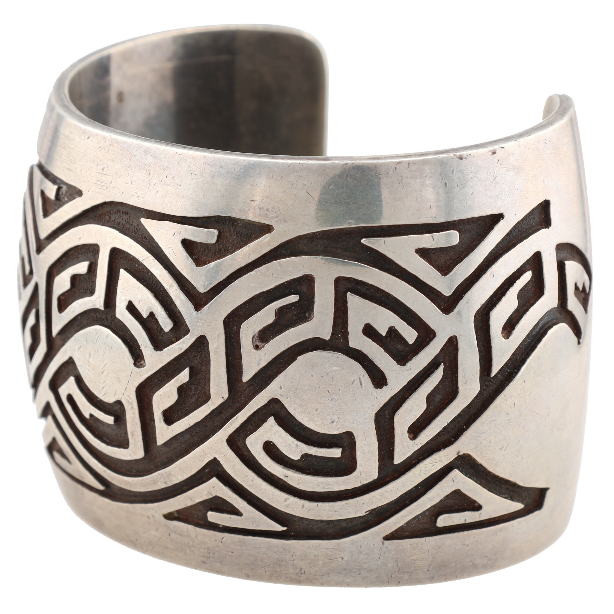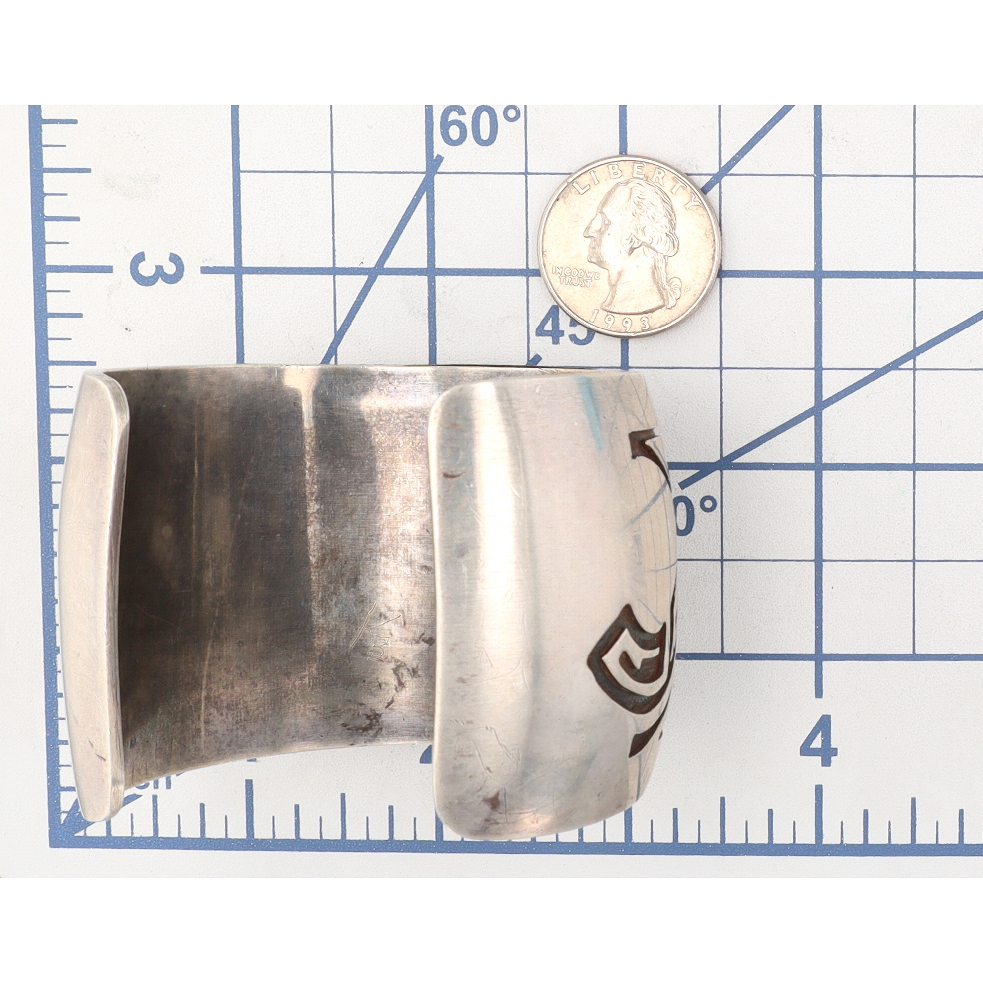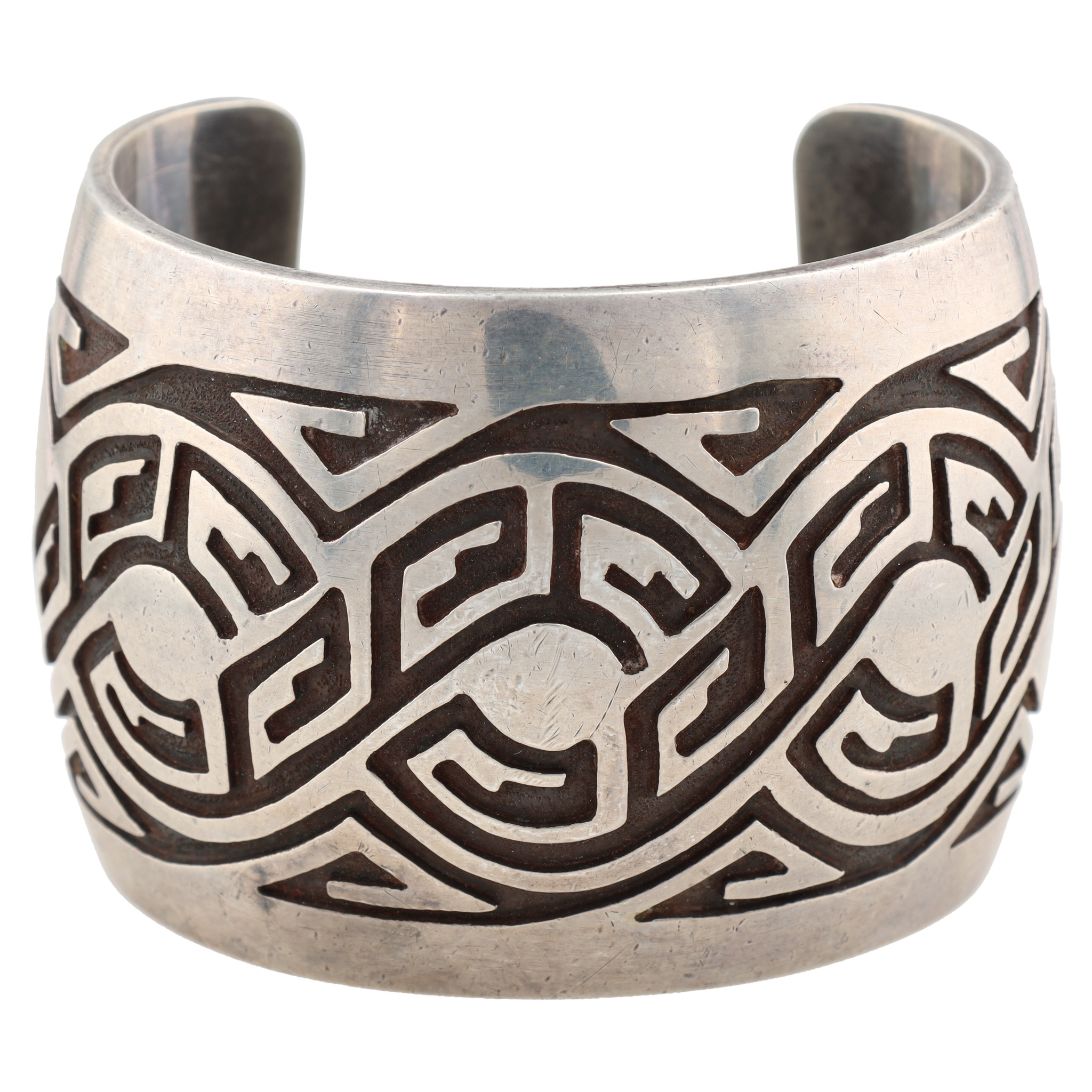 Vintage Hopi Sterling Overlay Maze Cuff Bracelet